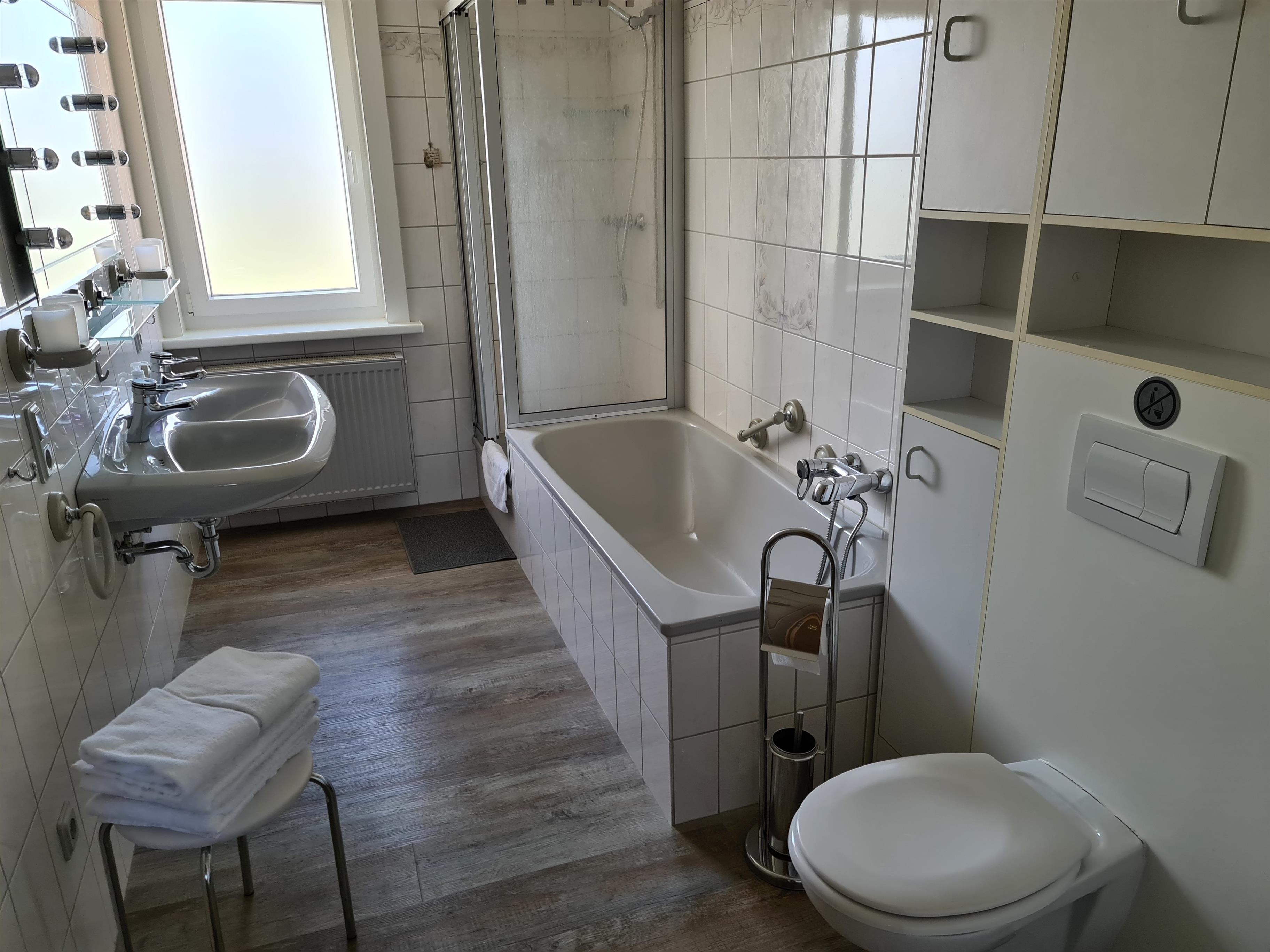 Im OG, vom Treppenhaus aus erreichbar, befindet sich ein Gemeinschafts-Balkon für beide Ferienwohnungen. Genießen Sie von Ihrem zugehörigen Teil des Balkons die schöne Aussicht auf den Ort und den Kellerwald.