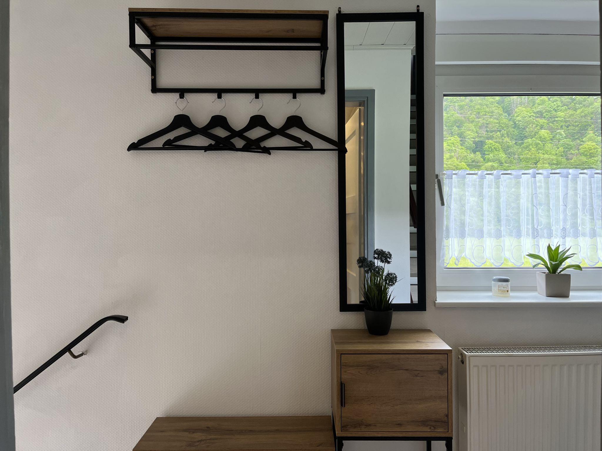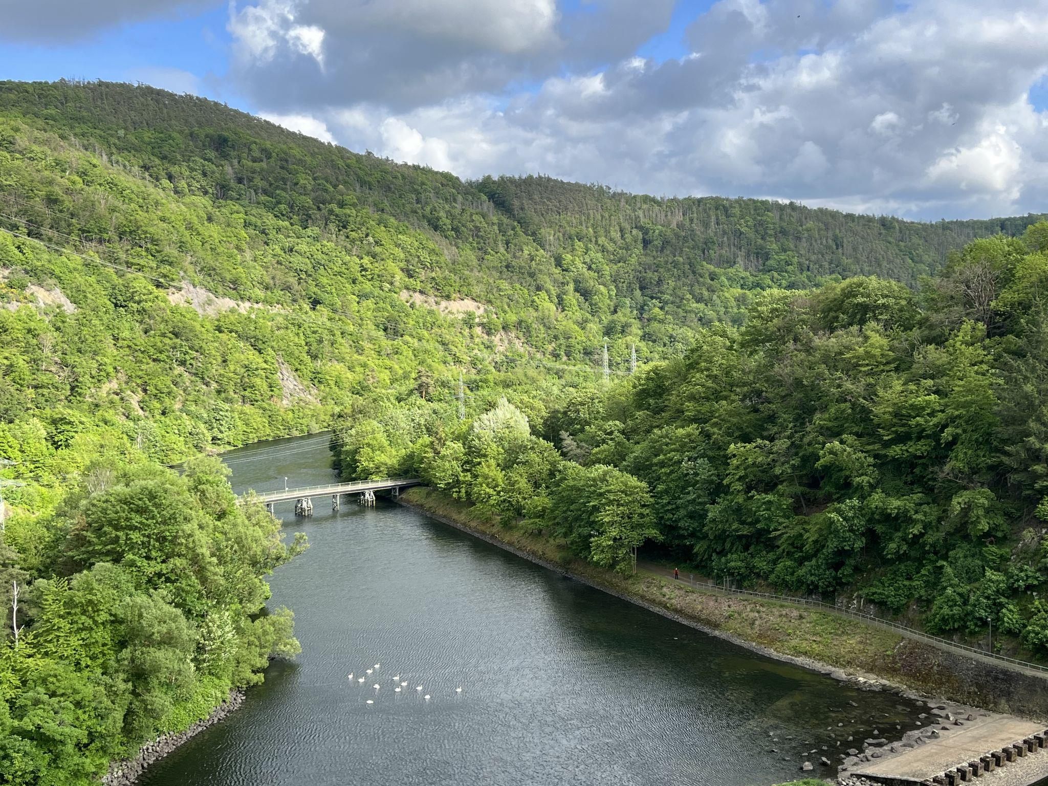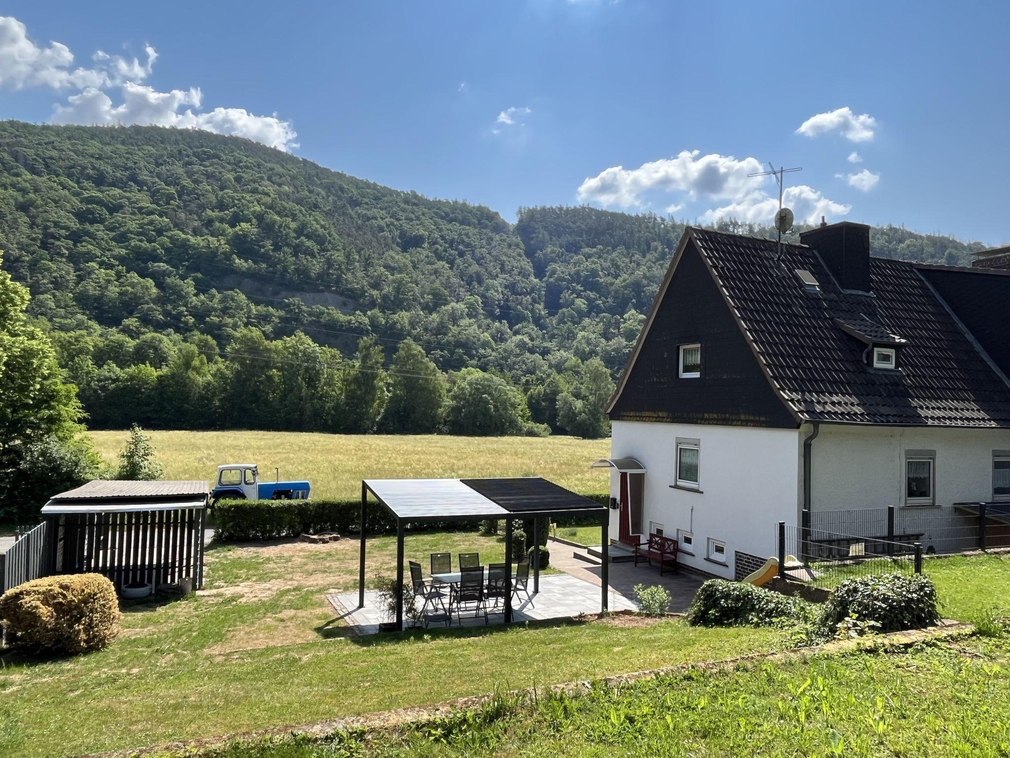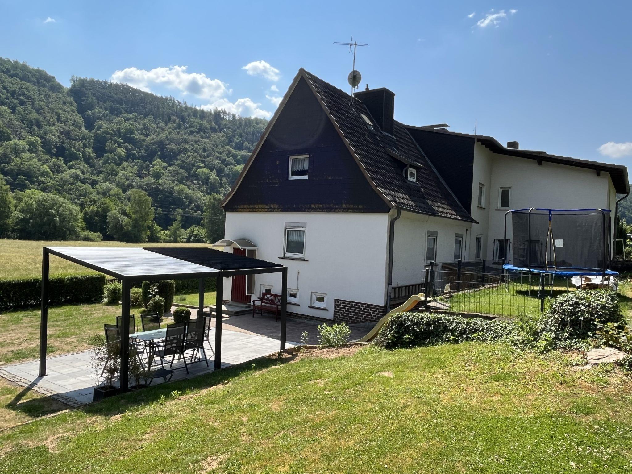Hemfurth 3 km from Edertal: Beautiful, cosy semi-detached house "Familie Zinser". In a sunny position, 500 m from the lake, 150 m from the river. Private: large, well-kept terraced garden with lawn. Fireplace, parking at the house. Carport. Supermarket 7.5 km, restaurant 700 m, café 700 m, bus stop, grass beach "Rehbach" 3.6 km, outdoor swimming pool 13 km, indoor swimming pool 13 km, public bathing area 7 km. Golf course (18 hole) 10 km, surf school 7 km, sailing school 4 km, minigolf 1 km, walking paths from the house 500 m, children's playground 500 m, fishing possibilities. Nearby attractions: Schloss Waldeck 9 km, Kletterwald am Edersee 4 km, Wildtierpark Edersee 2 km. Well-known ski regions can easily be reached: Willingen 50 km. Well-known lakes can easily be reached: Edersee 500 m, Bootsverleih 1.5 km. Hiking paths: Nationalpark Kellerwald 500 m. Please note: suitable for families.