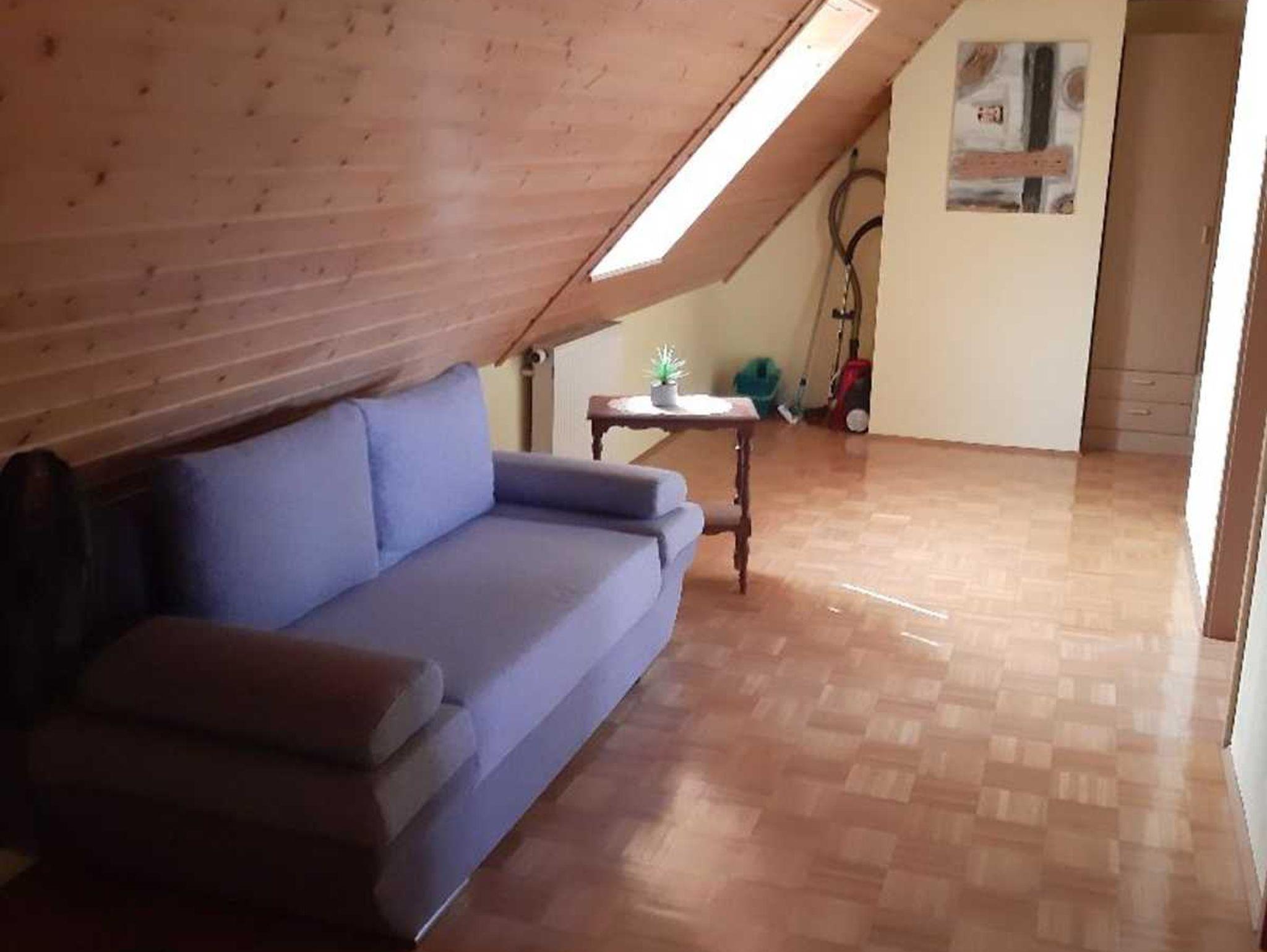 Unsere ruhige 90qm Dachwohnung für 1-4 Personen verfügt über ein Bad incl. Dusche/WC sowie eine neue, vollausgestattete Küche. Das großes Wohnzimmer ist mit TV und DVD Player ausgestattet, ein geräumiges Schlafzimmer mit Doppelbett sowie 2 Schlafcouches (140x200) stehen zur Verfügung, somit können bei Bedarf bis zu 4 Erwachsene untergebracht werden. Die Couches befinden sich freistehend in Flur und Wohnzimmer. Platz für ein Kinderbett ist vorhanden, muss allerdings selber mitgebracht werden. Freies W-Lan ist in allen Bereichen verfügbar.