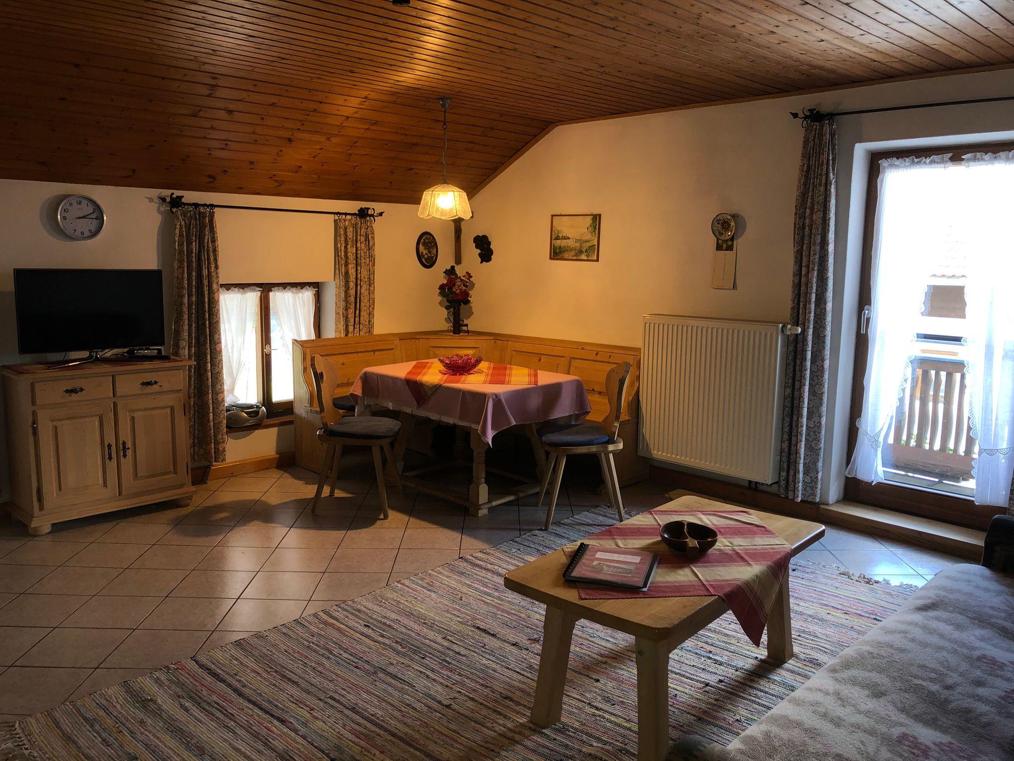 Diese 65 qm große Wohnung im modernen bayerischen Stil, hat zwei separate Schlafzimmer mit Doppelbetten und ein modernes Duschbad. Die Wohnküche verfügt über eine Küchenzeile mit Geschirrspüler, Backofen, Herd, Kühlschrank, Kaffeemaschine, Toaster, Wasserkocher, Geschirr und allem was man sonst noch zum Kochen benötigt. Hier lässt es sich prima ratschen und gemütlich essen. Es gibt auch eine gemütliche Sitzecke mit Couch und Sat - TV und für alle, die es auch im Urlaub nicht ohne aus halten - einen Internetanschluß. Besonders schön ist auch der, nach Osten liegende, Balkon. Bettwäsche und Handtücher, stellen wir Ihnen zur Verfügung.