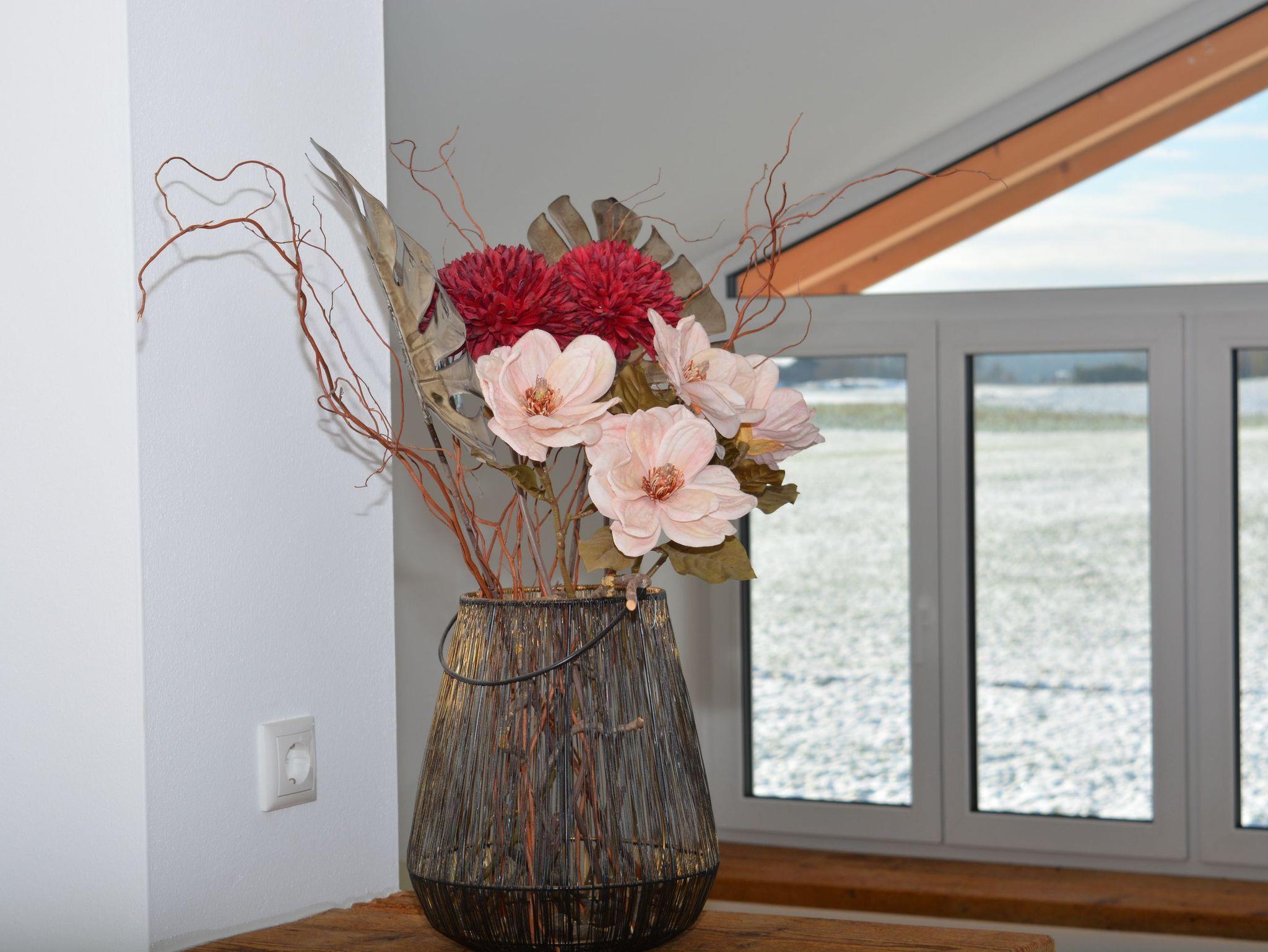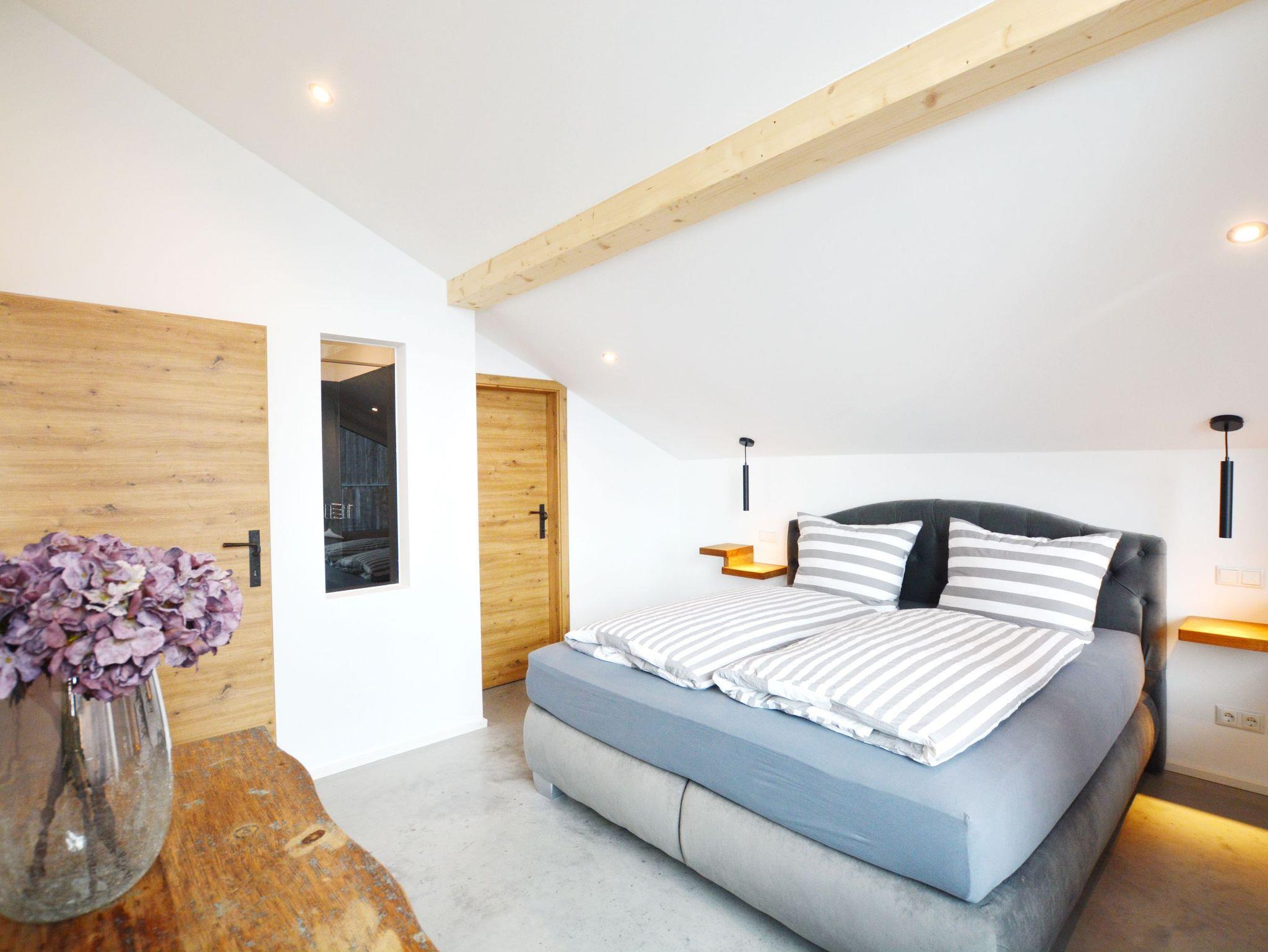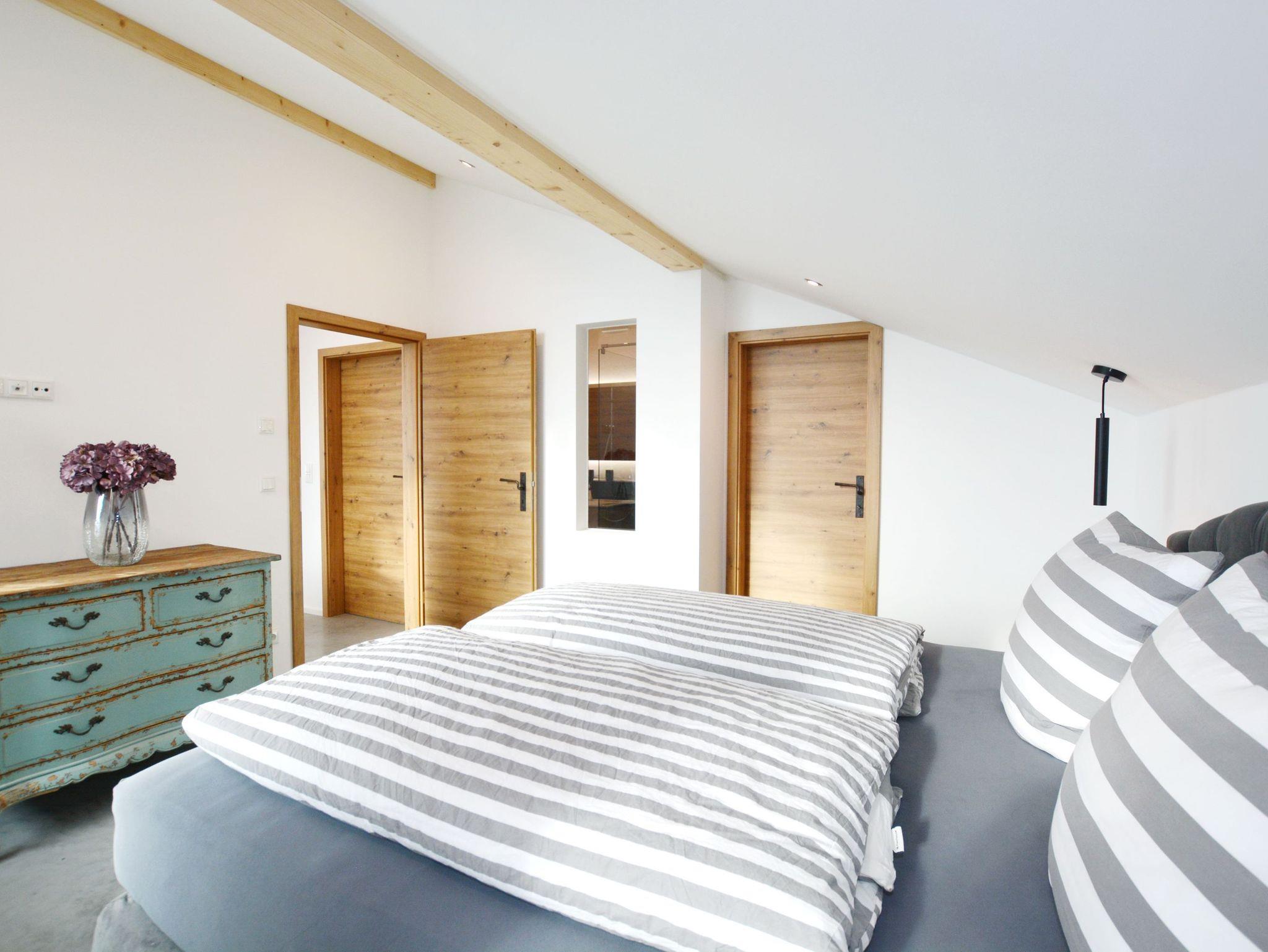 Meisterhof-LichtBlick, ein echtes Juwel im neu ausgebauten Dachgeschoss des Nebengebäudes im Meisterhof, heißt Sie herzlich willkommen. Das luxuriös und modern ausgestattete Loft bietet einen traumhaften Blick auf die Berge des Chiemgaus und des Inntals. Es ist der perfekte Ort zum Abschalten und Entspannen, somit optimal für die Urlaubszeit. Die hochwertige Ausstattung, die vom Eigentümer sorgfältig ausgewählt wurde, wird Sie begeistern. Das offene Wohnkonzept des Wohn- und Essbereiches mit offener Küche ist geschickt durch wenige Stufen und eingebaute Mauern getrennt worden, hier kann man sich nur wohlfühlen. Im Boxspringbett des angrenzenden Schlafzimmers finden Sie sicherlich einen angenehmen Schlaf. Modern ausgestattet präsentiert sich das Badezimmer mit bodengleicher Dusche, einem Waschbecken und einer Toilette. Entspannen auf der großen West-Terrasse - Lichtblick hat Vieles zu bieten.