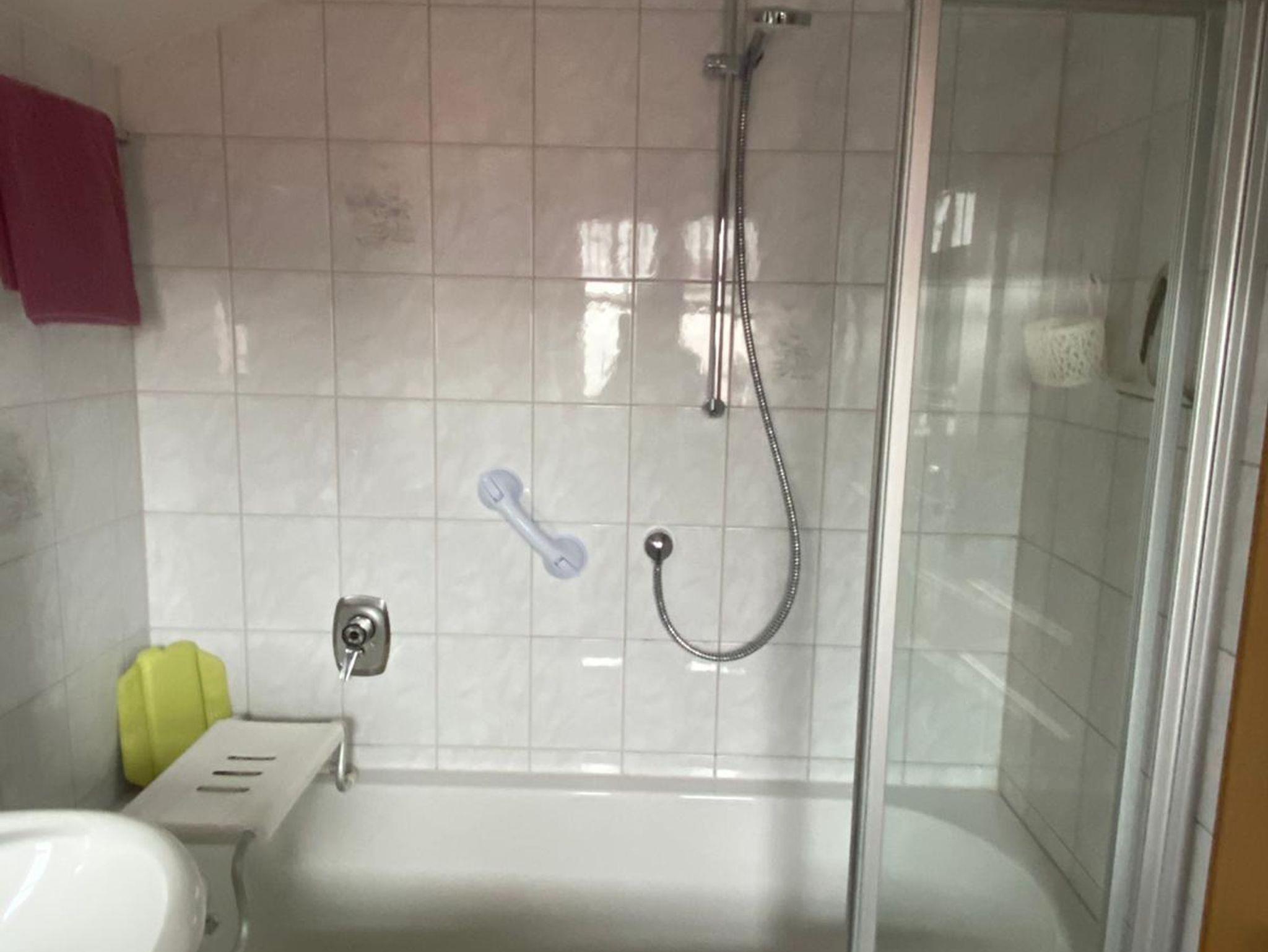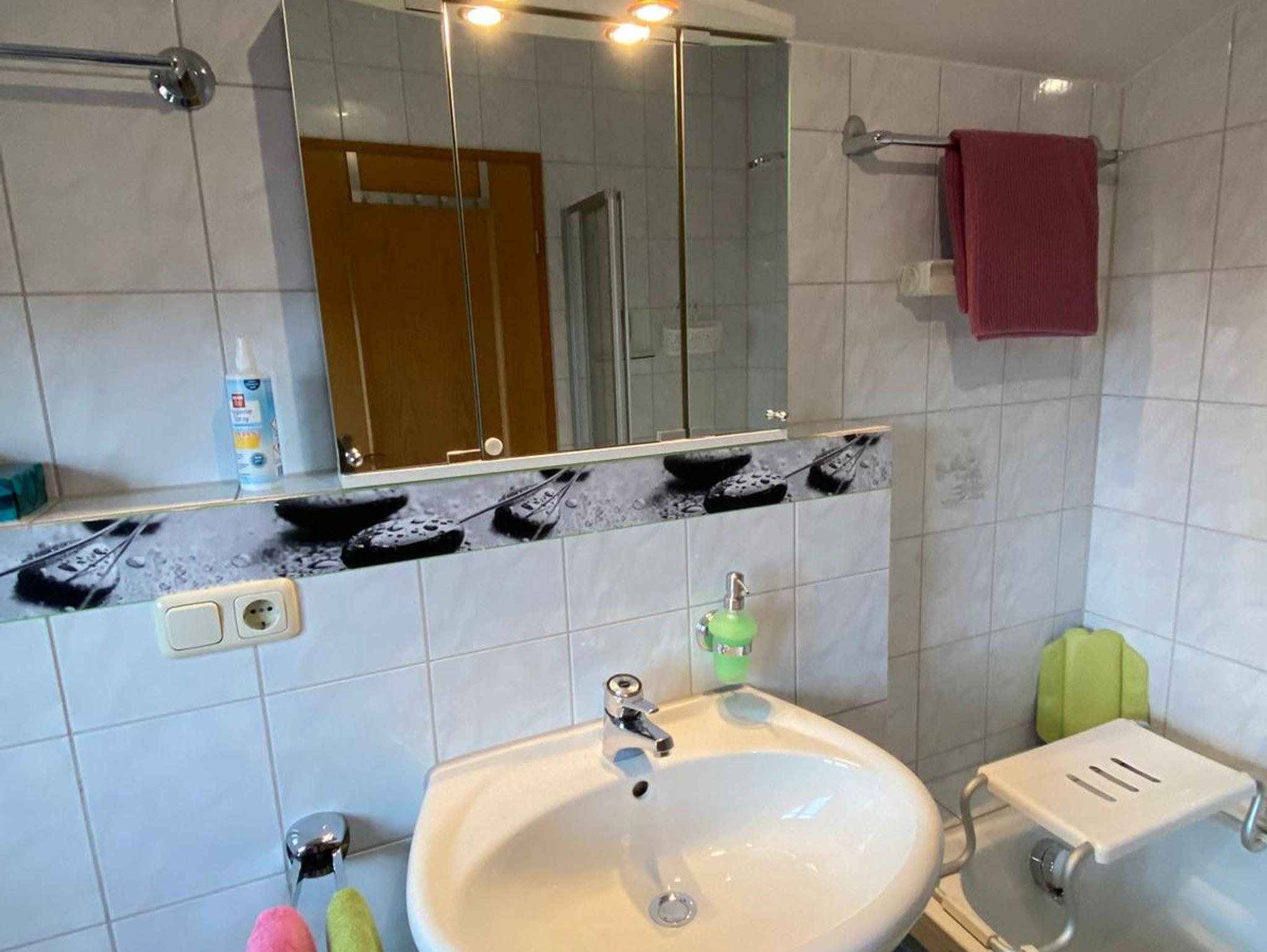 Im hellen Badezimmer versorgen wir sie mit kuschligen Bade- und Handtüchern, Kleenex, Seife und Toilettenpapier. Das Bad hat ein sichtgeschütztes Fenster, WC, Waschtisch, Spiegel und eine Wanne mit einer Glasabtrennung zum Duschen. Ein Badewannensitz erleichtet das Duschen zusätzlich.