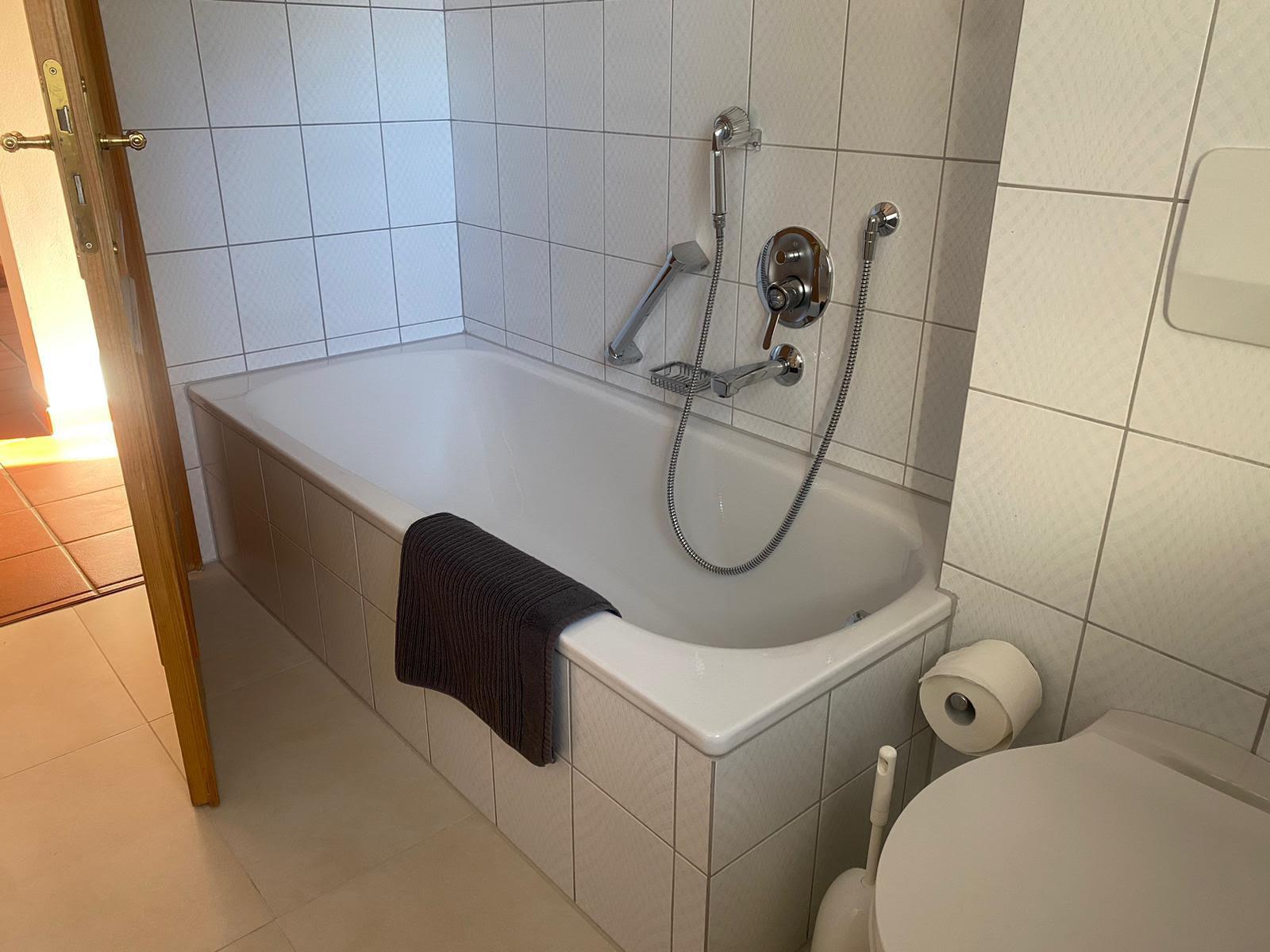 Badeværelse med bruser og badekar