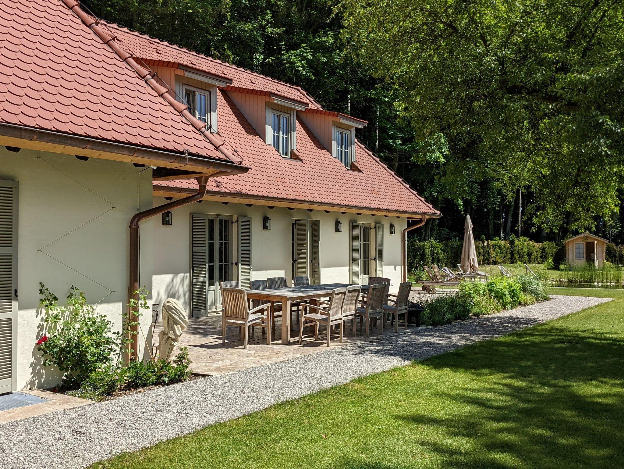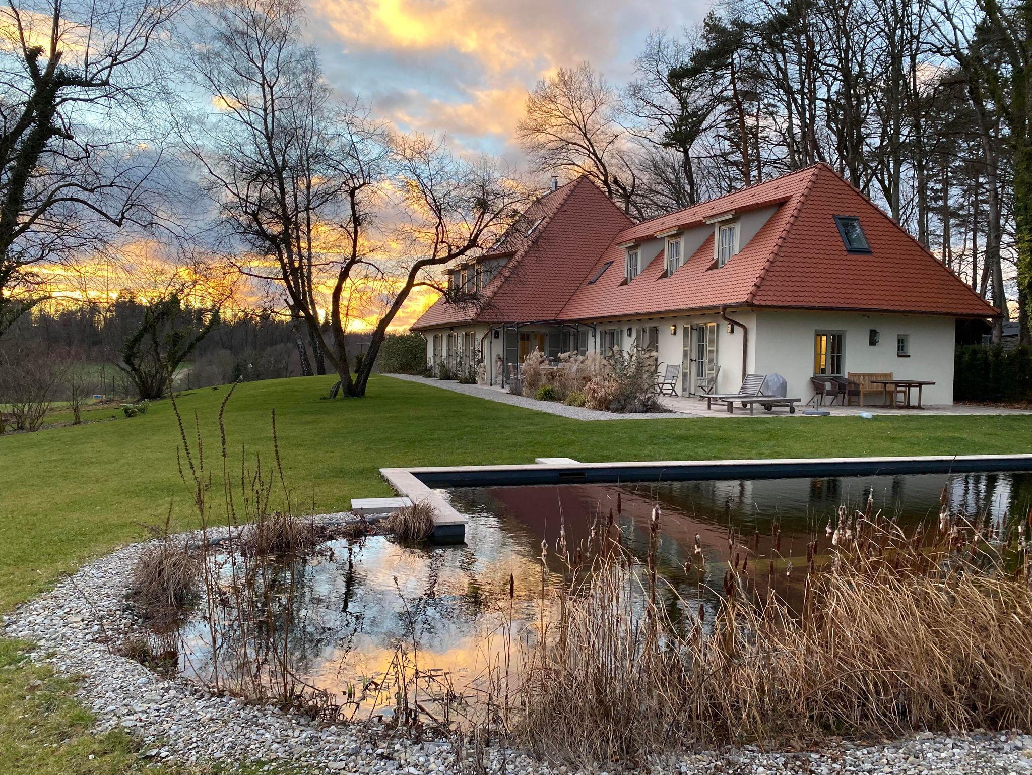 Die Villa Riedhof ist eine 2021 generalsanierte Villa und besteht aus einem großen, luxuriös eingerichteten Haupthaus mit sieben Schlafzimmern sowie einer stilvollen und voll ausgestatteten Einliegerwohnung. Beide Einheiten haben Zugang zur Terrasse mit getrennten Grill- und Sitzmöglichkeiten sowie einem beheizten Naturpool (Mai bis September) und weitläufigen Garten. Das Anwesen ist mitten in der Natur und trotzdem nah an vielen Attraktionen. Unter anderem befindet sich die Villa neben dem exklusiven Golfclub Riedhof München, welcher über einen 18-Loch-Platz verfügt und auch Indoor Golf anbietet. Der Starnberger See ist gleich um die Ecke, Badespaß ist also garantiert. In unmittelbarer Nähe liegen in Wolfratshausen, viele urige Biergärten und die Isar, auf der im Sommer Floßfahrten angeboten werden. Mit der S-Bahn erreicht man von Wolfratshausen aus schnell und komfortabel das Münchner Zentrum.