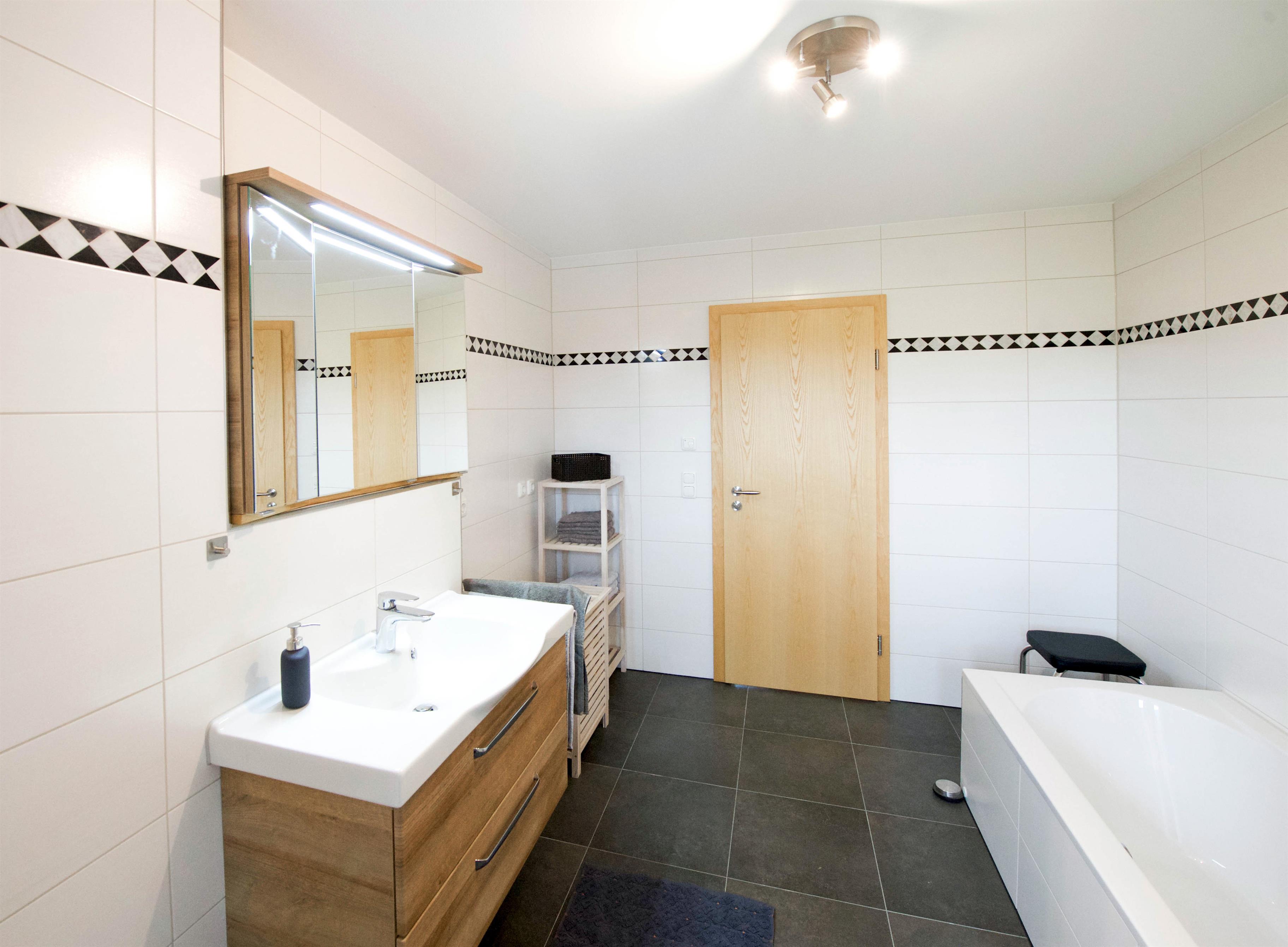 - schönes geräumiges Badezimmer mit Fenster sowie Badewanne und Dusche
