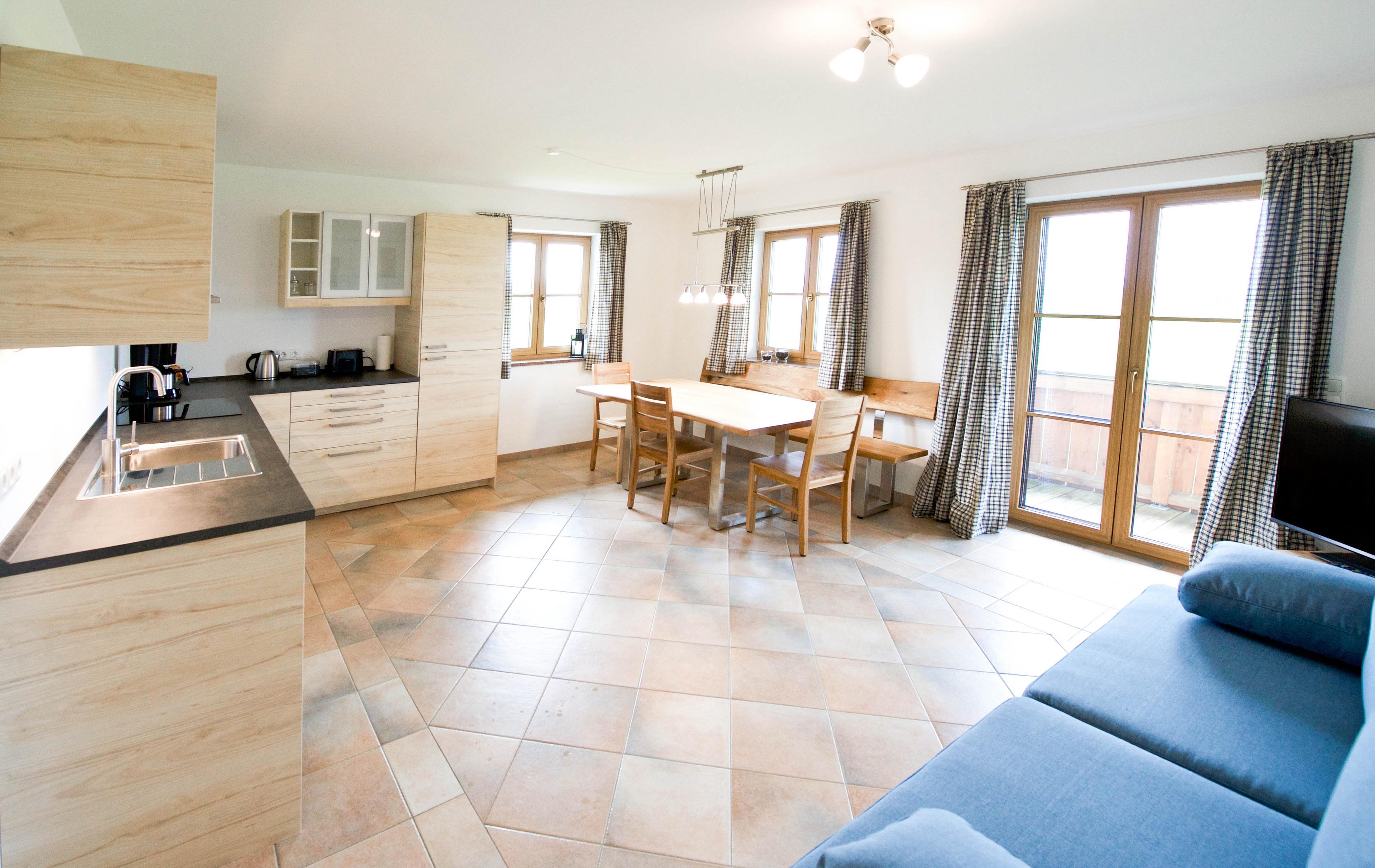 - helle Wohnküche mit Doppelschlafcouch