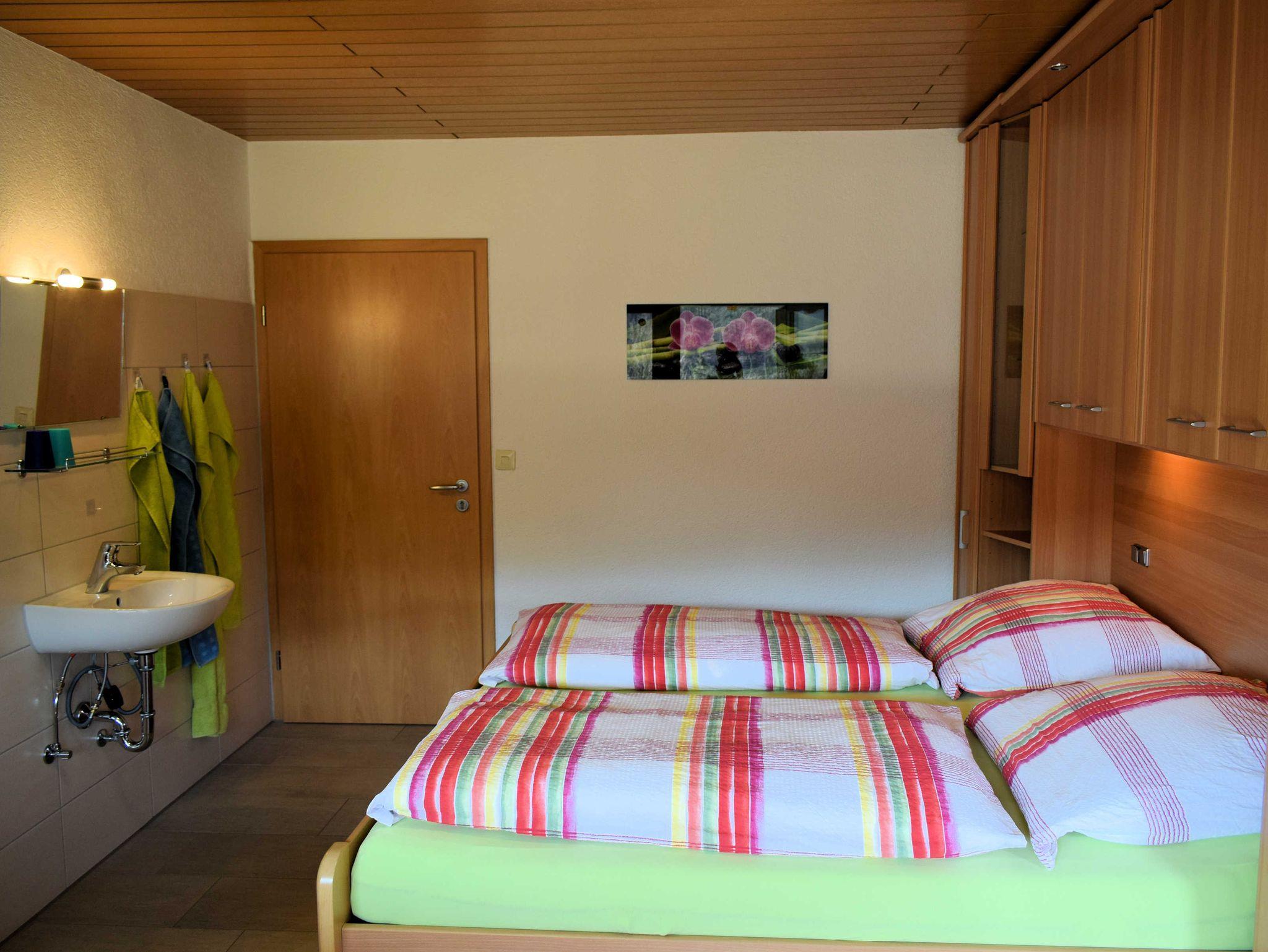 Wir verfügen über 1 DZ mit Etagendusche/WC. Im hellen, gemütlichen Doppelzimmer mit Balkon befindet sich ein Schrank, eine Sitzgelegenheit und eine Waschgelegenheit. Ein Fön ist auf Anfrage erhältlich.