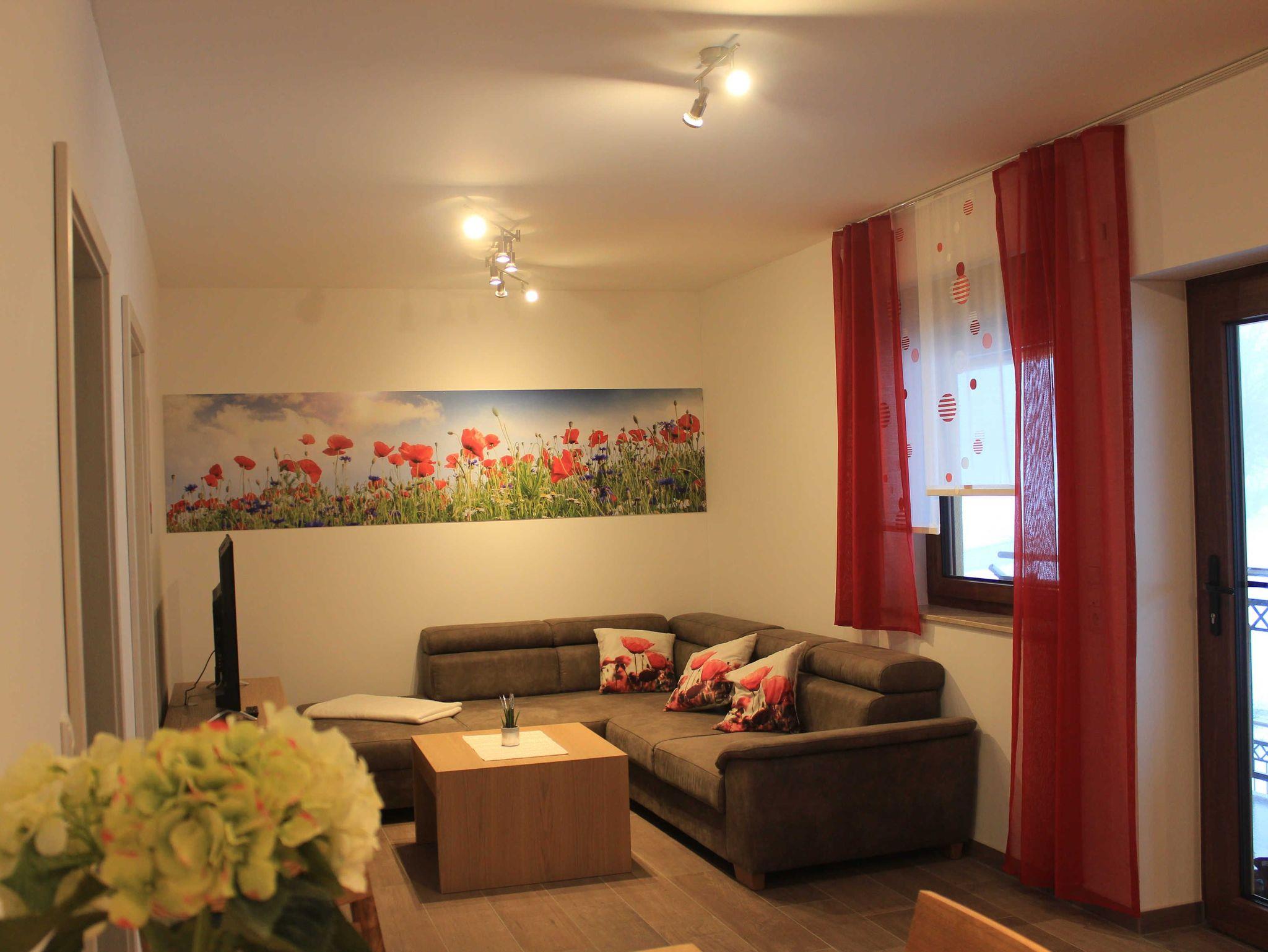 Unsere neue, lichtdurchflutete Ferienwohnung Blumenwiese verfügt auf 46 qm über 2 Schlafzimmer, eine vollausgestattete Küche mit Esstisch, ein offenes Wohnzimmer, ein Badezimmer mit Dusche/WC, sowie eine Terrasse mit Sitzgelegenheit. Die Wohnung bietet Schlafgelegenheiten für bis zu 4 Personen und ein Kleinkind. Sie liegt im 1. Stock und ist über eine Außentreppe erreichbar.