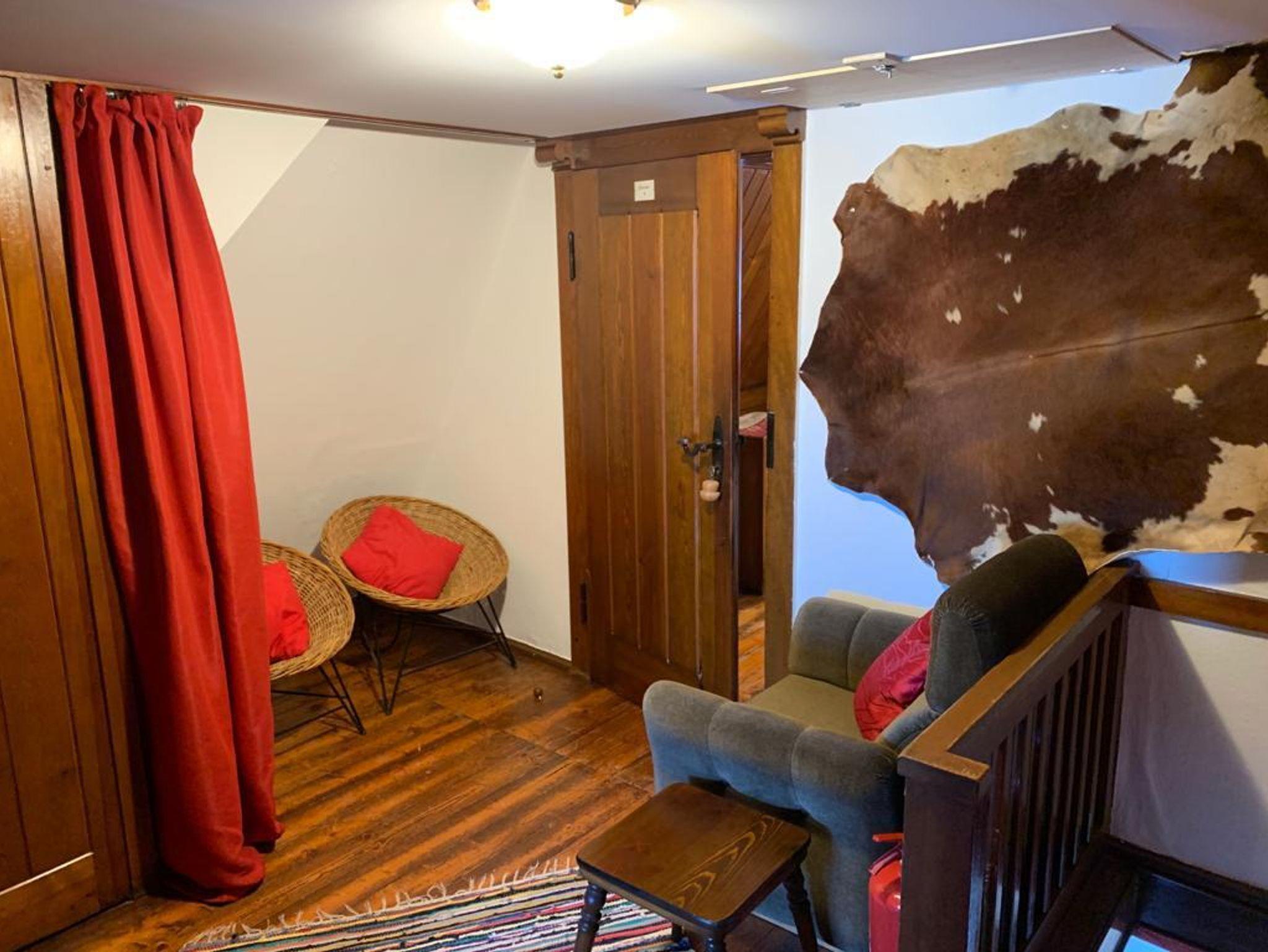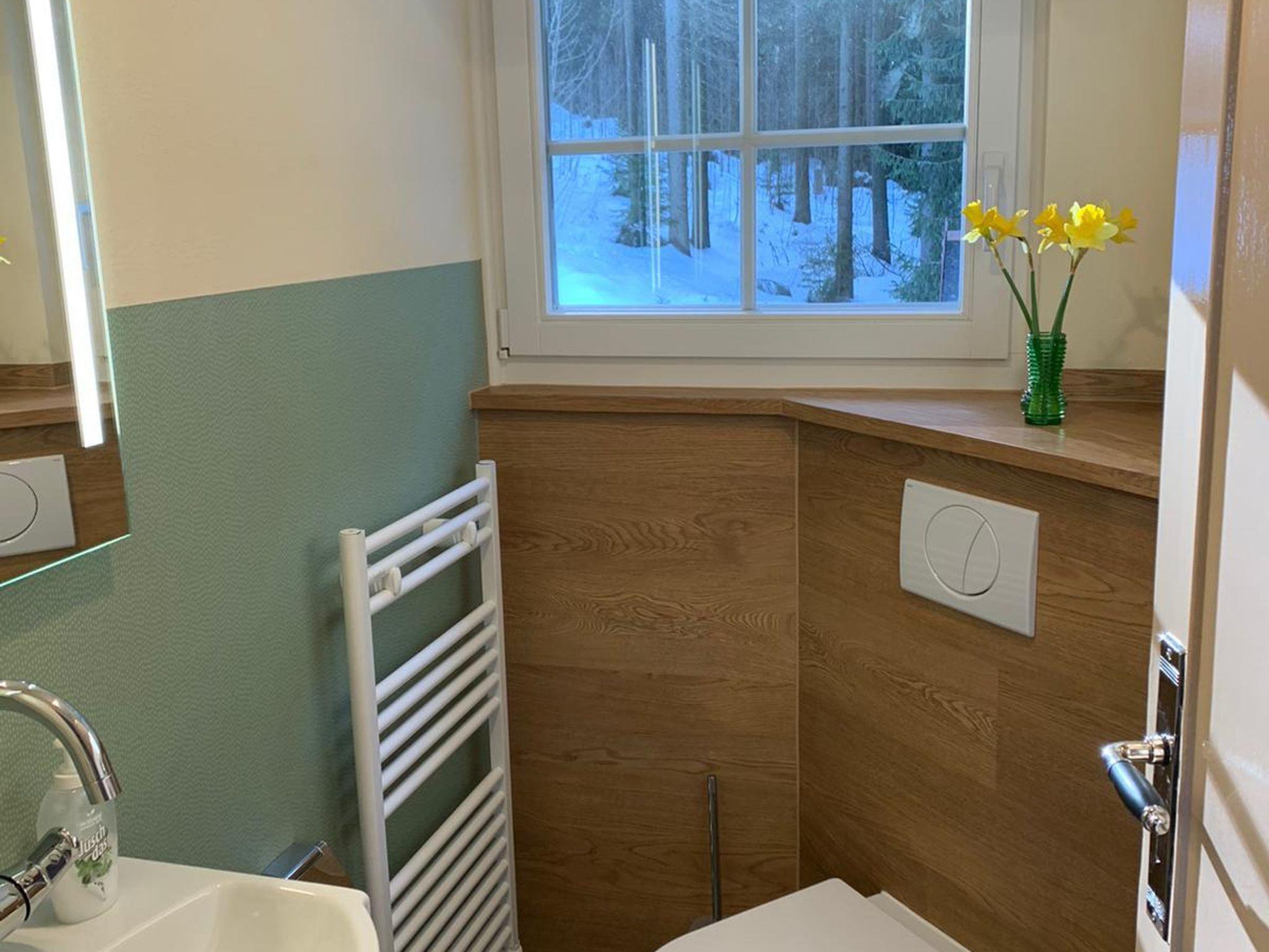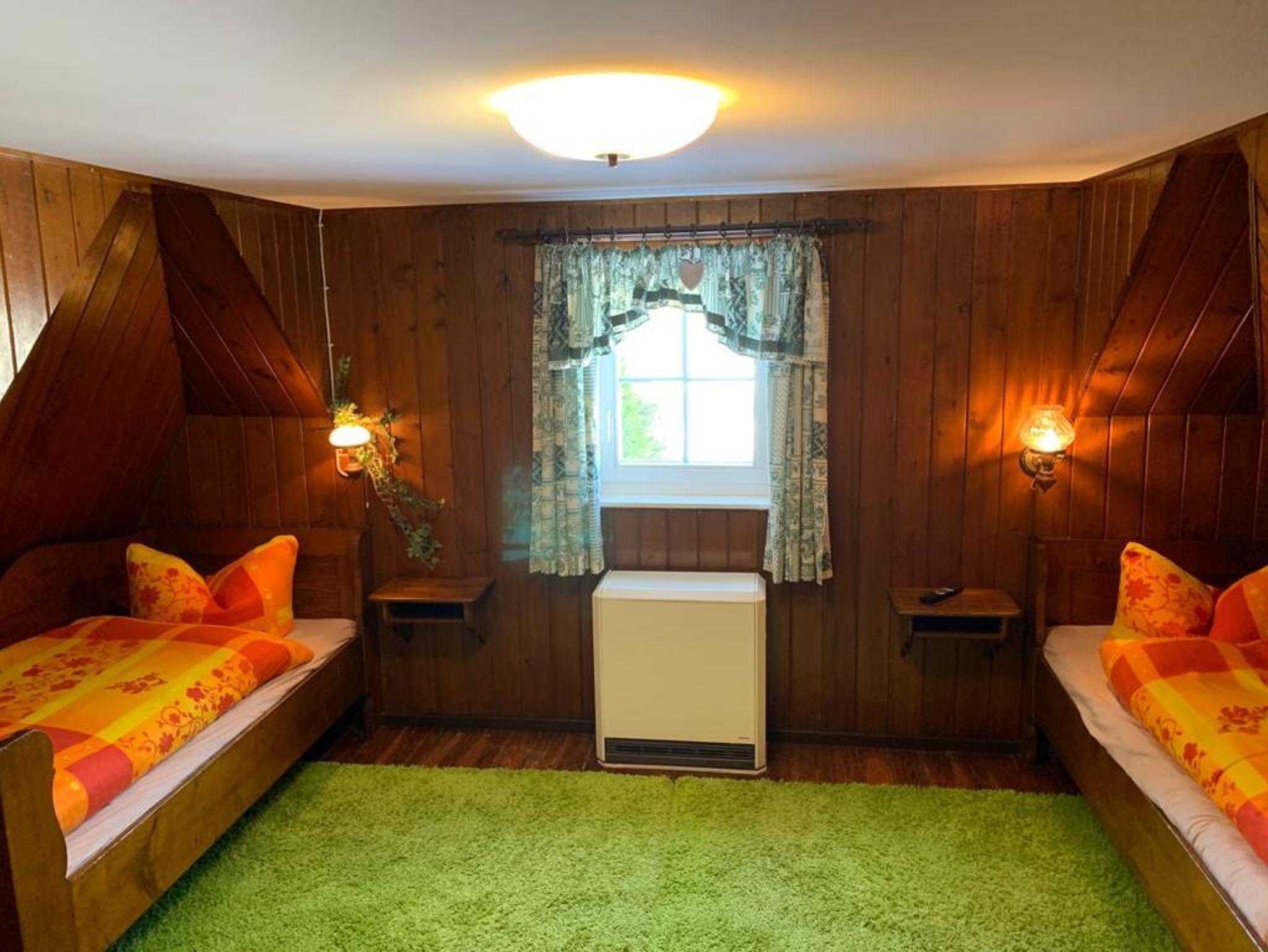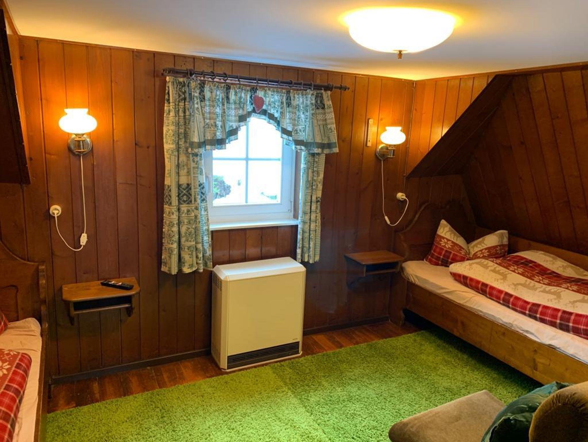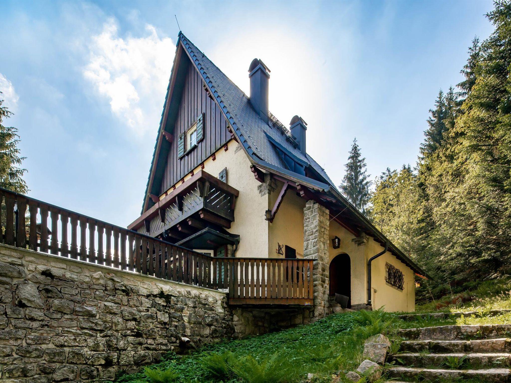 Die ehemalige Unternehmervilla aus dem Jahr 1936 ist ein Juwel, welches viele Schätze aus Gründerjahren im Originalzustand durch seine bewegte Geschichte erhalten konnte. Tauchen Sie ein, in das Prestige der 30-er Jahre. Sie parken an der Grundstücksgrenze. Ihr Gepäck nimmt den Aufzug, Sie den überdachten Aufgang zu Fuß oder bei trockenem Sonnenschein die Treppen. Nachdem Sie den Aufstieg zum Haus bewältigt haben, kommen Sie in einen herrlichen Empfangsbereich. Dort ist Platz für Gaderobe, Wanderschuhe, Skihelme usw. Abgehend dort finden Sie den Zugang zu Küche, Keller, Kaminzimmer und Bauerstube sowie die Treppe ins Obergeschoss. Im Obergeschoss gehen die drei Doppelzimmer 1,2,3 mit den Ehebetten ab und das Bad mit Dusche und WC, sowie ein extra WC. Über eine schmale Treppe gehts ins Dachgeschoss zu den äußerst gemütlichen DZ mit Einzelnbetten. Im Keller befindet sich die Sauna mit Tauchbecken, und Ruhebreich im Garten, 2 Duschen, 1 WC, Ruheberich mit Kamin und ein separates EZ.