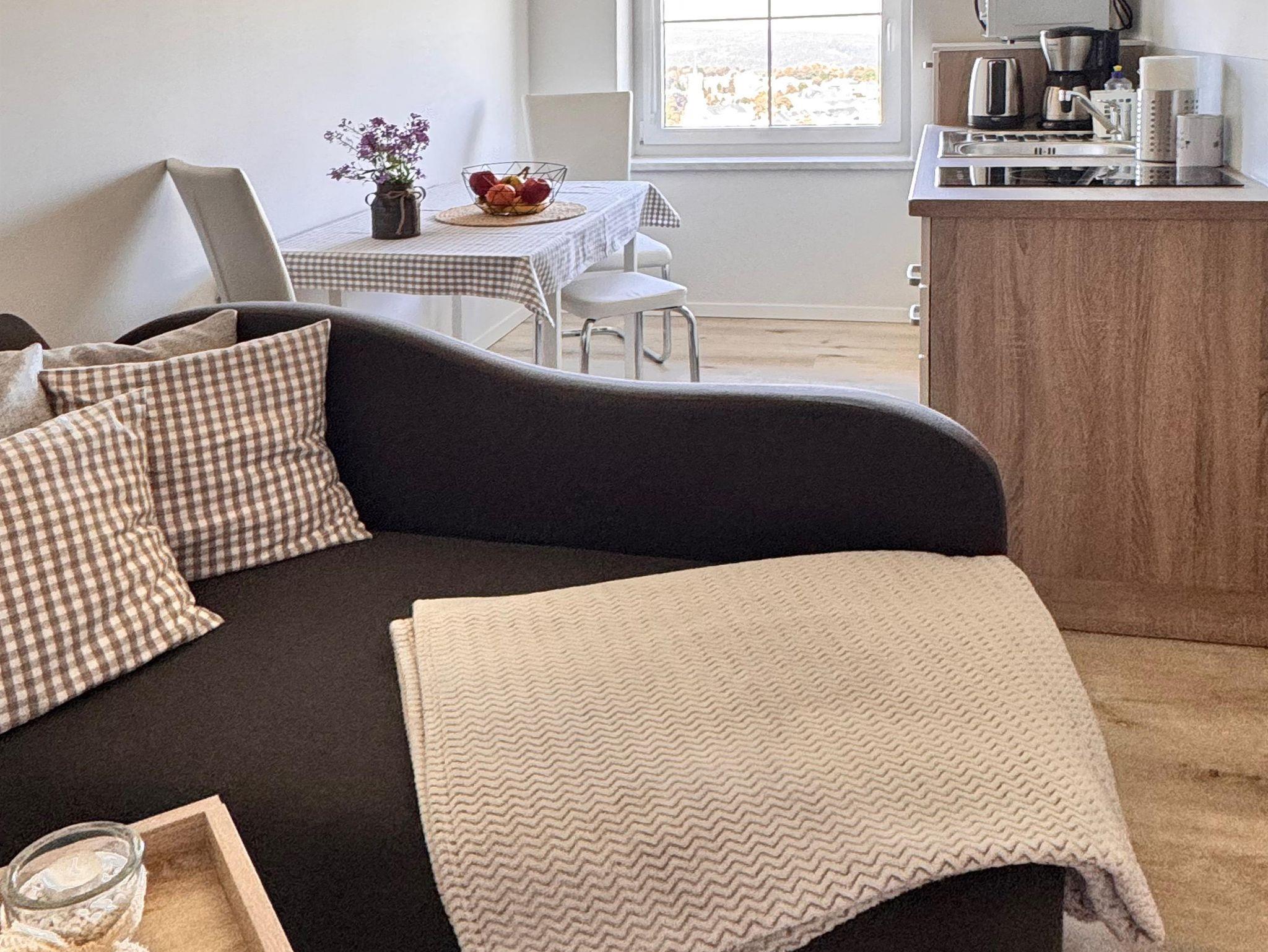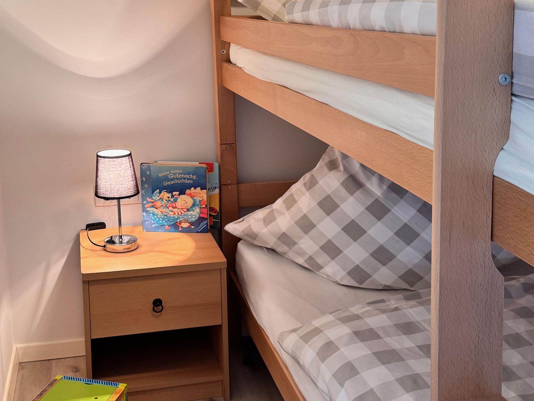 Die Ferienwohnung Hase bietet auf 39 Quadratmetern Platz für bis zu 4 Personen. Sie verfügt über ein Schlafzimmer mit einem Doppelbett und einem Etagenbett, welche durch eine Trennwand mit seitlichem Durchgang voneinander abgegrenzt sind. Der offene Wohnbereich verfügt zudem über TV, DAB-Radio mit Bluetooth und einen Kamin. Die Einbauküche ist mit Kühlschrank, Tiefkühlfach, Geschirrspülmaschine, Dunstabzugshaube, 2-Felder-Ceranfeld, Mikrowellenbackofenkombination, Dunstabzugshaube, Kaffeemaschine, Toaster, Wasserkocher, Eierkocher, Brotschneidemaschine voll ausgestattet. Das Tageslichtbad verfügt über Dusche, WC, Waschbecken und einen Handtuchheizkörper. Die gesamte Wohnung wird zentral über eine Fußbodenheizung beheizt. Die Bettwäsche und Handtücher sind inklusive. WLAN und Parkplatz sind kostenfrei vorhanden. Es gibt auch eine kostenfreie Abstellmöglichkeit für Ski, Fahrräder & Co. Es handelt sich um eine Nichtraucherwohnung.
