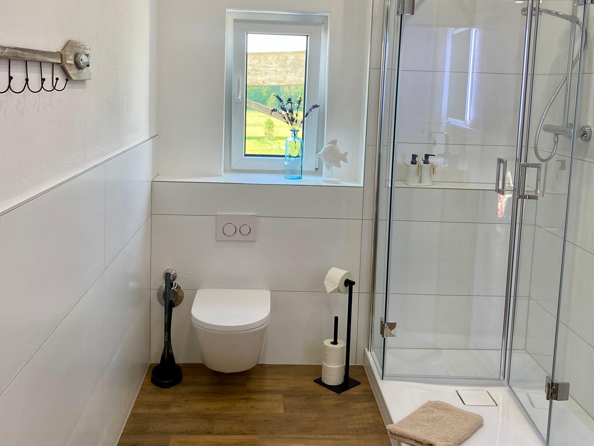 Das Badezimmer ist mit Dusche/WC und einem Föhn ausgestattet.