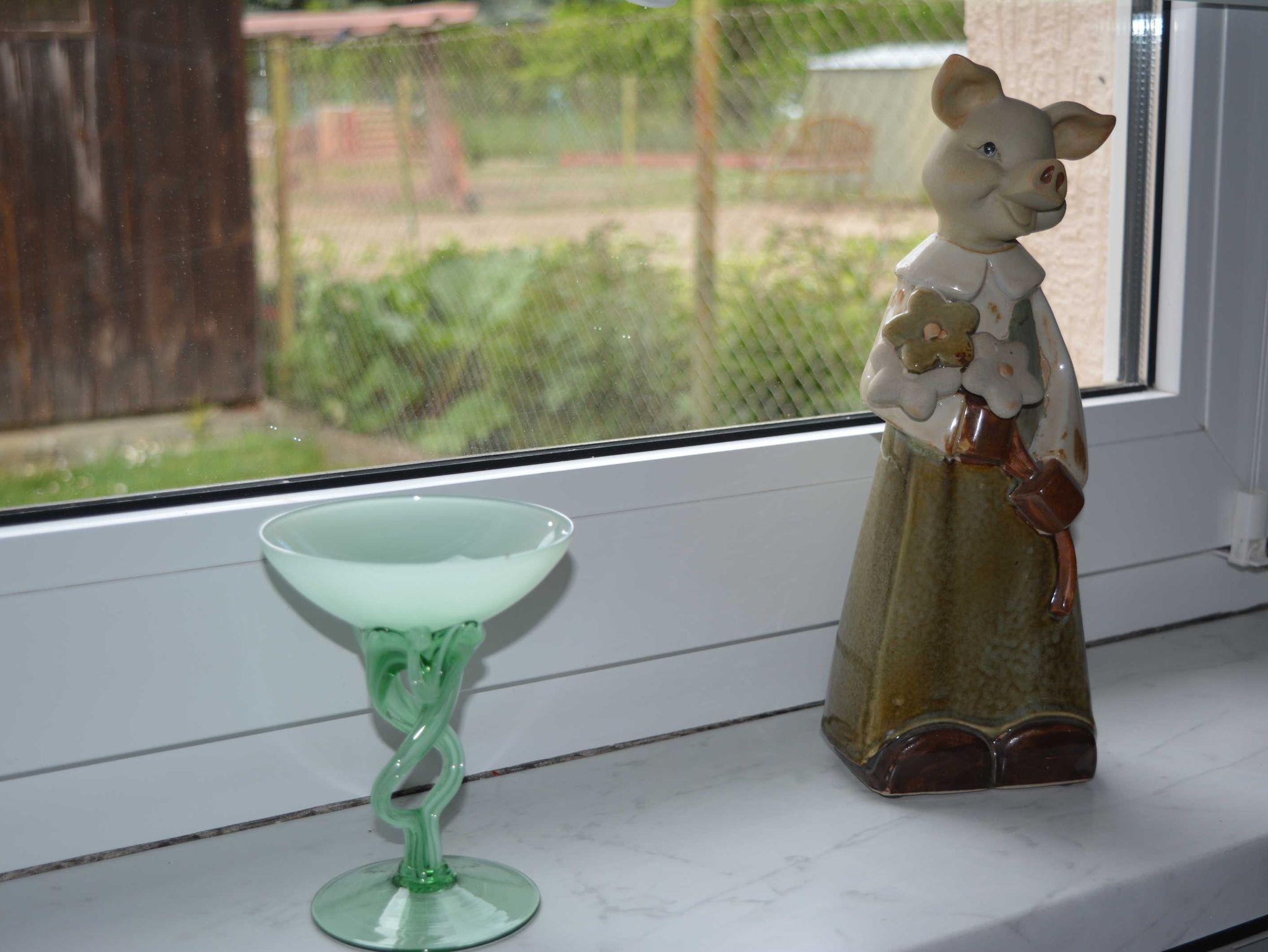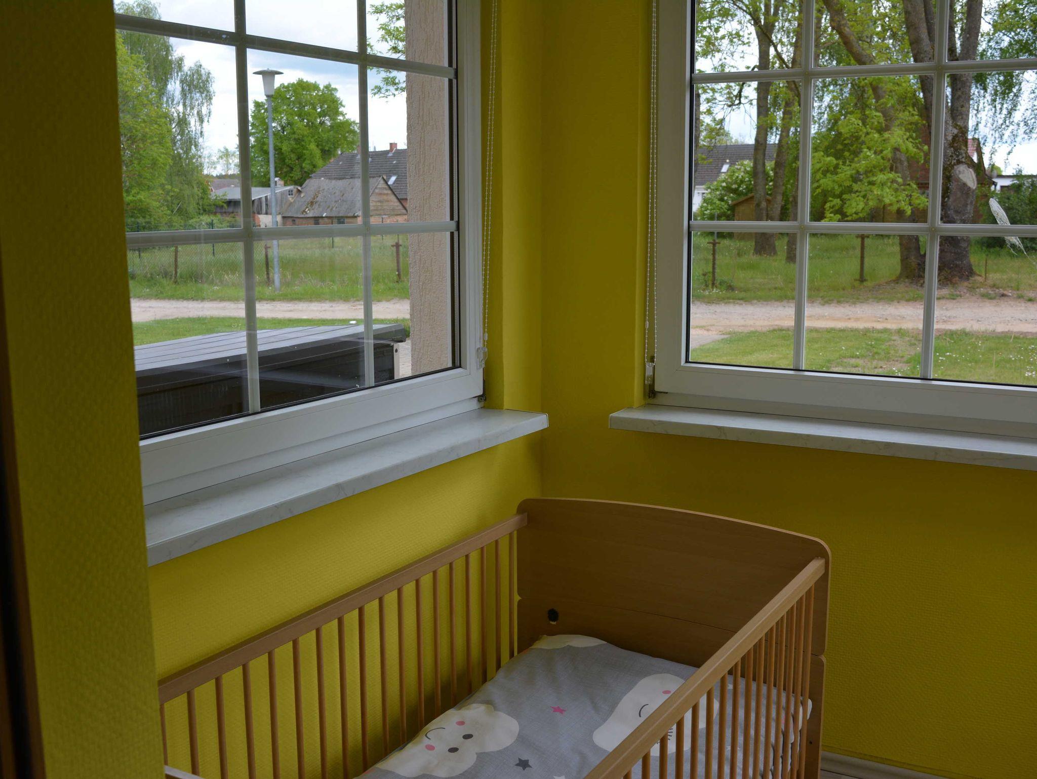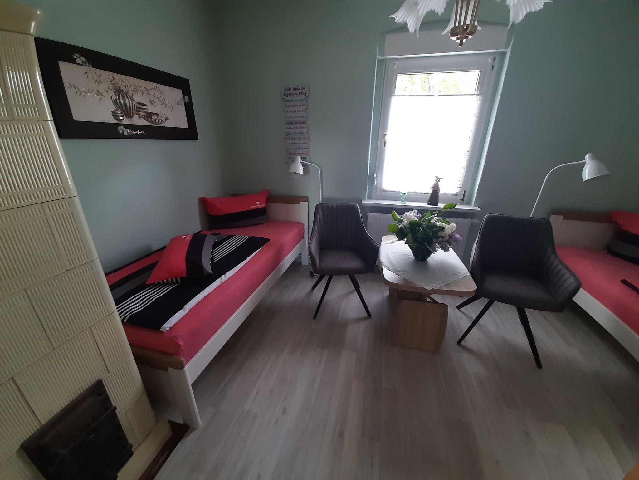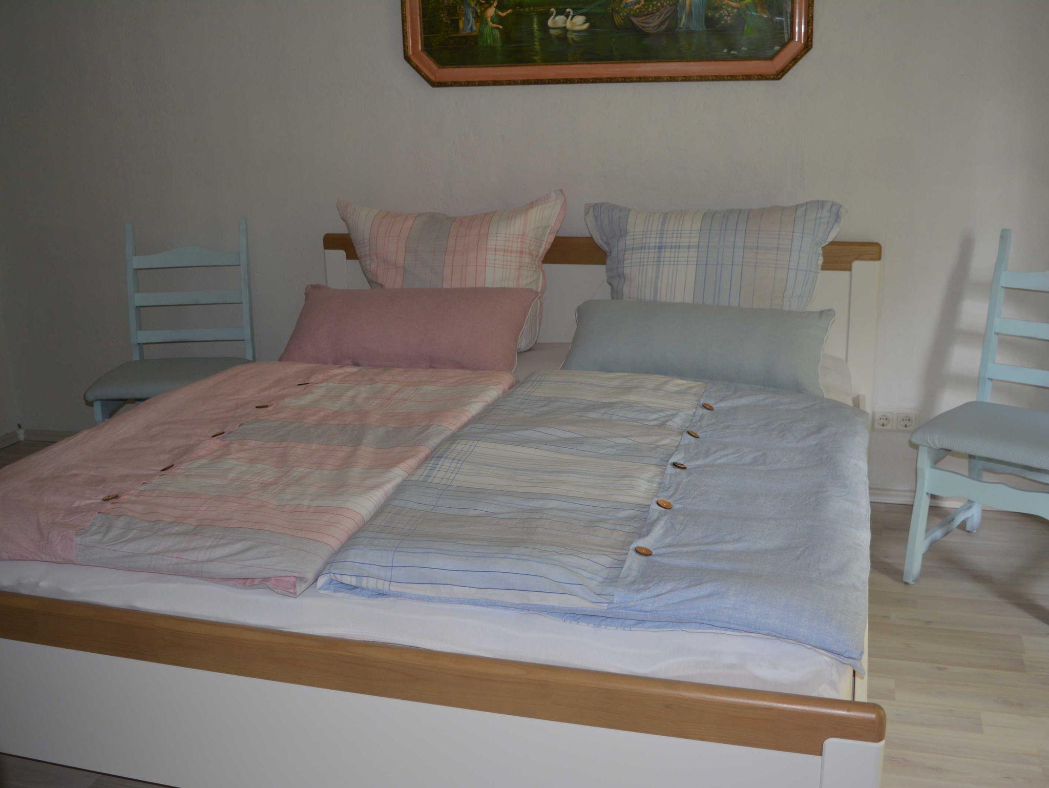 Ferienhaus in ruhiger Ortslage Wohnfläche 73 m² für 1-4 Personen; Büroarbeitsplatz und Kinderspielecke; Wohnküche (Ceranfeld, Backofen, Geschirrspüler, Mikrowelle, Kaffeemaschine, Kaffeevollautomat, Toaster, Kühl-Gefrierkombination, große Couch, Esstisch, WLAN, Satelliten-TV); ein Schlafzimmer mit Doppelbett, anliegend Büroarbeitsplatz; ein weiteres Schlafzimmer für 2 Personen mit 2 Einzelbetten, Kleiderschrank, Bügelbrett und Bügeleisen; Garderobe mit Ottomane; Badezimmer mit WC, Waschmaschine, Waschbecken, Duschkabine und Haartrockner; Baby-Essstuhl; Terrasse mit Sonnenschirm, gemütlichen Gartenmöbeln und Holzkohlegrill; 2 PKW Stellplätze; Zentralheizung
