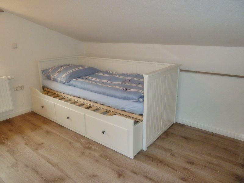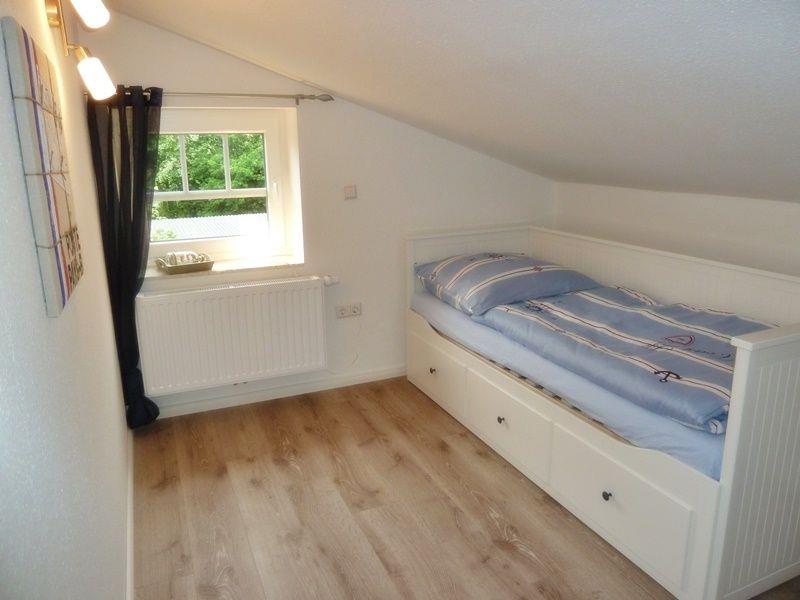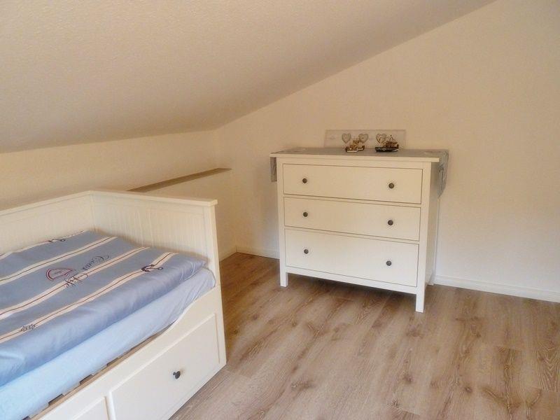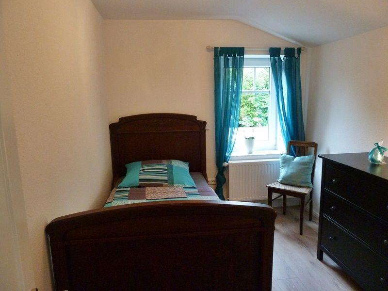 Das Obergeschoss verfügt über 3 Schlafzimmer. Alle Räume sind mit Laminat ausgelegt. Die Möbel unterstreichen den ursprünglichen Charme des Hauses von 1900 kombiniert mit modernen Accessoires.