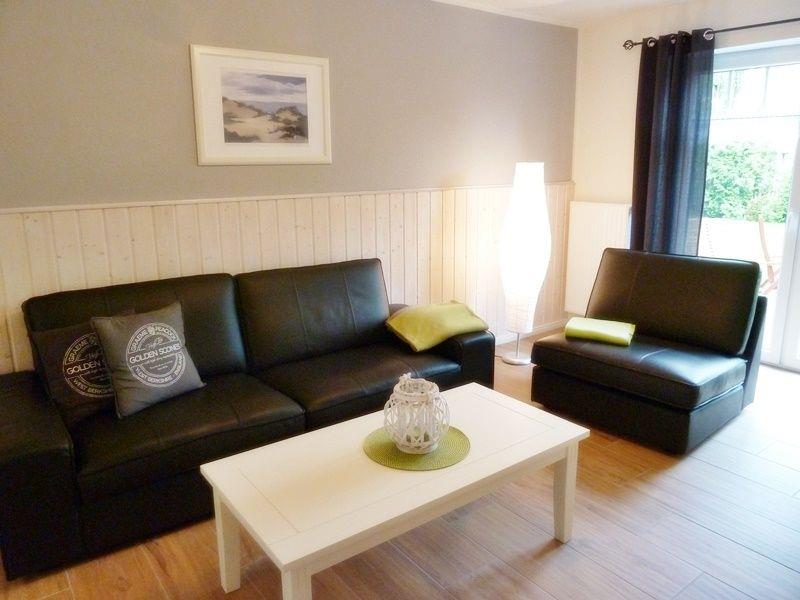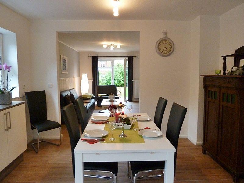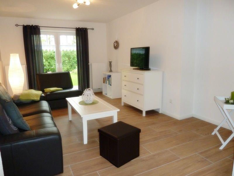 Das 100 qm große Haus mit großem, umzäunten Garten ist im Erdgeschoss gefliest und verfügt über einen großen Wohn-Essbereich mit einer modernen, komplett ausgestatteten Küche (Geschirrspüler, Kühlschrank mit Gefrierfach, Backofen, Mikrowelle, Cerankochfeld, Toaster, Mixer, Eierkocher, Kaffeemaschine, Kaffeepadmaschine, Wasserkocher u.v.m). Ein Tisch mit 5 Stühlen lädt zu gemütlichen Familienessen ein. Im Wohnbereich steht eine großzügige Ledercouch und ein bequemer Sessel mit Fußhocker für gemütliche Abende vor dem Fernseher. Vom Wohnbereich aus gelangen Sie auf die große Terrasse mit Blick in den schön angelegten Garten. Der Garten ist komplett eingezäunt (1,25 m Höhe). Ein Grill ist vorhanden.