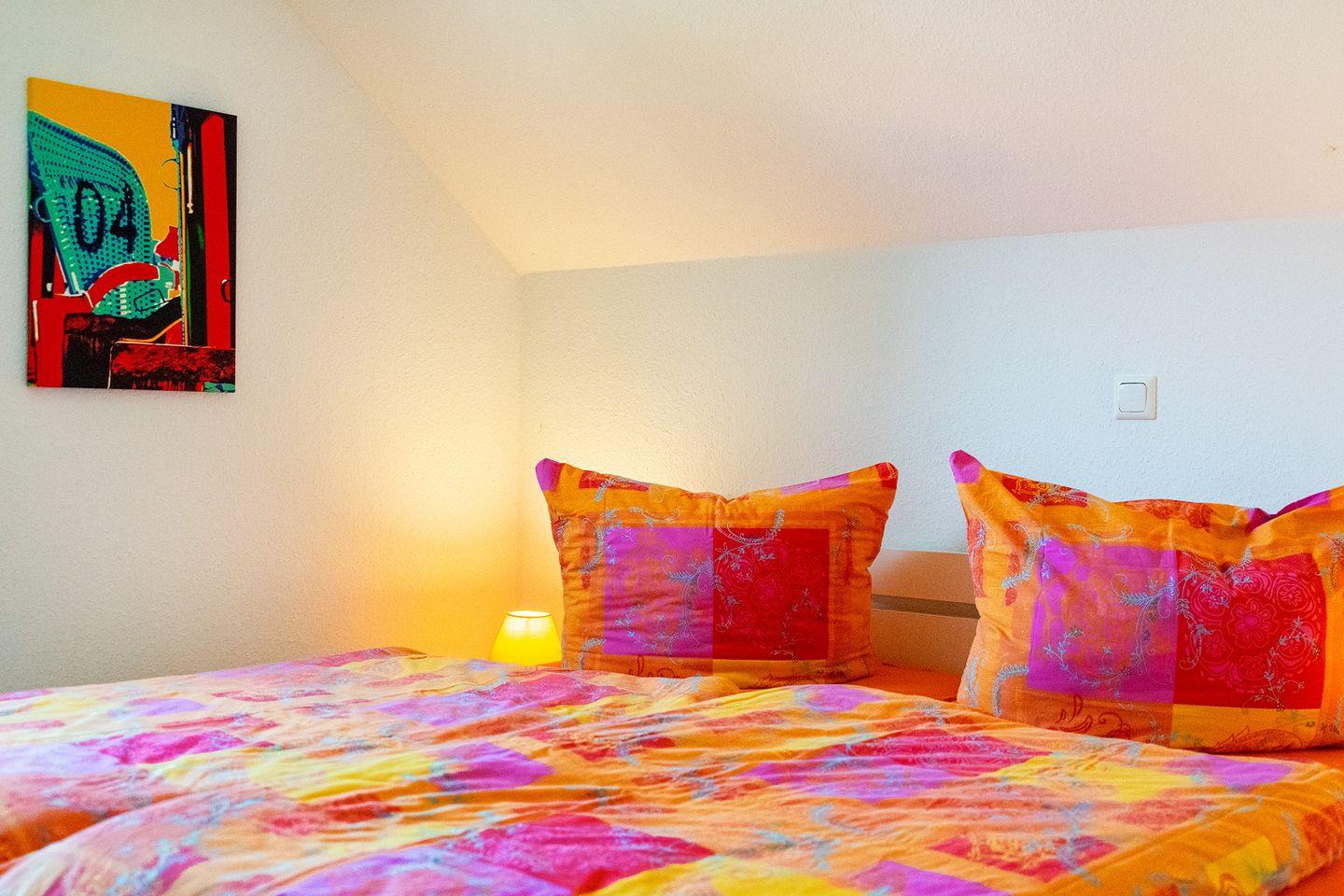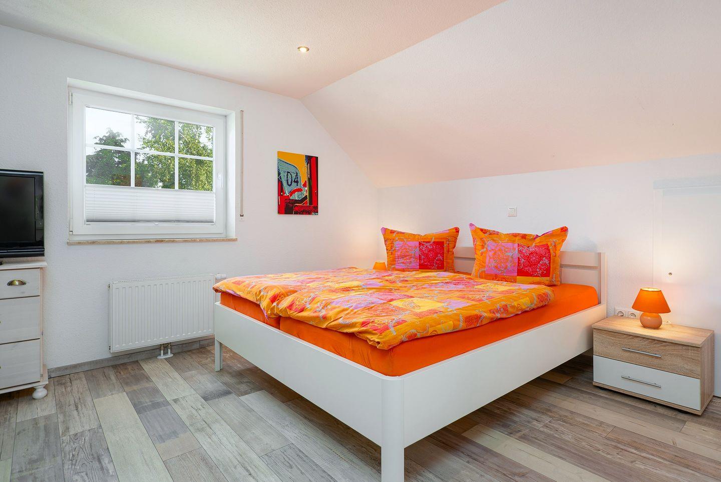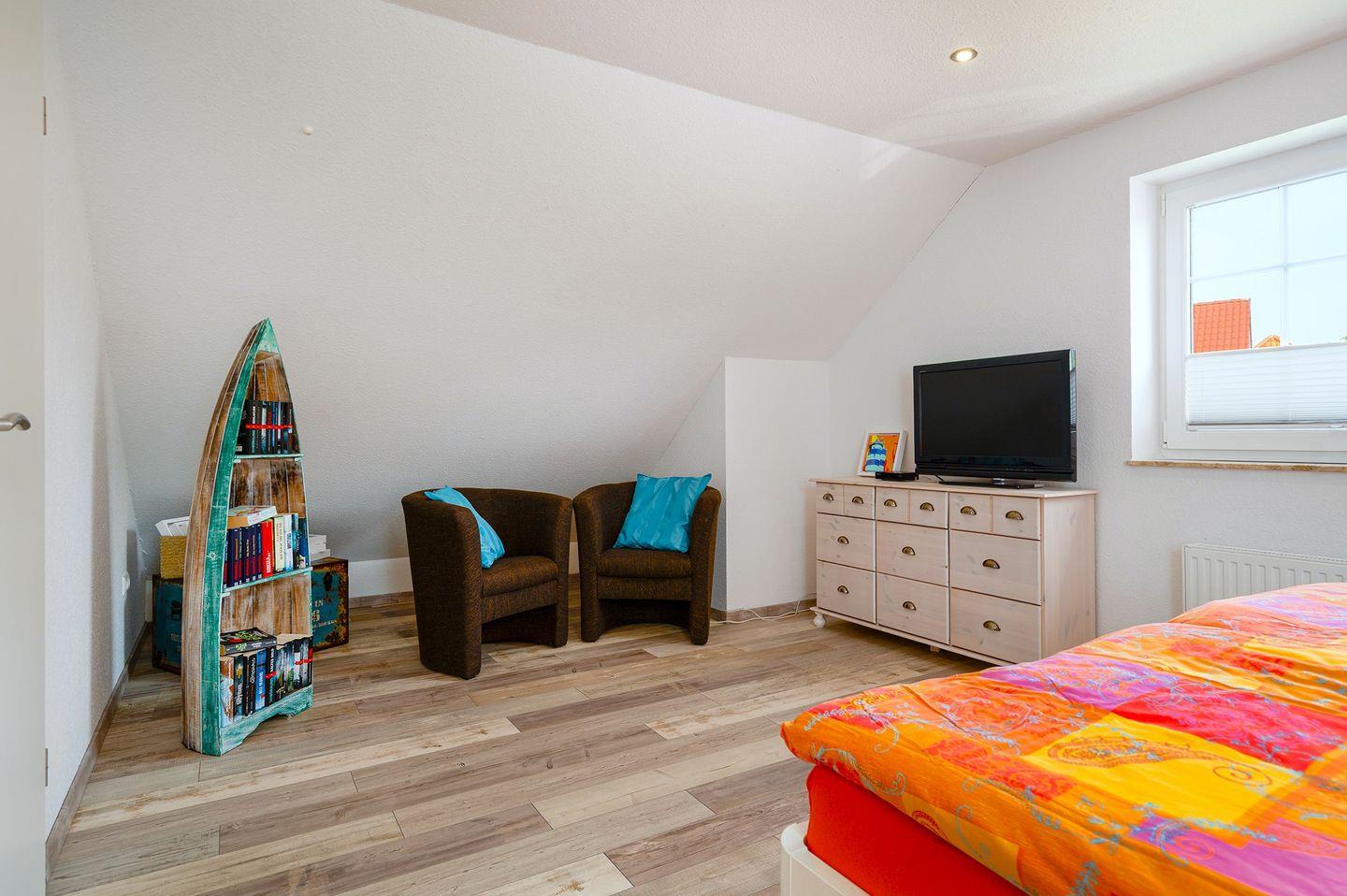 Die 3 Schlafzimmer, davon ein Doppelbett im EG, 1 Doppelbett im OG, sowie zwei Einzelbetten im OG (alle Betten haben die Größe 2m x 0,90m). Im Schlafzimmer mit dem Doppelbett im OG befindet sich ein zweiter Fernseher. Anschlüsse sind in allen Schlafräumen vorhanden.