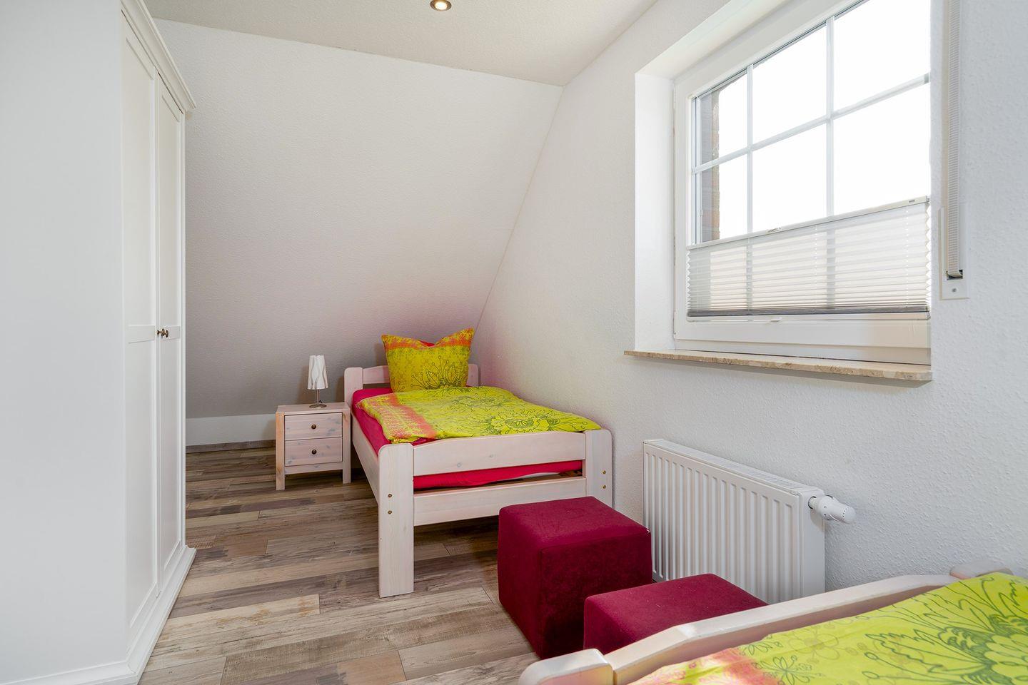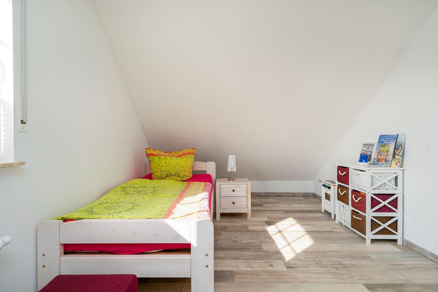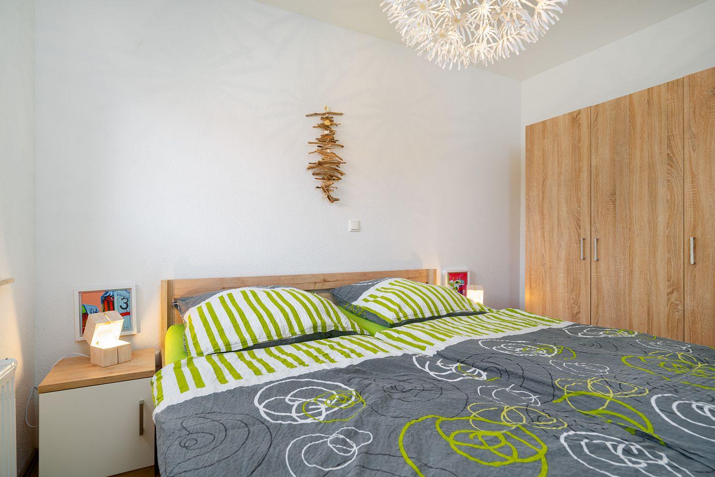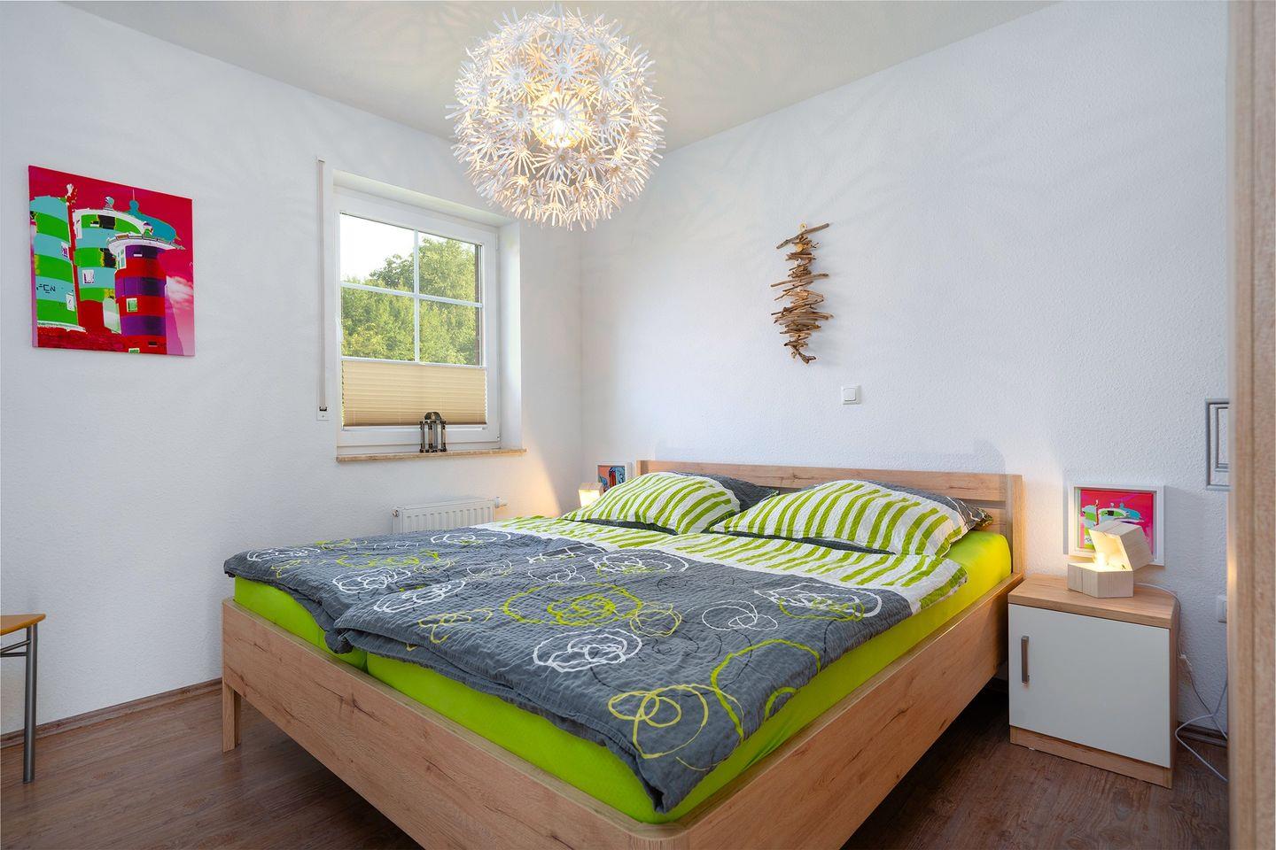 Die 3 Schlafzimmer, davon ein Doppelbett im EG, 1 Doppelbett im OG, sowie zwei Einzelbetten im OG (alle Betten haben die Größe 2m x 0,90m). Im Schlafzimmer mit dem Doppelbett im OG befindet sich ein zweiter Fernseher. Anschlüsse sind in allen Schlafräumen vorhanden.