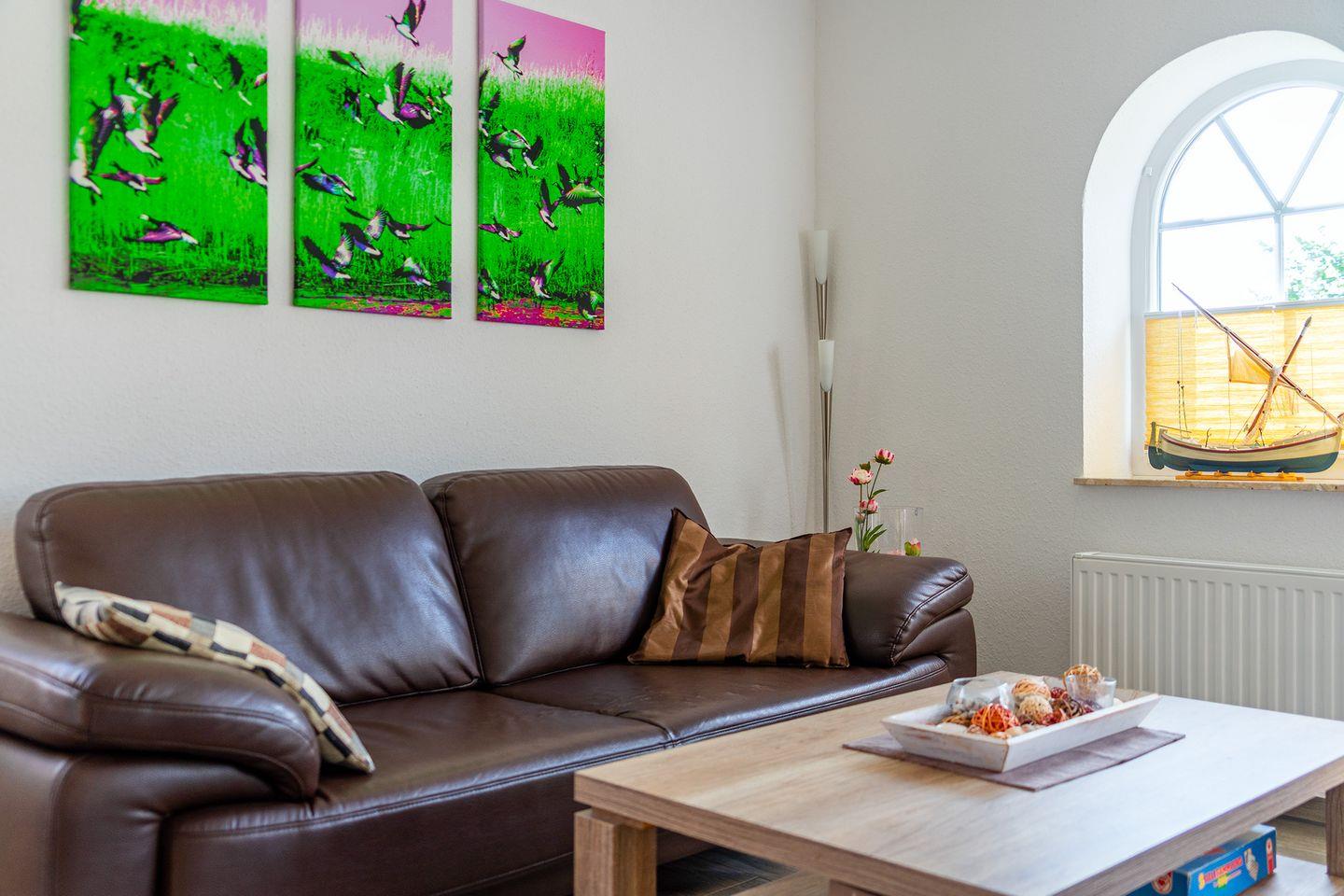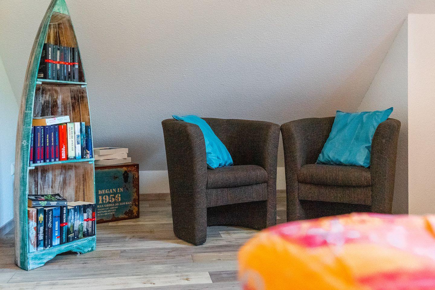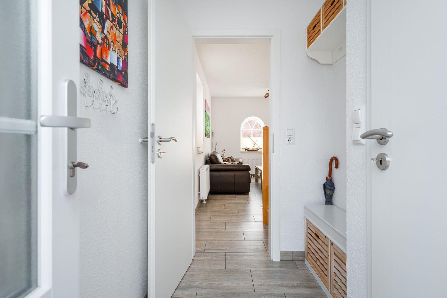 Das Haus ist sehr geschmackvoll und vollständig eingerichtet. Im Erdgeschoss befindet sich der großzügige Wohn-/Essraum (SAT-TV und DVD - einige Filme vorhanden) mit schöner vollausgestatteter Küche inkl. Ceran-Herd, Backofen, Geschirrspüler, Kühlschrank mit Gefrierfach, Kaffeemaschine, Wasserkocher, Eierkocher, Mixer, Kaffeepadmaschine, Radio. Eine Mikrowelle ist nicht vorhanden.