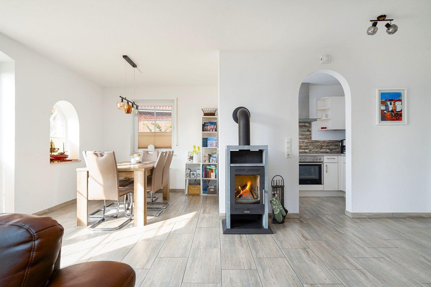 Der Kamin lädt zu gemütlichen Abenden und ruhigen Stunden ein.