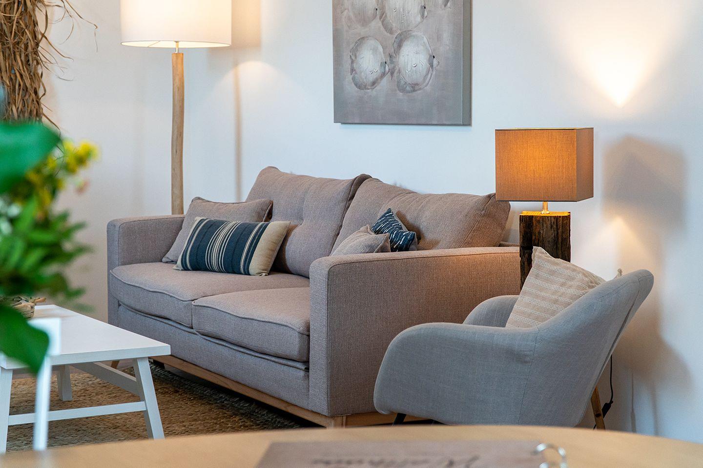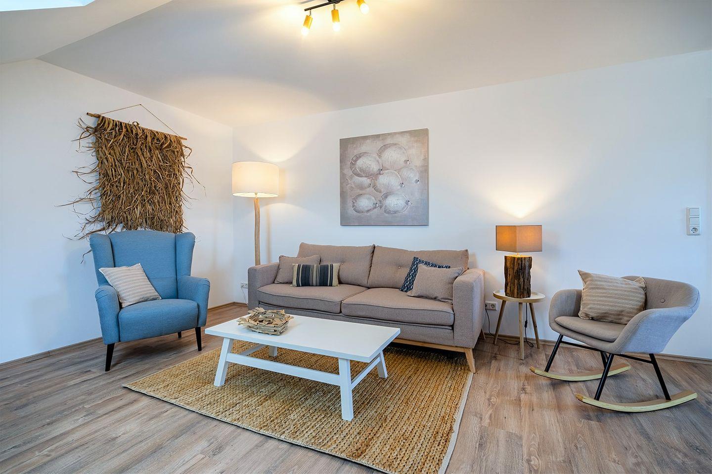 Die Ferienwohnung "Meereszeiten" wurde mit viel Liebe zum Detail ausgestattet und bietet mit einem Schlafzimmern und einer zusätzlichen Schlafcouch im Wohnzimmer Platz für 1-3 Personen.