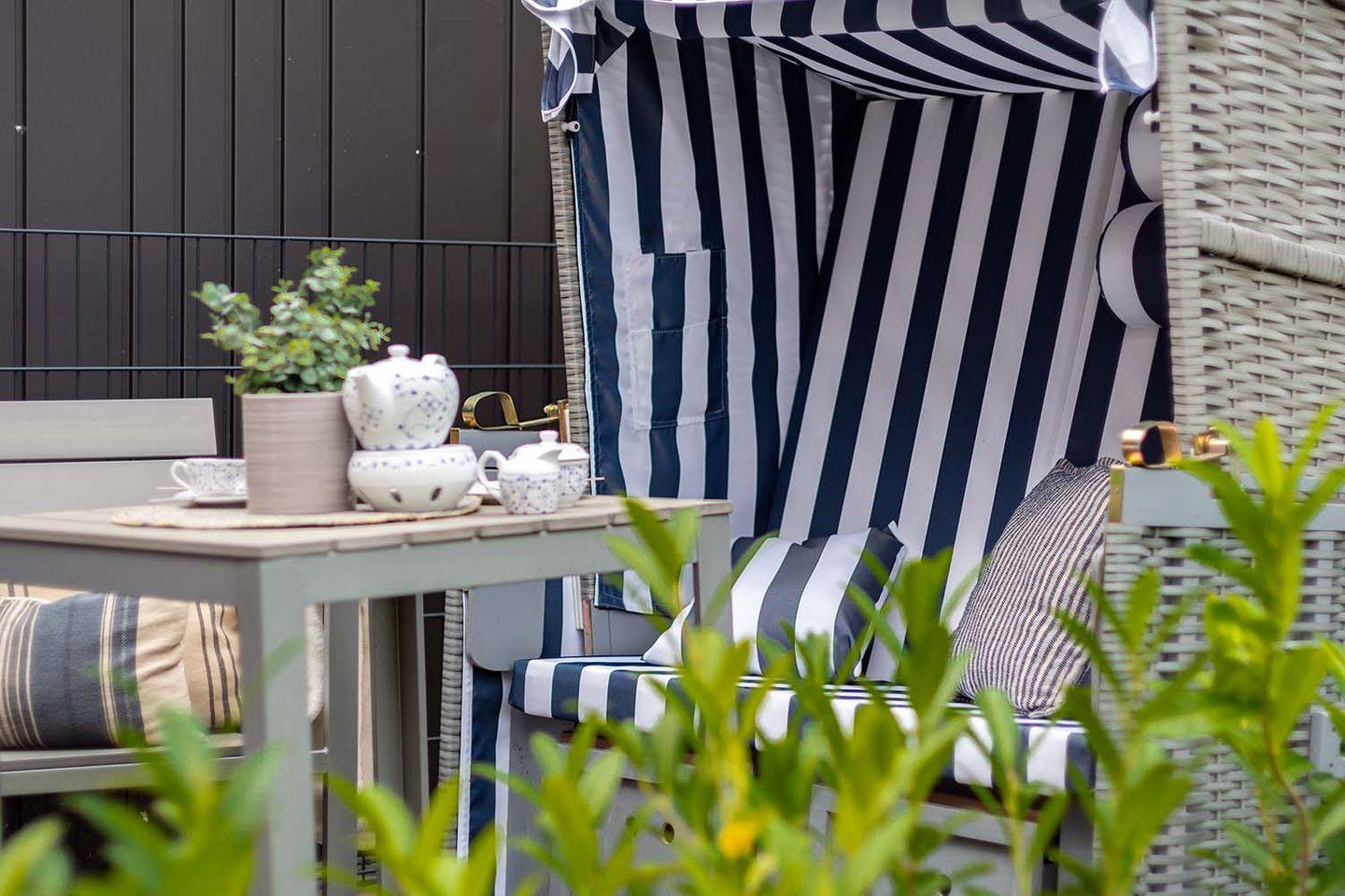 Im vorderen Gartenbereich finden Sie eine kleine Sitzecke (in Nähe des Treppenaufgangs/ separiert vom Garten Watthuus), sodass Sie die Möglichkeit haben draußen zu Essen und die Sonne zu genießen. Freuen Sie sich schon jetzt auf einen tollen Strandkorb.