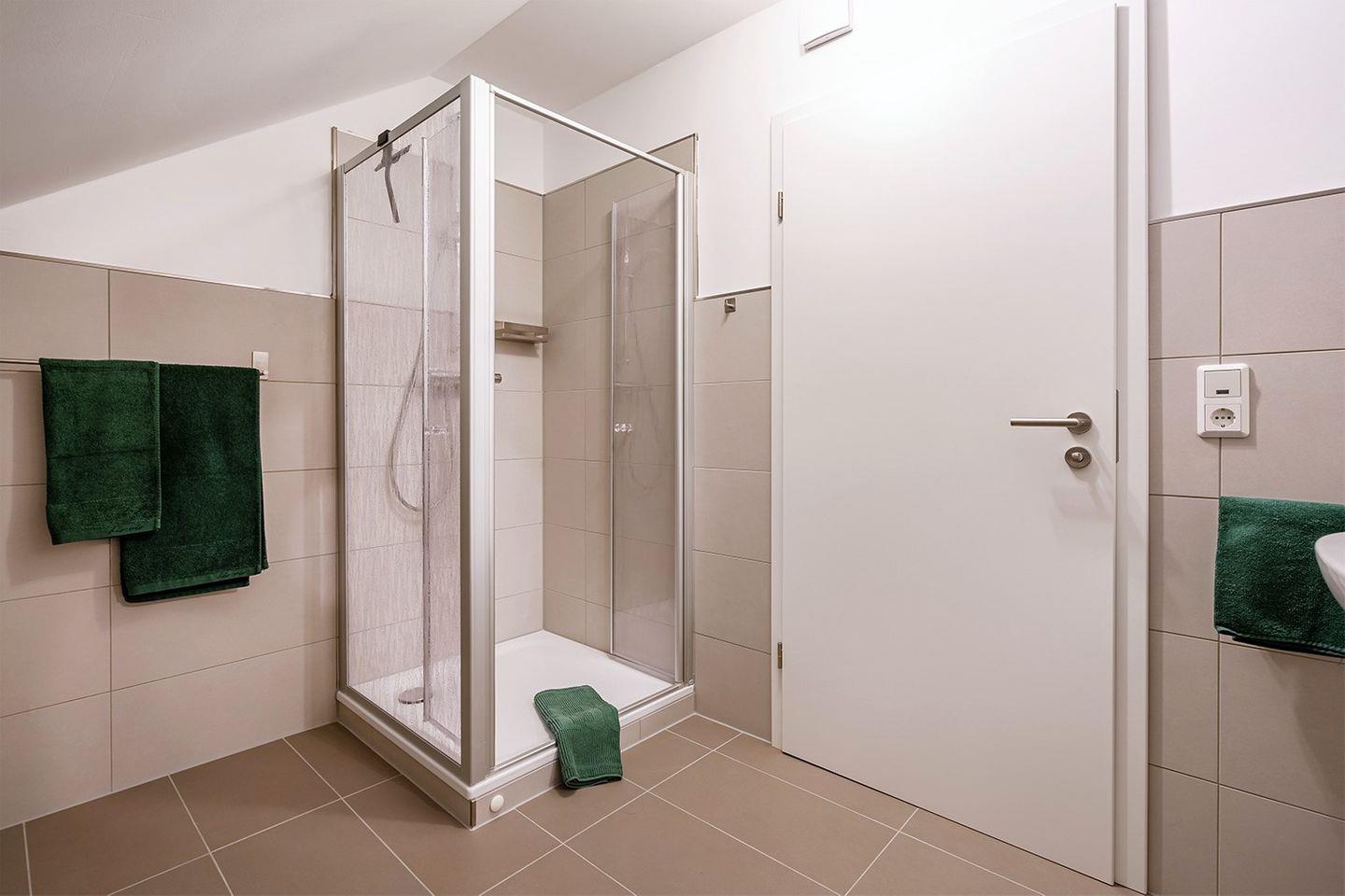 Das große, helle Schlafzimmer im hinteren Bereich der Ferienwohnung bieten Ihnen einen hohen Komfort (Doppelbett 180 x 200 cm). Das schöne, neue Bad ist mit einer Dusche ausgestattet.