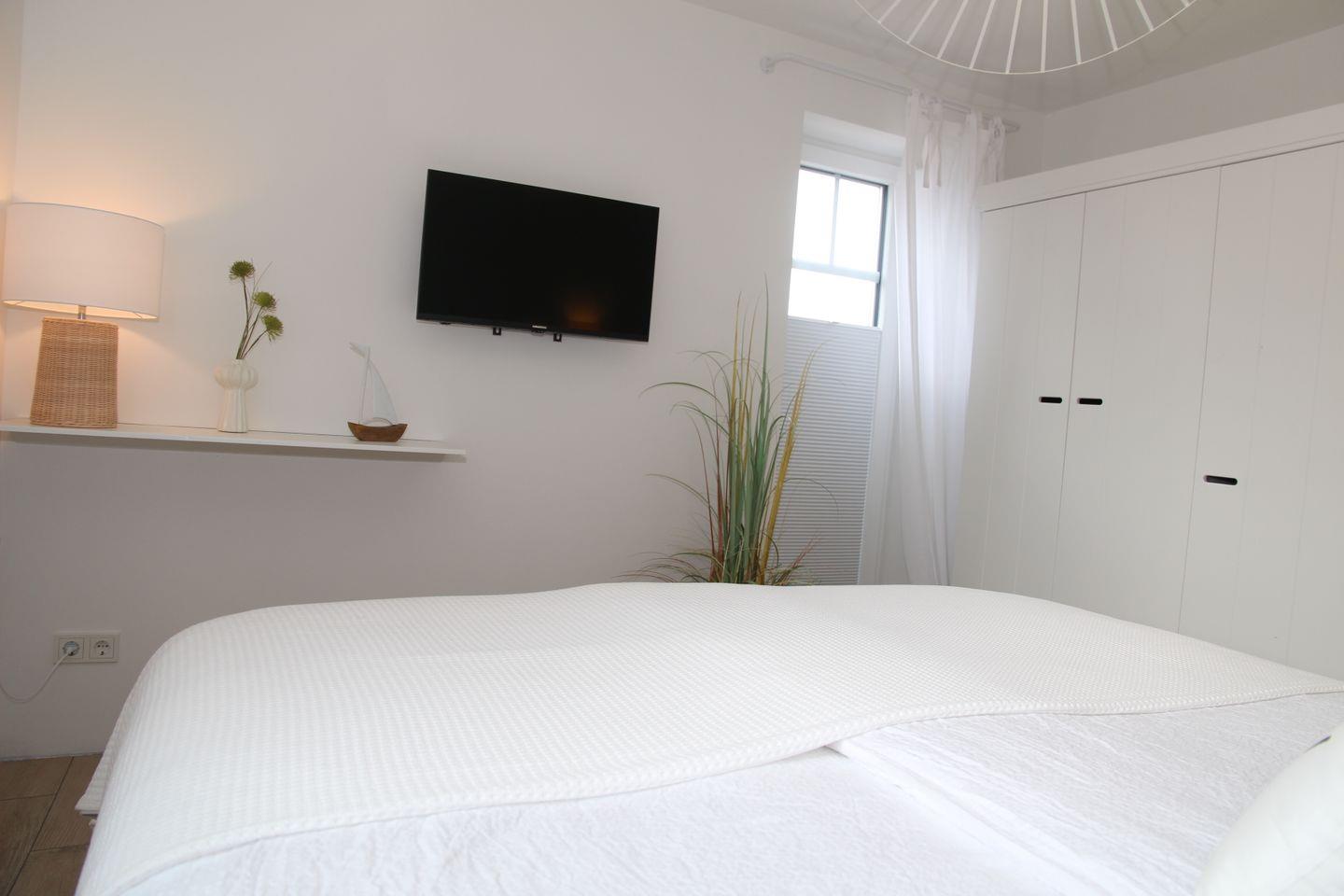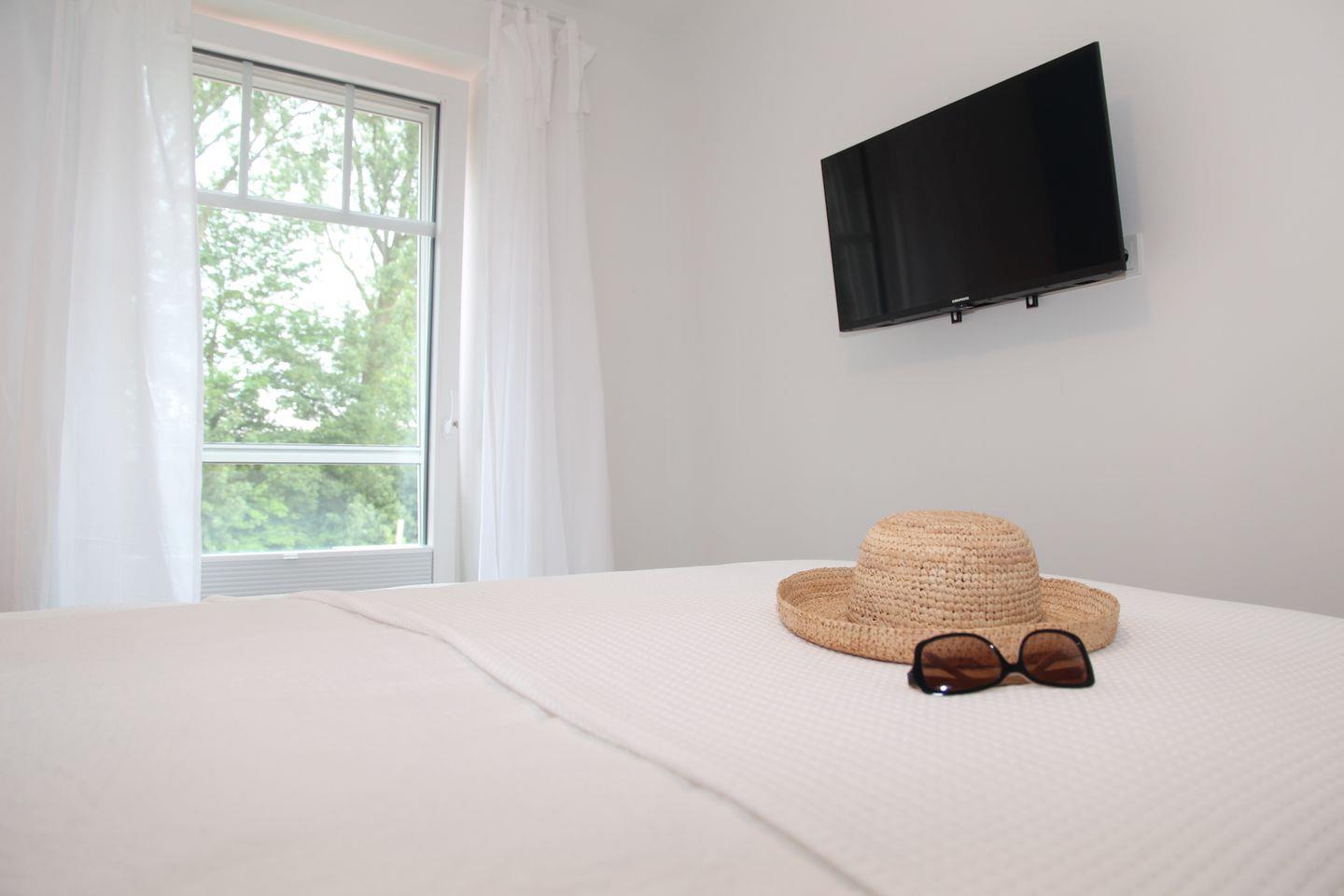 Erholsamen Schlaf finden Sie in den beiden Schlafzimmern, die beide mit bequemen Boxspringbetten mit getrennten Matratzen und durchgehenden Toppern der Firma Swiss Sense (1 x 180 cm, 1x 160 cm Breite) ausgestattet sind. Beide Schlafzimmer lassen sich mit Verdunkelungsplissees abdunkeln. Jedes Schlafzimmer verfügt über einen 32 Zoll-TV. Ausreichend Platz für Ihre Garderobe und persönlichen Dinge bieten Ihnen in jedem Schlafzimmer ein Massivholzkleiderschrank.