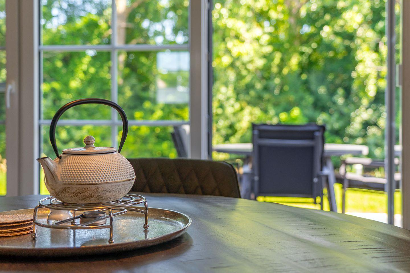 Auf der großen Terrasse stehen Ihnen Gartenmöbel zur Verfügung, wo Sie entspannen und die ruhige Atmosphäre genießen können. Der Garten bietet auch eine Liegewiese und einen privaten Steg mit Bootliegeplatz und toller Sitzmöglichkeit, ideal für Bootsliebhaber und Erkundungen auf dem Wasser. Vor dem Haus Richtung Süden finden Sie auch einen kleinen Strandkorb, ideal um die Sonne in perfekter Ausrichtung genießen zu können.