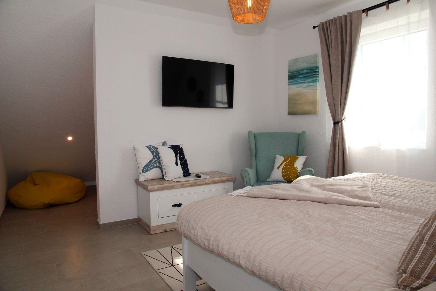 Für zusätzliche Bequemlichkeit sorgt die Fußbodenheizung mit hochwertigem Fliesenboden im ganzen Haus. Bei Bedarf stehen Ihnen auch Waschmaschine, Trockner, Wäscheständer und Bügeleisen zur Verfügung. Kinderbett, Kinderhochstuhl, Buggy und Bollerwagen können bei Bedarf kostenfrei hinzugebucht werden.