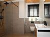 Das Huus Fernleaf bietet insgesamt drei einladende Schlafzimmer, die jeweils mit TV (Zattoo Premium, kostenfrei), Verdunklungsgardinen und hochwertigen Möbeln in geschmackvollen Farben ausgestattet sind. Die wichtigsten Fenster werden demnächst auch mit Fliegengittern versehen. Eines der Schlafzimmer mit Doppelbett befindet sich im Erdgeschoss, die anderen beiden im Obergeschoss, wovon eines zwei Einzelbetten und ein Sofa (auf Anfrage für eine siebte Person ausziehbar, dann ist jedoch der Gang zu einem Bett versperrt) bietet. Darüber hinaus gibt es pro Etage ein Badezimmer, die jeweils mit bodengleichen Duschen, Waschtisch und WC ausgestattet sind, im Erdgeschoss ist zusätzlich ein elektrischer Handtuchheizkörper vorhanden. In beiden Bädern stehen den Gästen Föhns zur Verfügung.
