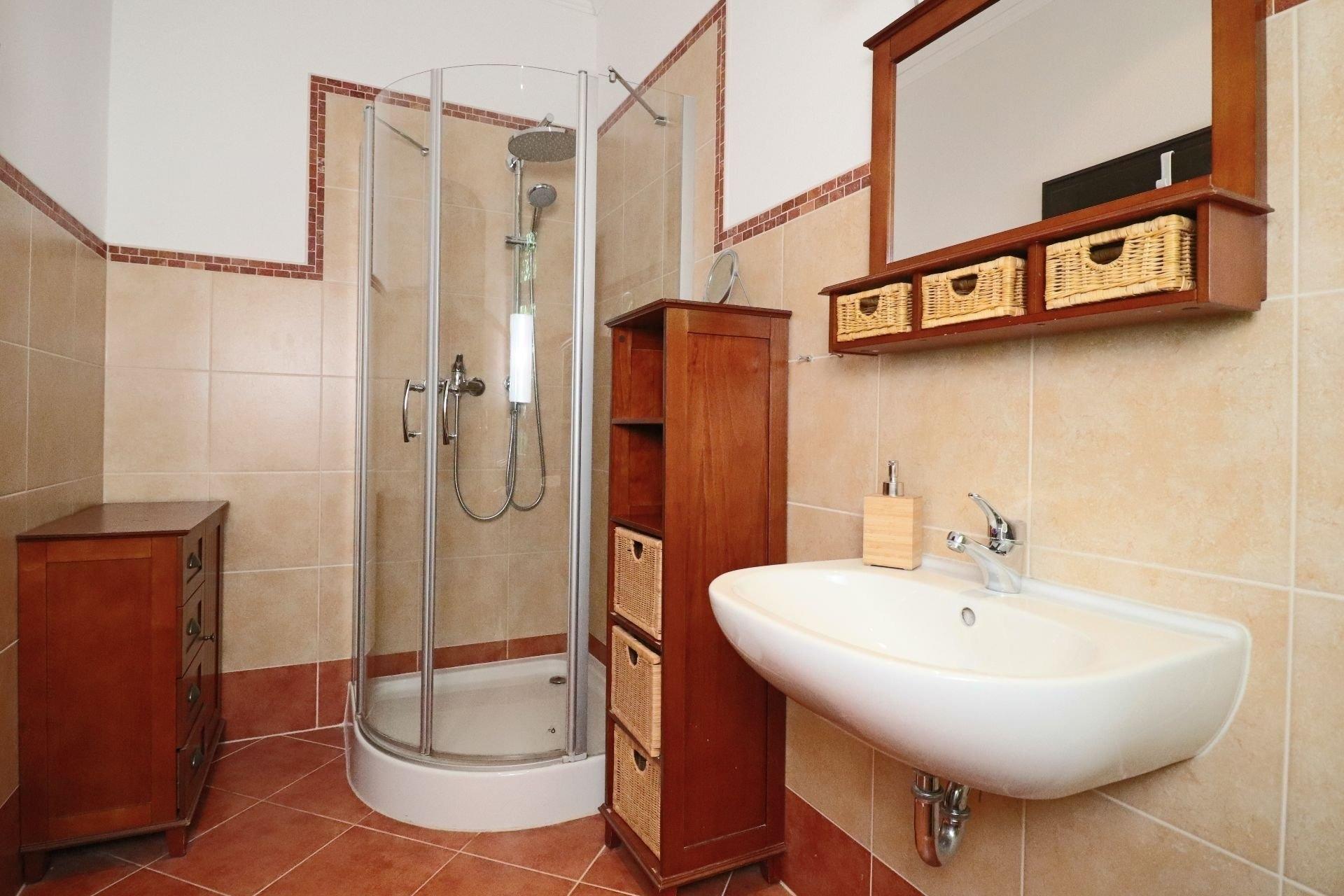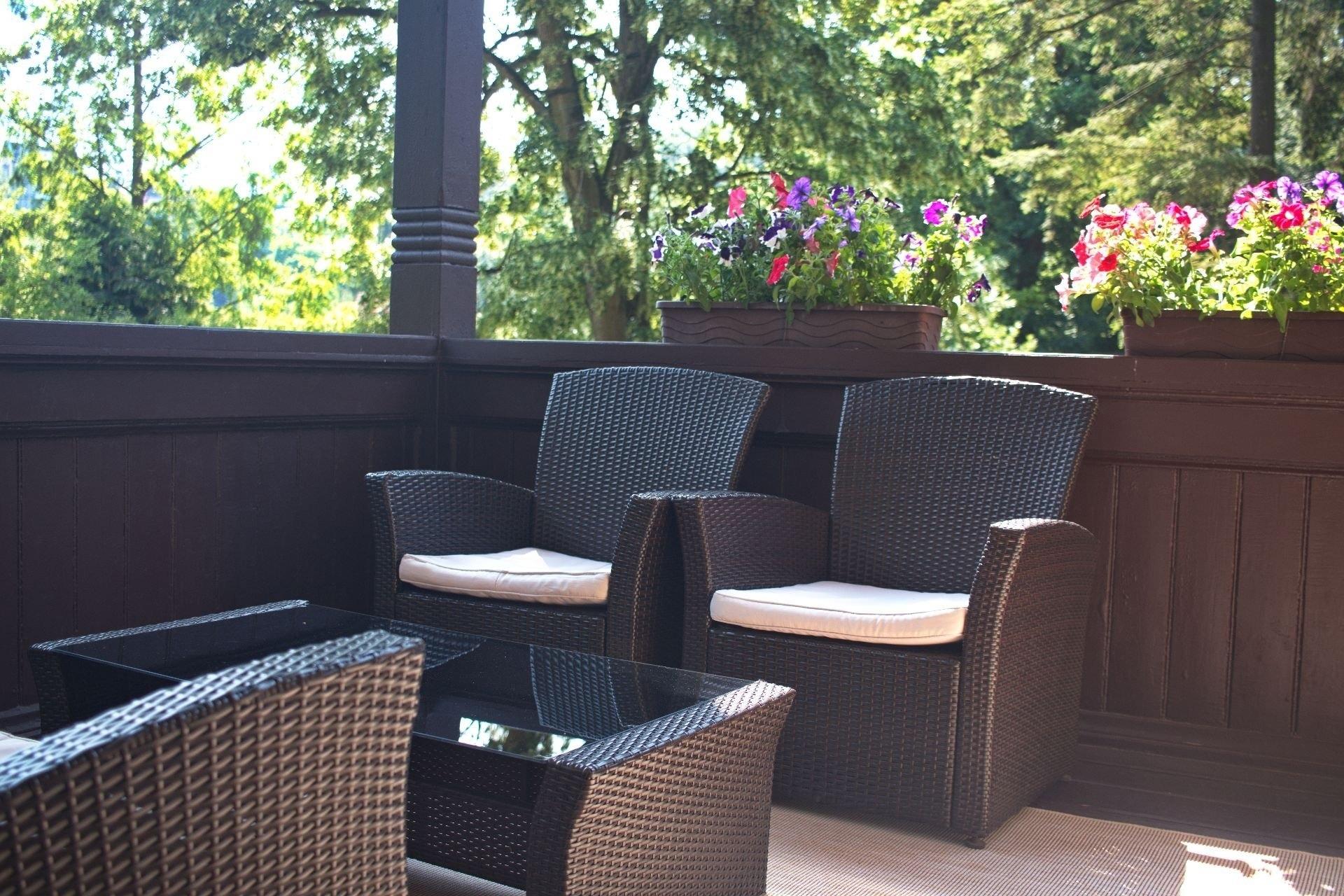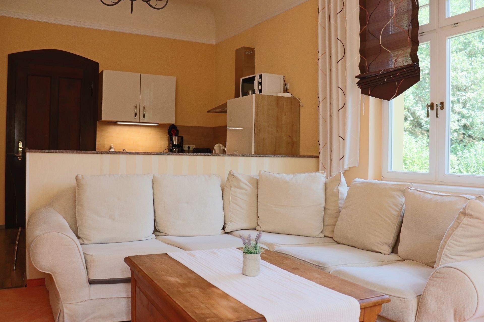 Die Ferienwohnung 1 bietet mit 46 m² großzügig Platz für zwei Personen. Sie verfügt über einen Flurbereich, ein Schlafzimmer mit Doppelbett, ein Badezimmer (m. Fenster), ein gemütliches Wohnzimmer mit großer Eckcouch, in welches abgetrennt der Küchenbereich integriert wurde. Die modern ausgestattete Küche verfügt über Cerankochfeld (4-Feld), Kühl-/ Gefrierkombination, Spülmaschine, Mikrowelle, Toaster, Kaffeemaschine und Wasserkocher sowie einem separaten Esstisch. Der große Balkon mit 14 m² lädt dazu ein, die Ruhe und den Blick ins Grüne zu genießen. Eine im hauseigenen Garten befindliche Terrasse für die Gäste des Hauses lädt zudem zum geselligen Beisammensitzen mit Blick ins Grüne sowie zum Grillen ein. Grillzubehör stellen wir Ihnen auf Anfrage gerne bereit!