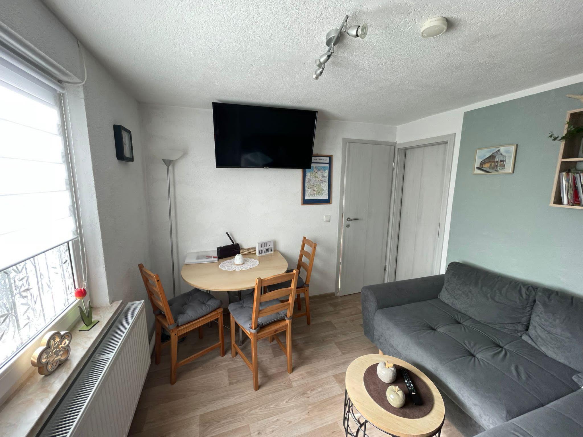 We offer you a cosy, bright living and dining room with flat screen TV and radio. ( completely renovated in 2022 ). It is also equipped with a couch and dining area. The bedroom is equipped with a comfortable double bed 180x200cm (slatted frame height adjustable) and a practical wardrobe The second bedroom is adjacent to the first and accessible through this, it is equipped with a new single bed (90x200cm). Storage space is also available. . The kitchen is equipped with a kitchenette with dishwasher and all typical kitchen appliances. The shower area in the bathroom is spacious with rain shower and at ground level. The bathroom was completely renovated in 2022 and equipped with underfloor heating.