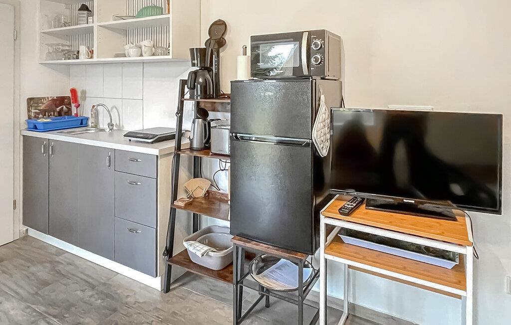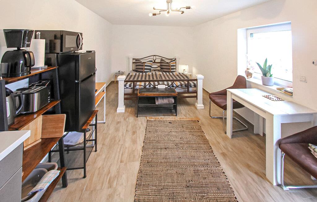Denne 1-værelses ferielejlighed ligger separat i stueetagen i et tidligere dobbelthus på en 10.000 kvm stor grund i udkanten. Ejendommen byder på masser af plads til sport og leg og er velegnet som et løb for kæledyr. Fra ejendommen har man udsigt til det fri, hvilket gør det muligt at iagttage de lokale havørne samt vilde dyr som rådyr og ræve.Hele huset er totalrenoveret og nyindrettet med store omkostninger i 2021. Den cirka 30 kvm store 1-værelses lejlighed til 2 personer har kombineret opholds-, sove- og spiseplads (dobbeltseng, spiseplads, fladskærms-tv), åbent tekøkken (kogeplade, køleskab med fryser, mikroovn, diverse køkkenmaskiner) samt badeværelse med brus/toilet. Boligen opvarmes med centralvarme. En barneseng og høj stol kan stilles til rådighed for små børn. Internet (W-Lan) er også tilgængelig. På udearealet har hver boligenhed en møbleret terrasse eller et udendørs opholdsområde med grillfaciliteter. Der er også liggestole og parkeringspladser Den samlede pris inkluderer slutrengøring, sengelinned, håndklæder samt vand- og elforbrug Husdyr er tilladt i denne ejendom. Ejendommen er fuldstændig indhegnet. Wredenhagen er en landsby i et naturskønt område i det sydlige Mecklenburgske sødistrikt på grænsen til Brandenburg. De små byer Röbel an der Müritz og Wittstock ligger hver omkring 15 km væk. Elde-floden løber gennem byen til Mönchsee, et naturreservat, hvor blandt andet havørnen er hjemmehørende. Søen er ikke en badesø på grund af dens sumpede kystområder. Glambecksee, 7 km væk, er dog perfekt til dette, da den har fremragende vandkvalitet. Et par kilometer syd for statsgrænsen strækker et enormt skovområde sig helt til Wittstock.Wredenhagen er kendt for sit slot, der kan dateres tilbage til det 13. århundrede. Engang magtsæde for fyrster, huser det nu en folkeskole, et museum med en udstilling og et 300 år gammelt kobberbøgetræ. Der er også en landsbybutik i landsbyen til små ærinder. Der skulle dog foretages større indkøb i de ovenfor nævnte små byer. Takket være livlig klubaktivitet finder der adskillige arrangementer sted i byen hvert år.