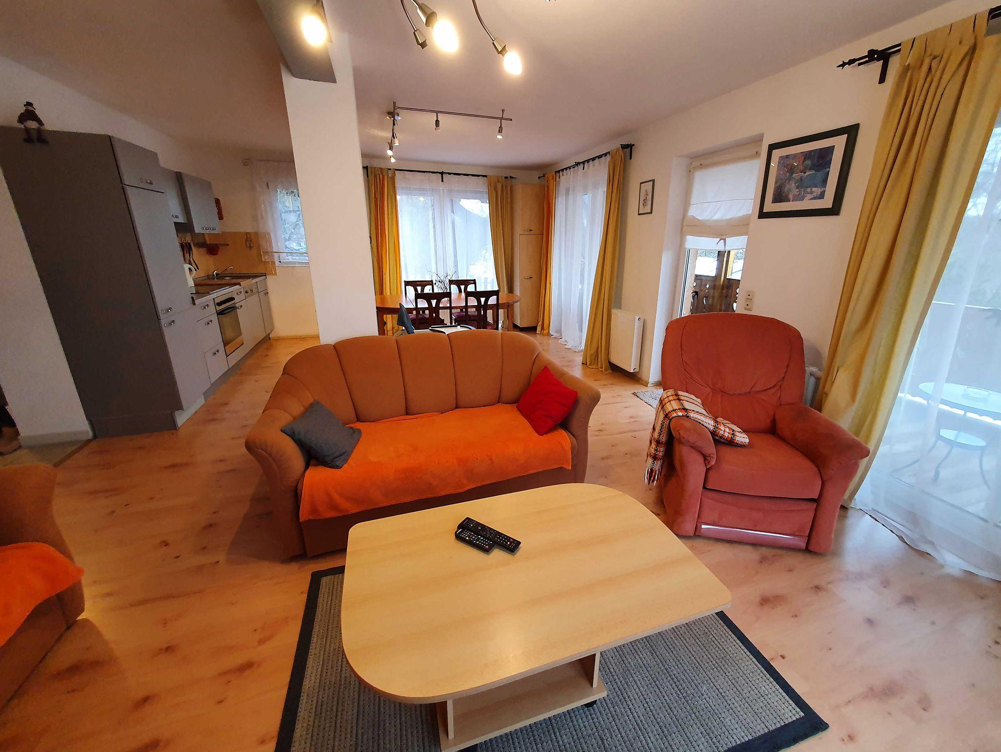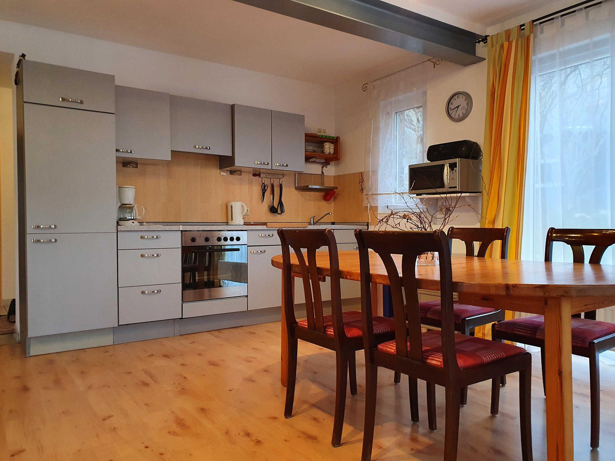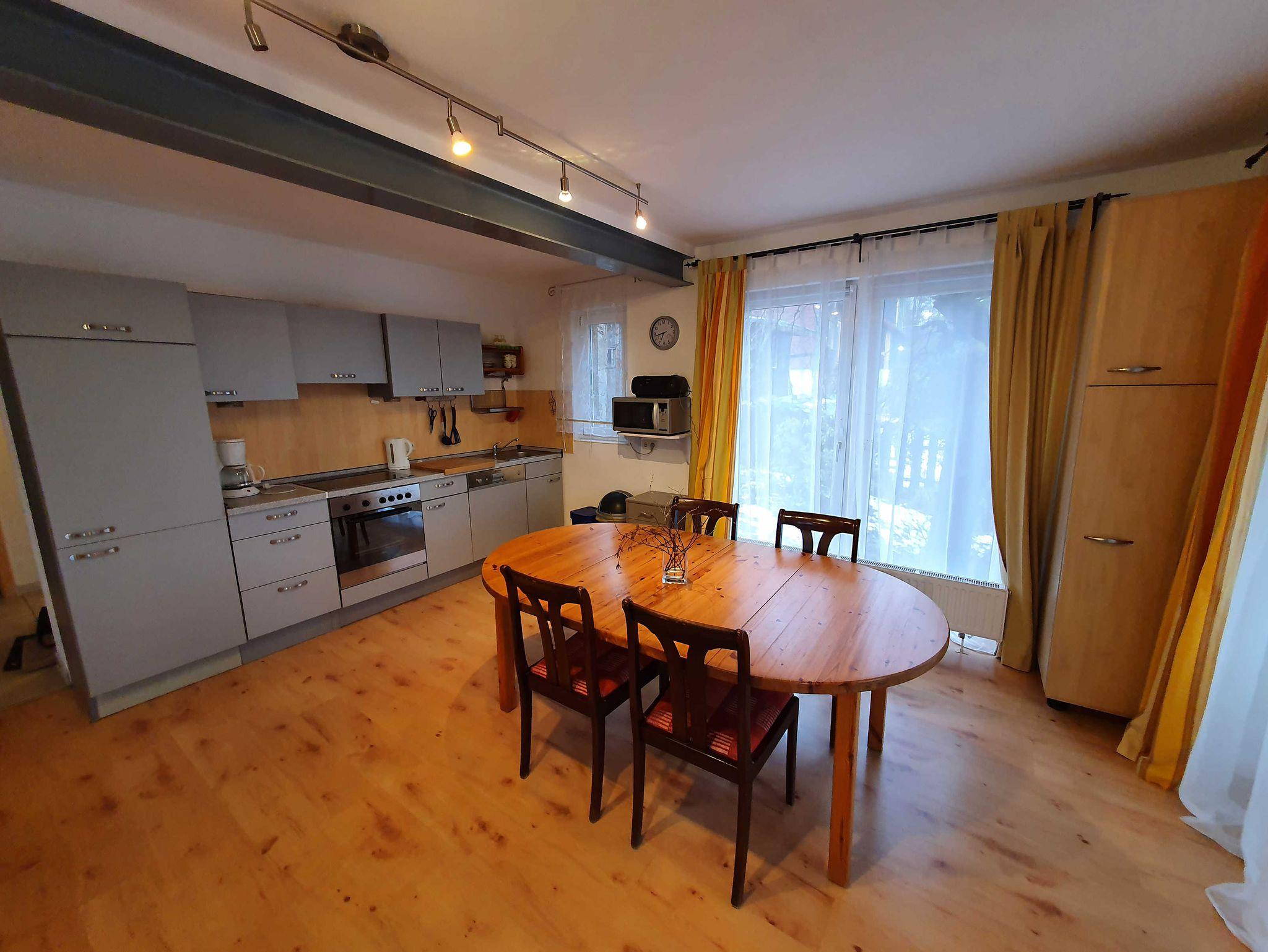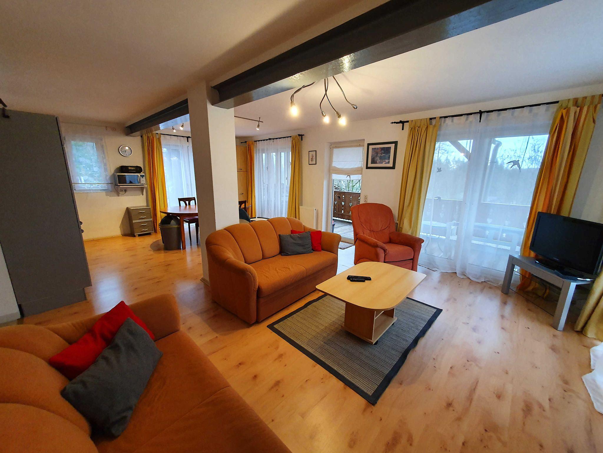 Die Ferienwohnung „Haus Anna“ bietet Ihnen Komfort für 4 Personen auf ca. 80 qm. Sie wohnen auf der gesamten unteren Etage. Zur Wohnung gehören zwei Schlafzimmer, ein Wohnzimmer mit offener Küche, eine Sauna und großzügiger Balkon. In den zwei Schlafzimmern finden je zwei Personen Platz. Zwei weitere Aufbettungen sind auf den beiden Schlafsofas im Wohnzimmer möglich.