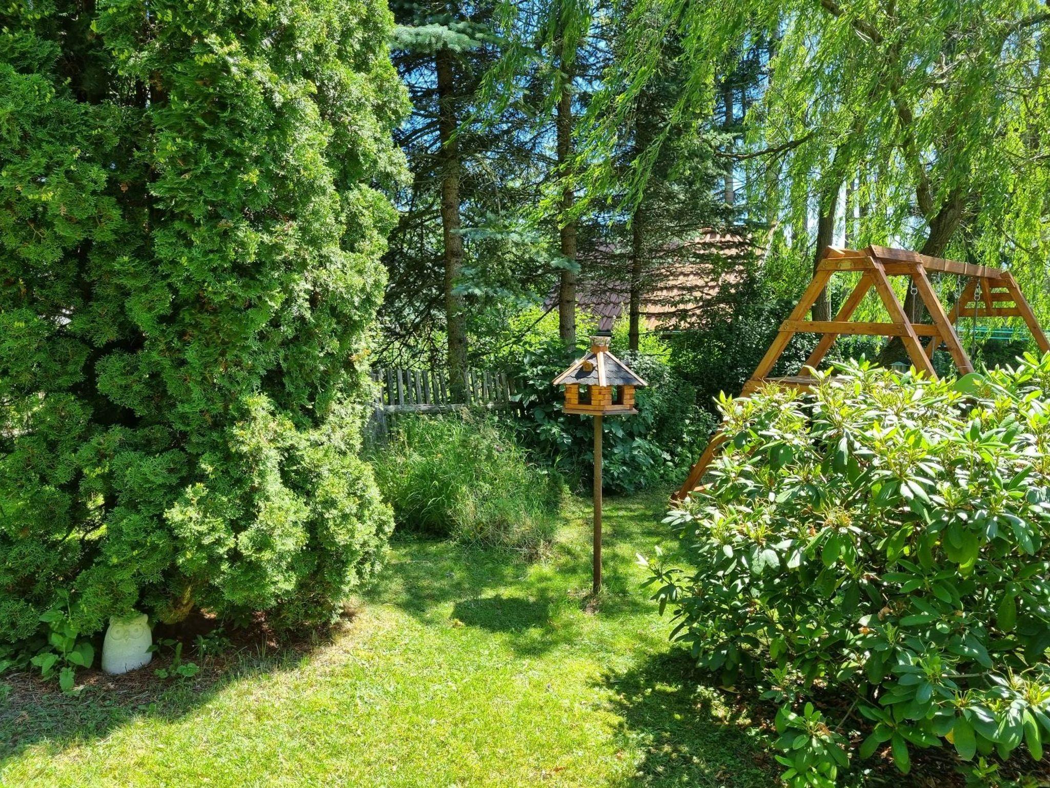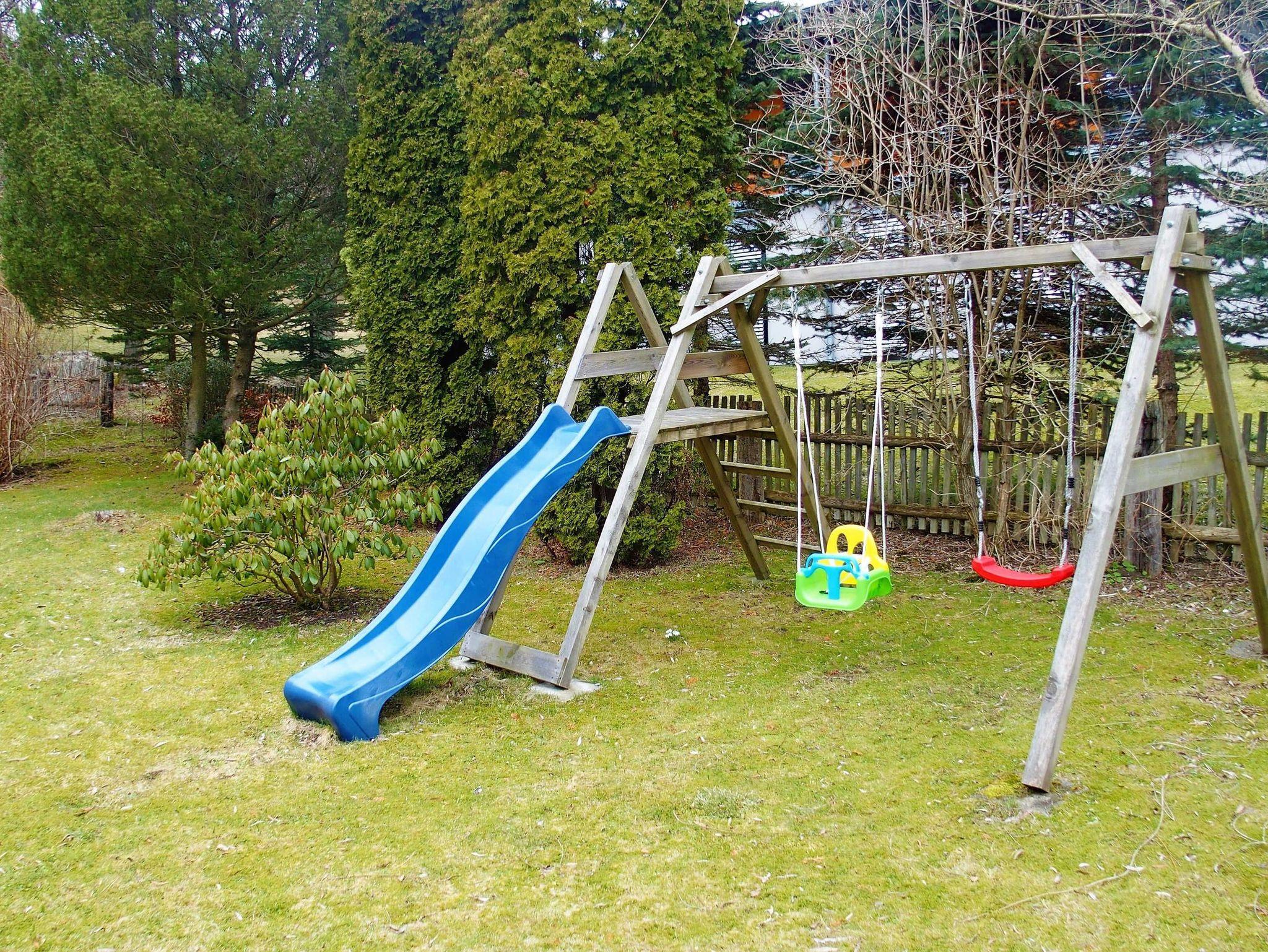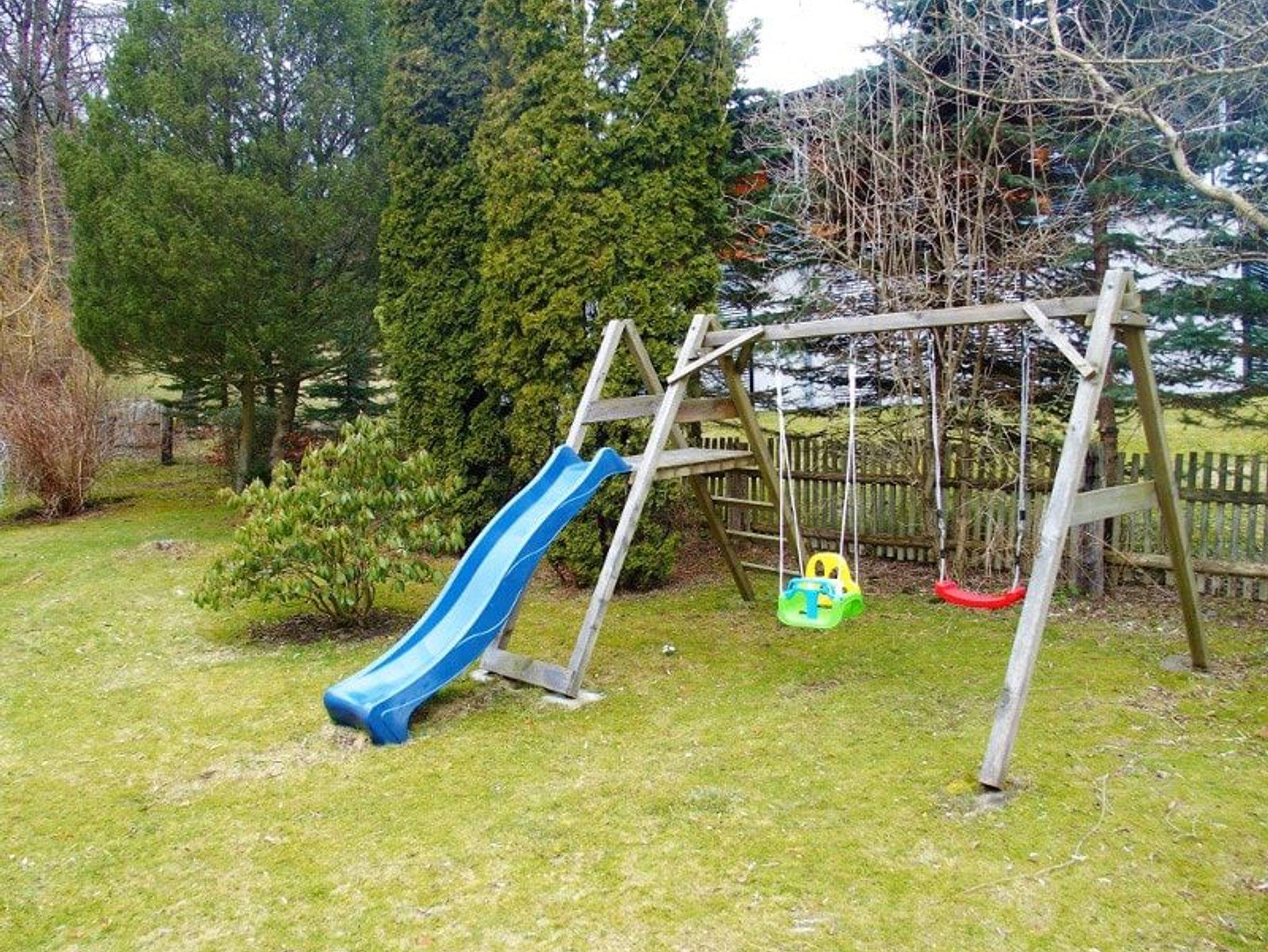 Draußen wartet unser schöner, zum Teil naturbelassener Garten auf Sie. Entspannen Sie auf der Sonnenterrasse mit Grill, während die Kinder sich auf der Schaukel, der Rutsche oder einfach auf der großen Wiese austoben.