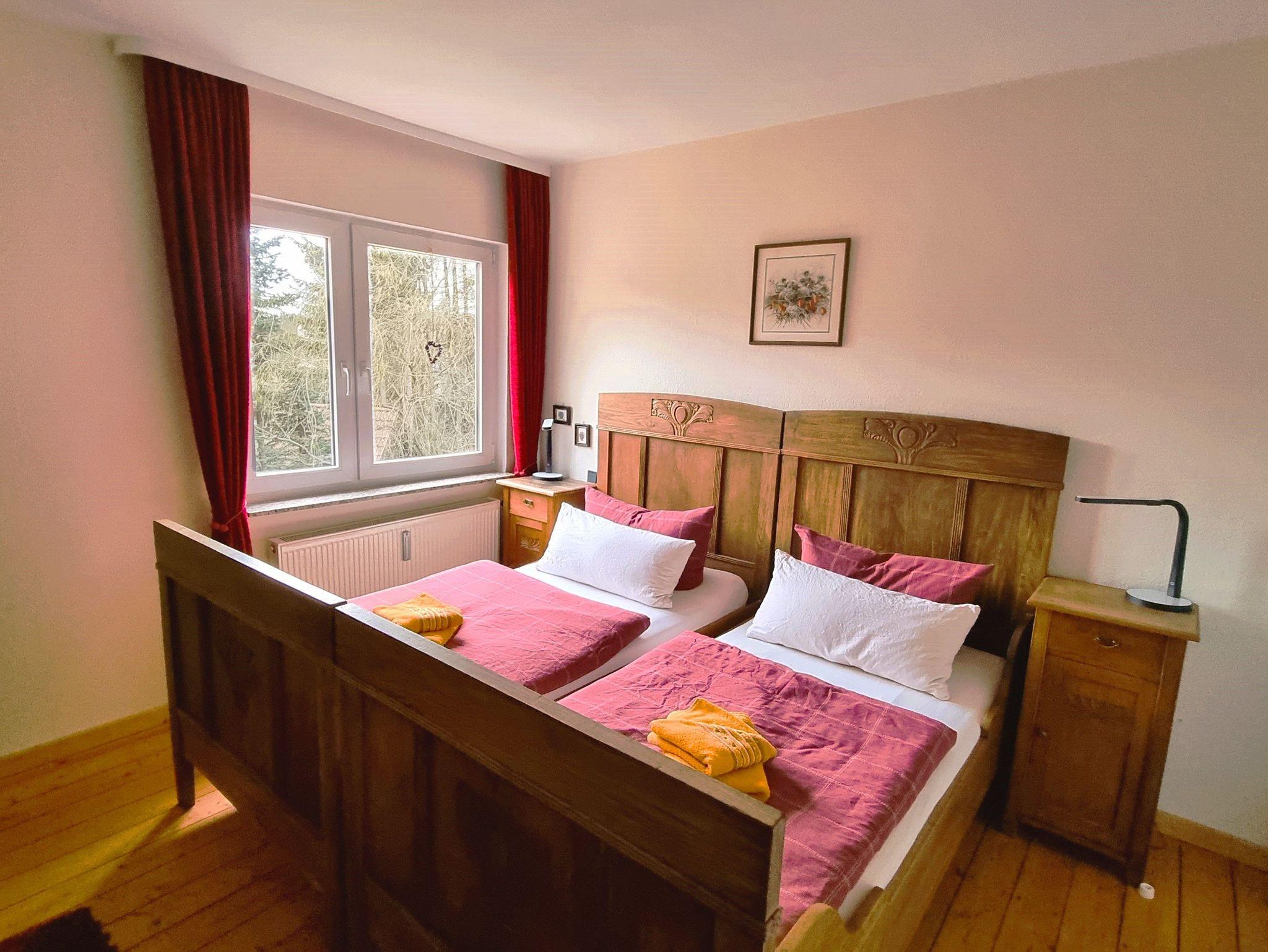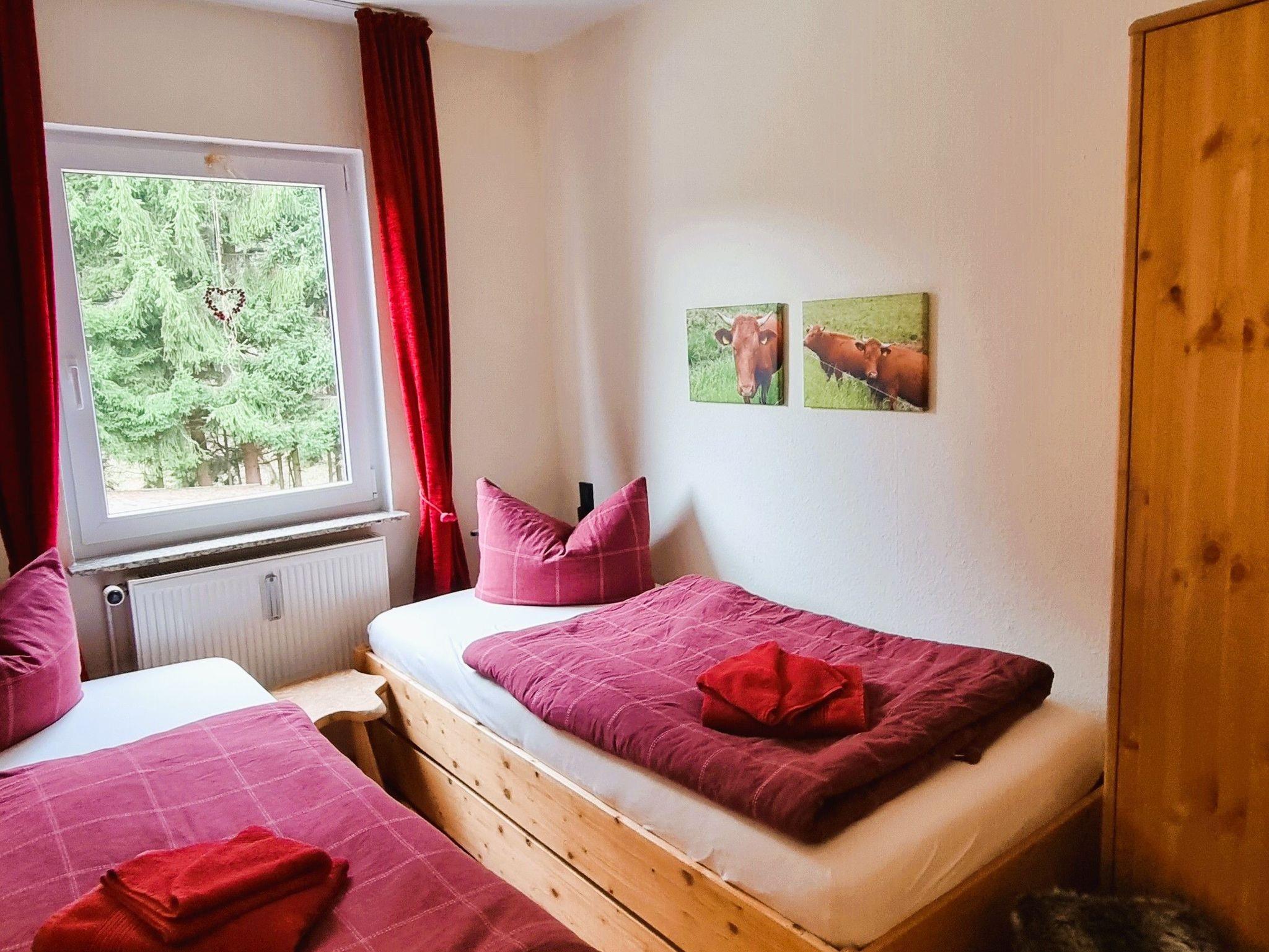 Idyllisch am Waldrand gelegen bietet Ihnen unsere Ferienwohnung BELVIDERE (im 1. OG) einen herrlichen Panoramablick, ein wirkliches bel videre (abgewandelt aus dem Lateinischen) über Elend und auf die kleinste Holzkirche Deutschlands.