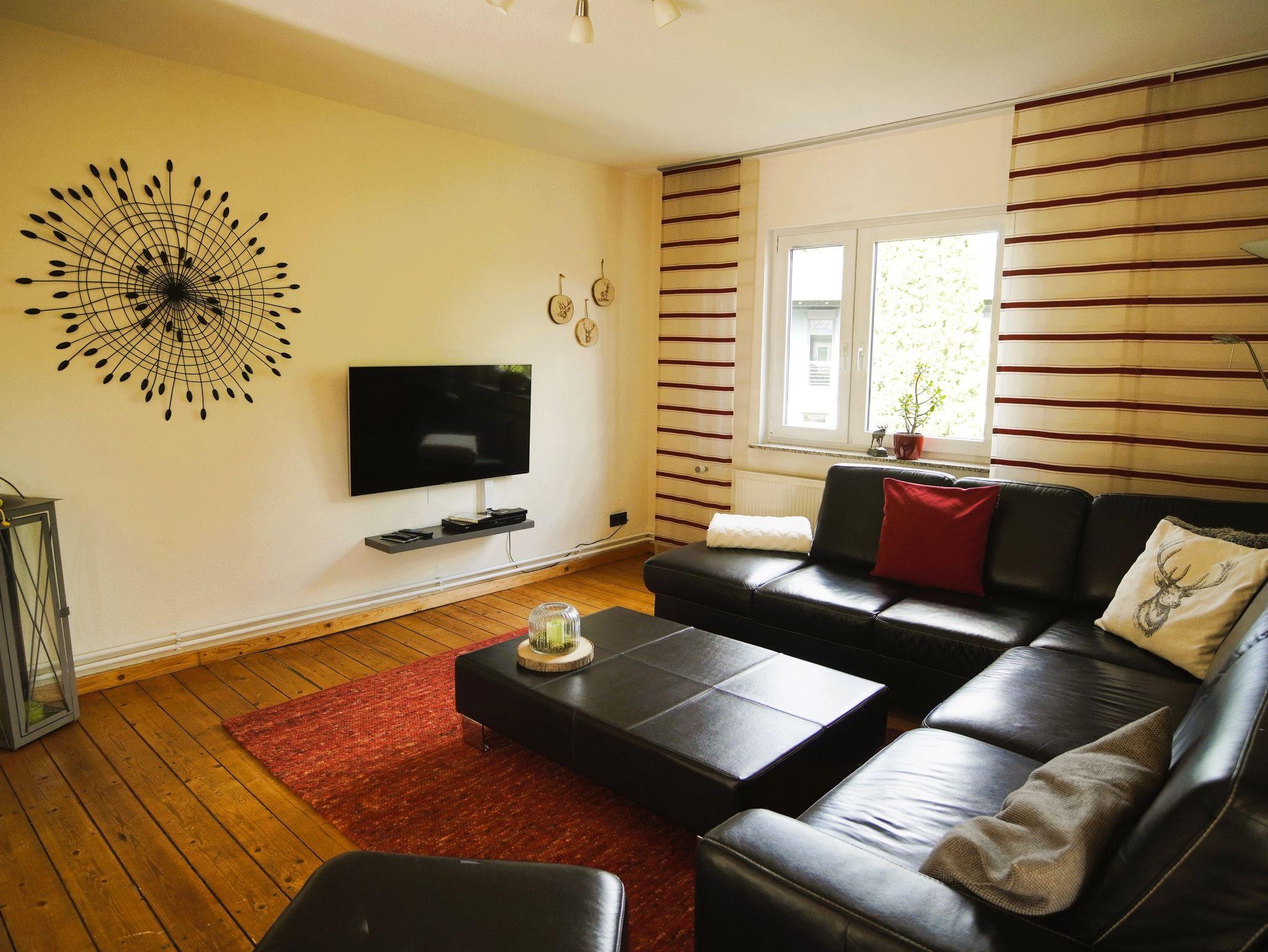 Im stilvollen Wohnzimmer mit der einladenden Ledersitzlandschaft und Smart-TV können Sie entspannte Abende genießen.