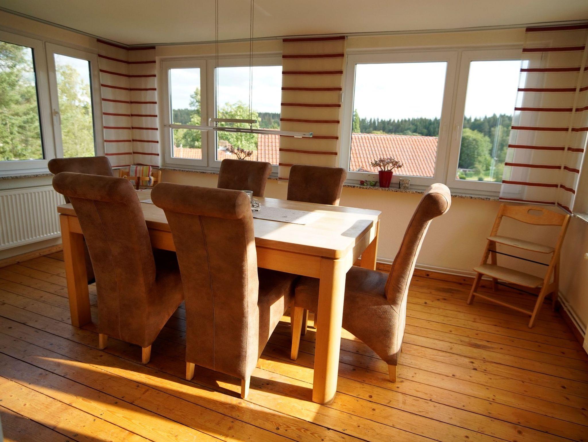 Die offene Küche mit Kochinsel und Induktionsherd verfügt über alle Extras, die es braucht, um das gemeinschaftliche Kochen zu einem echten Vergnügen werden zu lassen. Und im lichtdurchfluteten Esszimmer genießen Sie nicht nur Ihr Essen am Massivholztisch sondern auch den traumhaften Blick auf die Wälder und den kleinen Ort.
