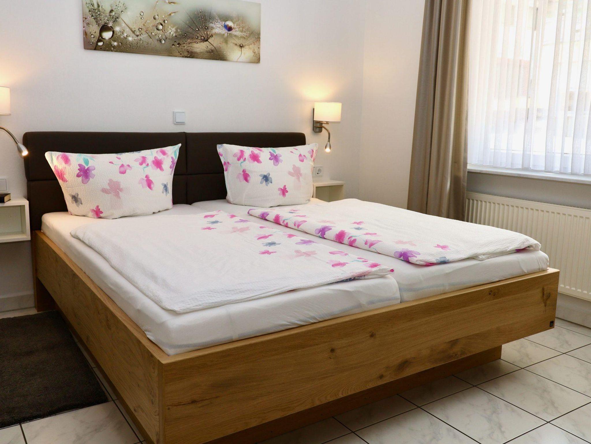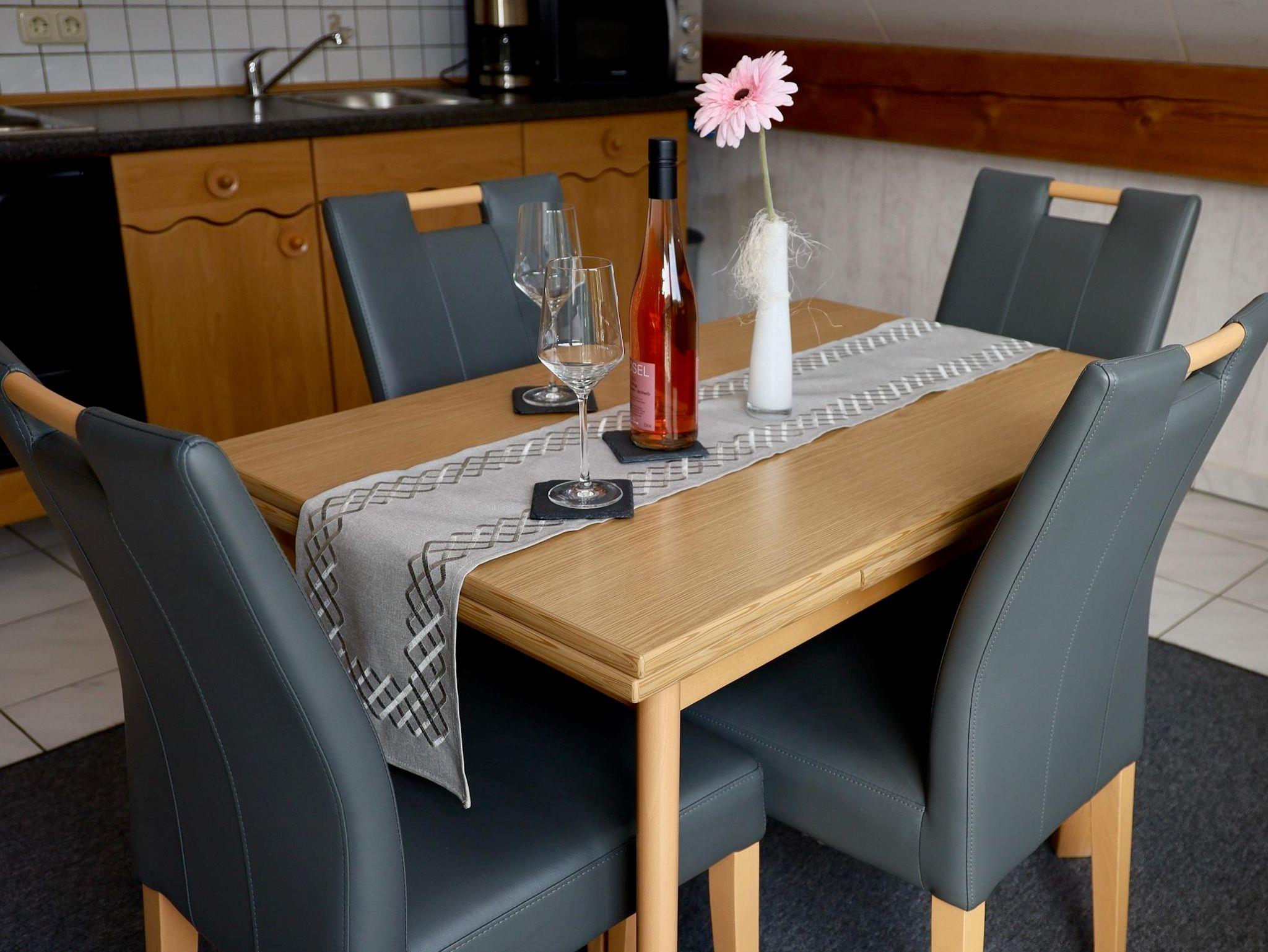 Unsere geschmackvoll in gehobenem Ambiente eingerichtete Ferienwohnung mit Balkon u. Moselblick verfügt über eine schöne Wohnküche, Wohnzimmer, 2 Doppel-Schlafzimmer, Bad mit Dusche/WC,Fön, 85 qm, Telefon, SAT-TV, kostenneutrale WLAN-Nutzung. Bettwäsche und Handtücher sind vorhanden, Brötchenservice, Weinprobe.