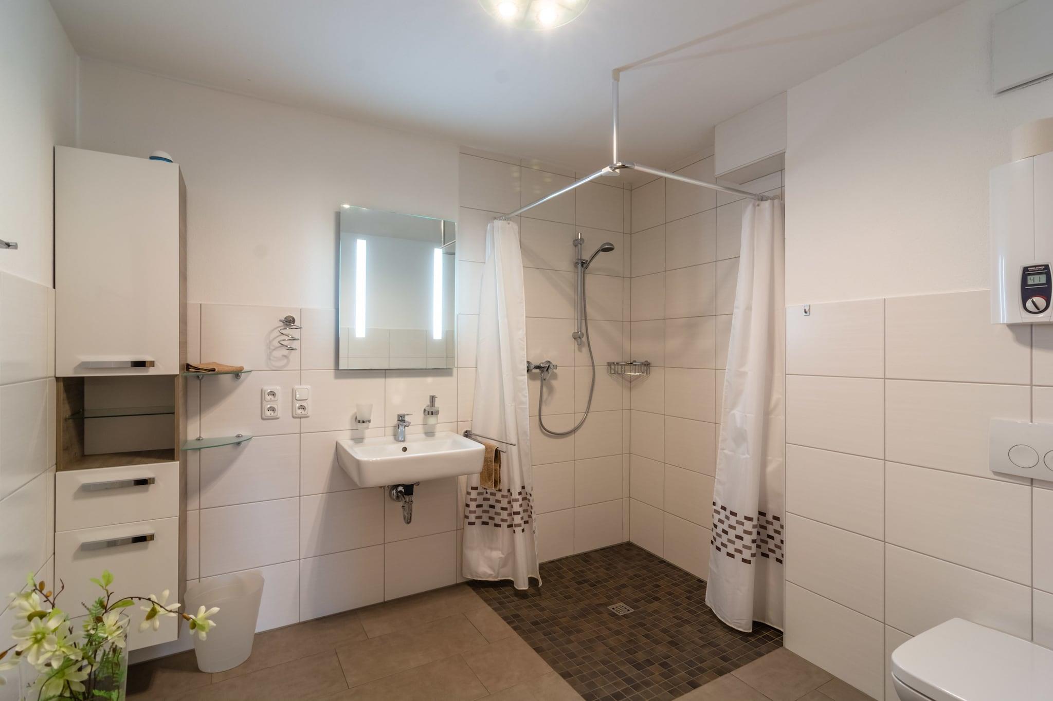 Dette indbydende 2-værelses feriehus i Eifel-regionen er et fredfyldt tilflugtssted for familier eller små grupper på op til 6 gæster, der tilbyder komfort, tilgængelighed og nærhed til naturen. Beliggende nær den vulkanske sø Pulvermaar (3 km), er den perfekt til svømning, vandreture og cykeleventyr. Hjemmet er omgivet af naturskønne stier som Maare-Mosel-cykelruten og Eifelsteig vandrestier, med nem adgang til Daun, Manderscheid, Mosel-floden og Nürburgring-kredsløbet. Indvendigt byder huset på et moderne køkken, entre og en hyggelig stue/spisestue med en dobbelt sovesofa. Begge soveværelser har tilhørende badeværelser, hvoraf det ene er barrierefrit, og alle døre er 1,0 m brede, hvilket sikrer tilgængelighed. Familier vil sætte pris på børnesengen, højstolen og udendørs legeredskaber, herunder en sandkasse i den møblerede have. Den private terrasse tilbyder et fredeligt sted at slappe af og nyde det omkringliggende grønne område. Med gratis parkering, cykelopbevaring og gennemtænkte faciliteter er dette hjem ideelt til et foryngende ophold i hjertet af Vulkaneifel.