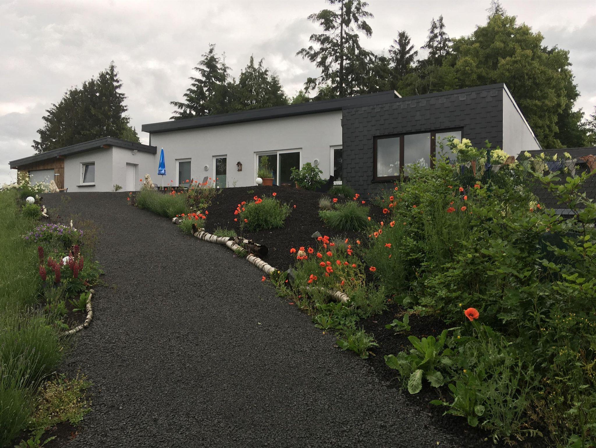 Neu erbautes barrierefreies Ferienhaus mit großer, sonniger Entspannungsterrasse. Ruhe und Nähe zur Natur im Herzen der Vulkaneifel, in Ortsrandlage und direkt am Ausgangspunkt der ausgewiesenen Eifel-Wanderwege. Der Maare Mosel Radweg, Pulvermaar, Natur- und Geopark Vulkaneifel sowie das unter Naturschutz stehende Trockenmoor-Gebiet Mürmes liegen direkt vor der Haustür und sind innerhalb kurzer Zeit zu erreichen. Ein nahe gelegenes (20 Minuten mit dem Auto) Ausflugsziel für Motorsportfans ist der Nürburgring.