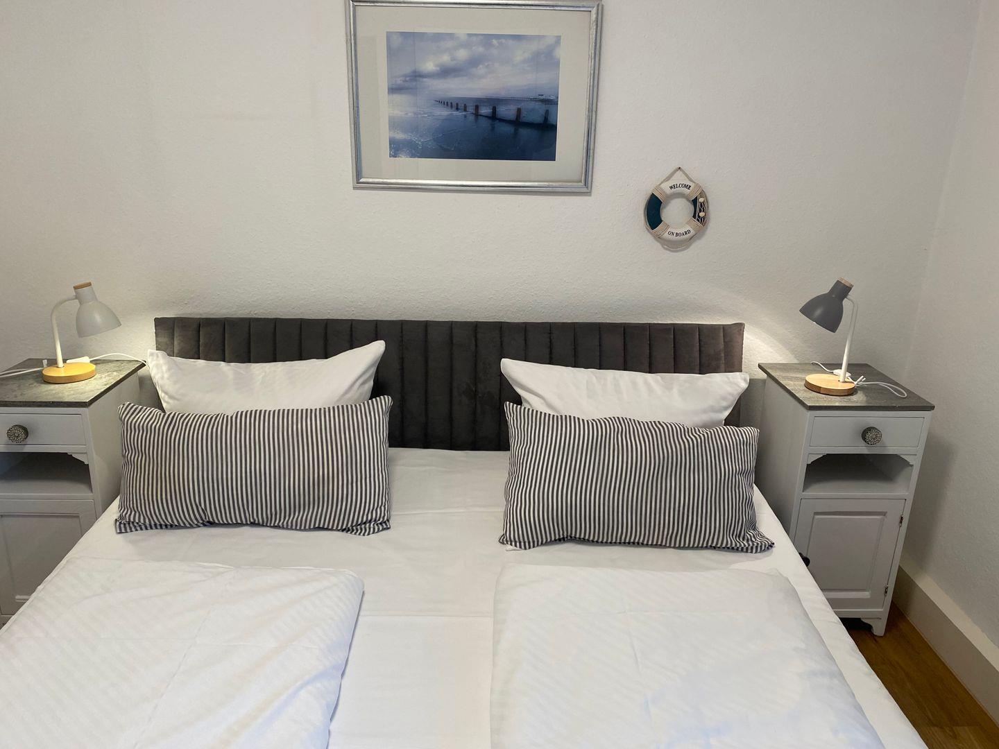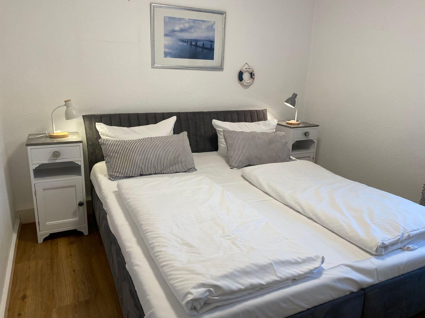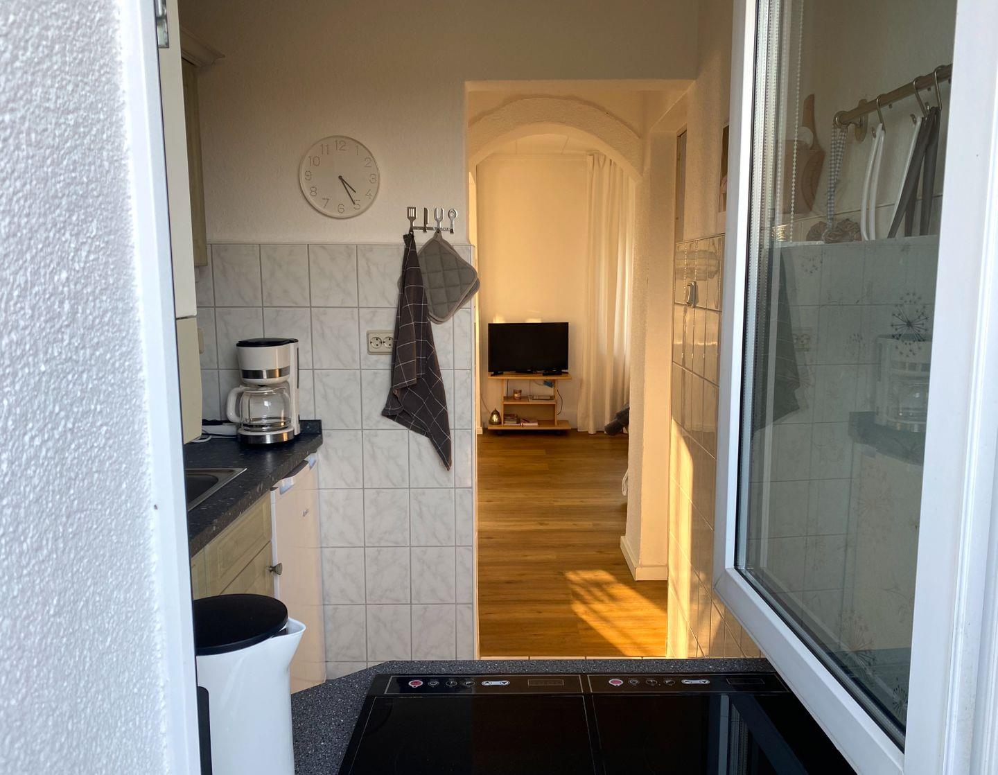 Die kompakte Küche ist mit einer Küchenzeile, zwei Induktionskochplatten und allem notwendigen Zubehör ausgestattet – ideal, um sich während Ihres Aufenthalts selbst zu versorgen. Das Schlafzimmer mit Doppelbett sorgt für erholsame Nächte, während das Badezimmer mit Dusche, WC und Waschbecken sowie ein zusätzliches Gäste-WC für zusätzlichen Komfort sorgen.