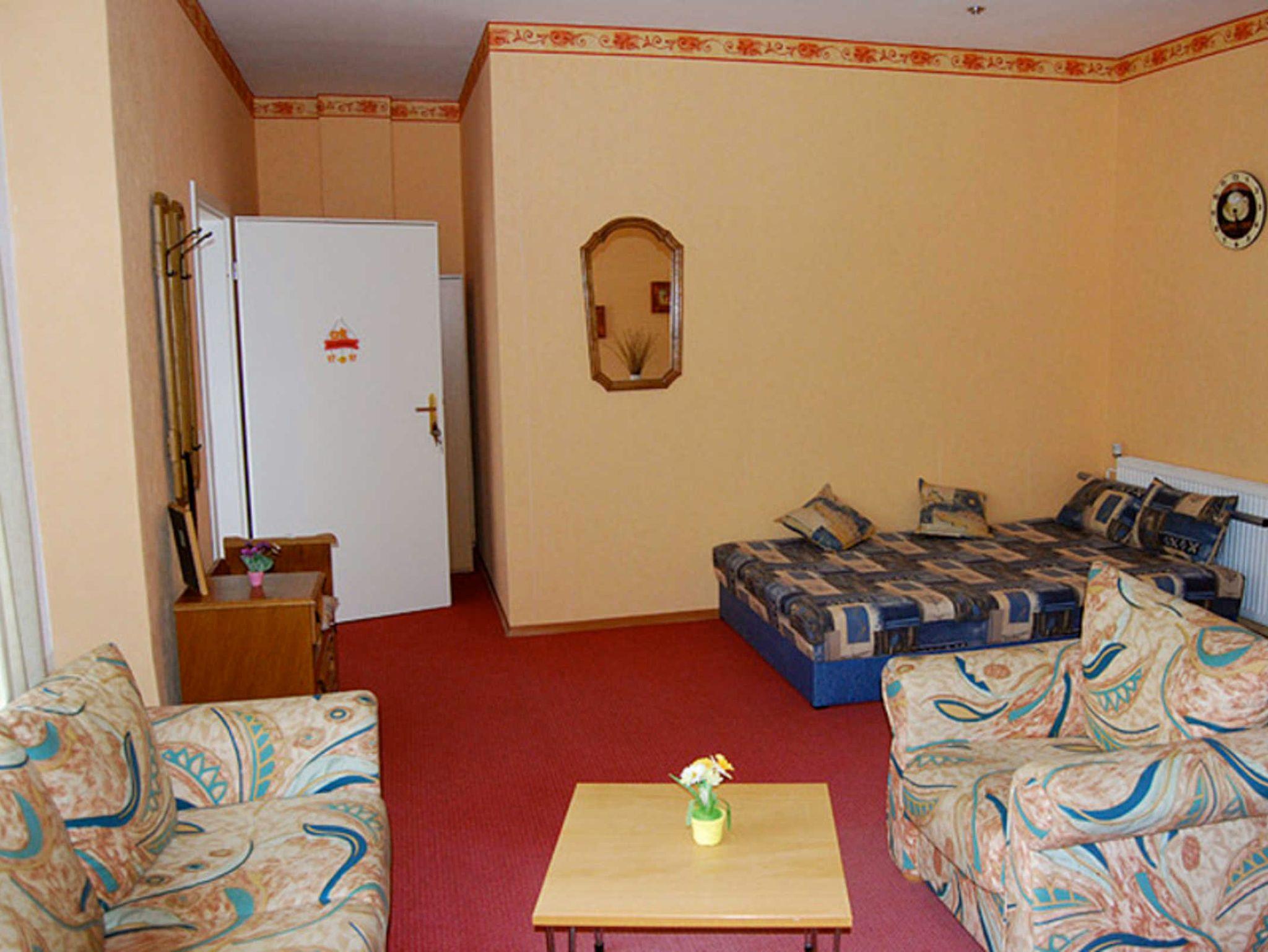 Neben dem im Schlafzimmer befindlichen Doppelbett gibt die Schlafcouch im Wohnzimmer die Möglichkeit einer Aufbettung. So können bis zu 4 Personen im Apartment übernachten.