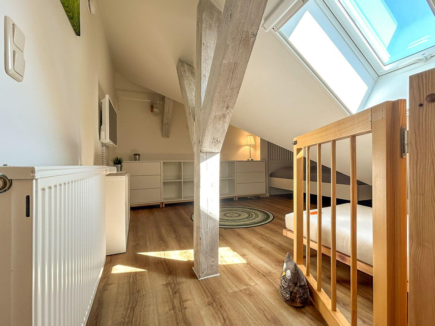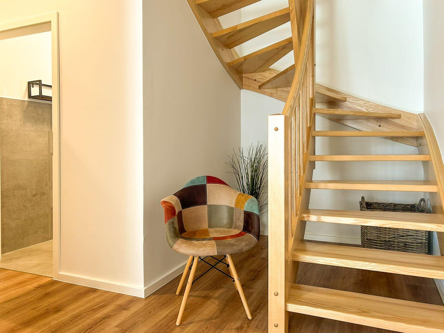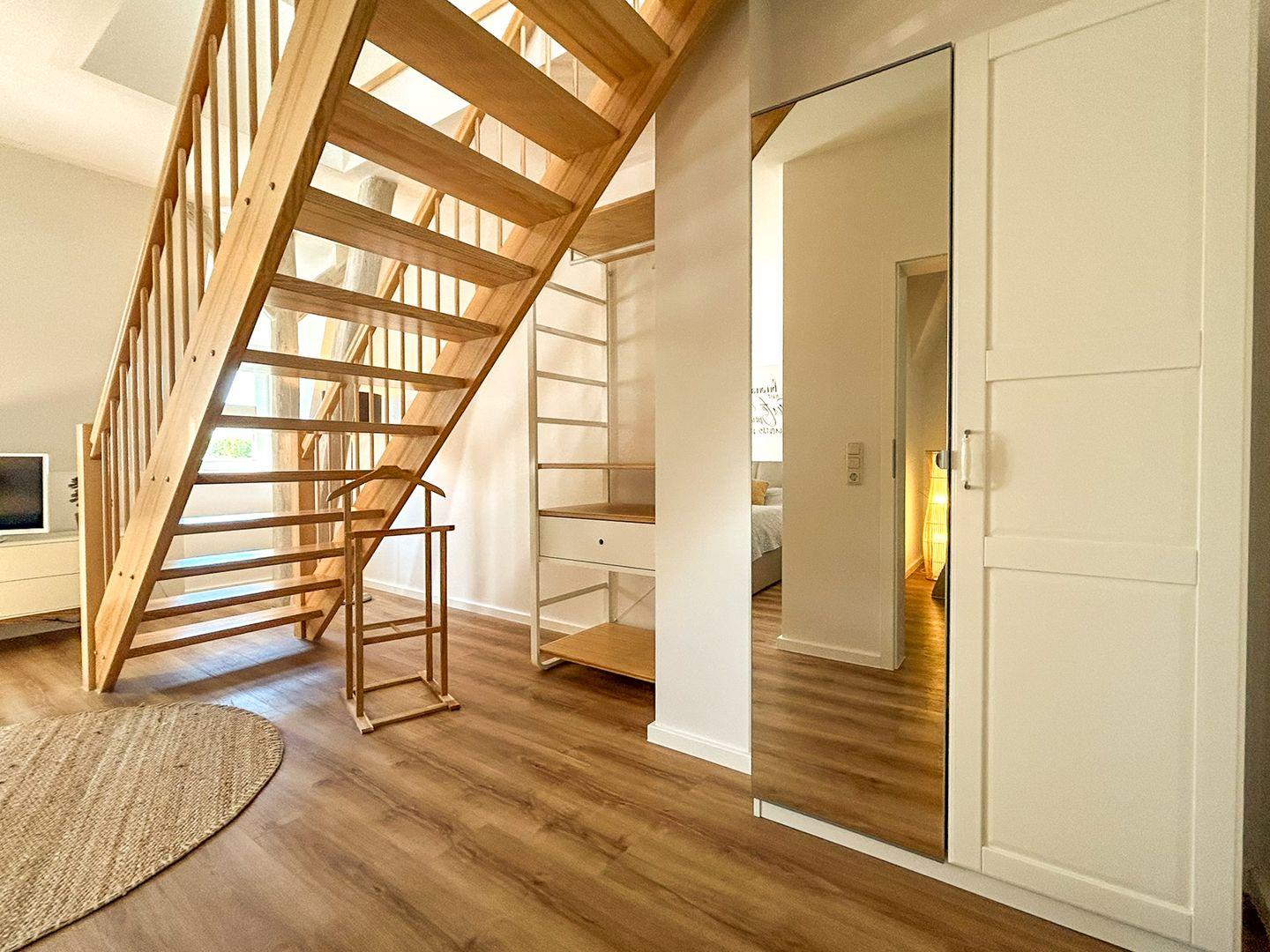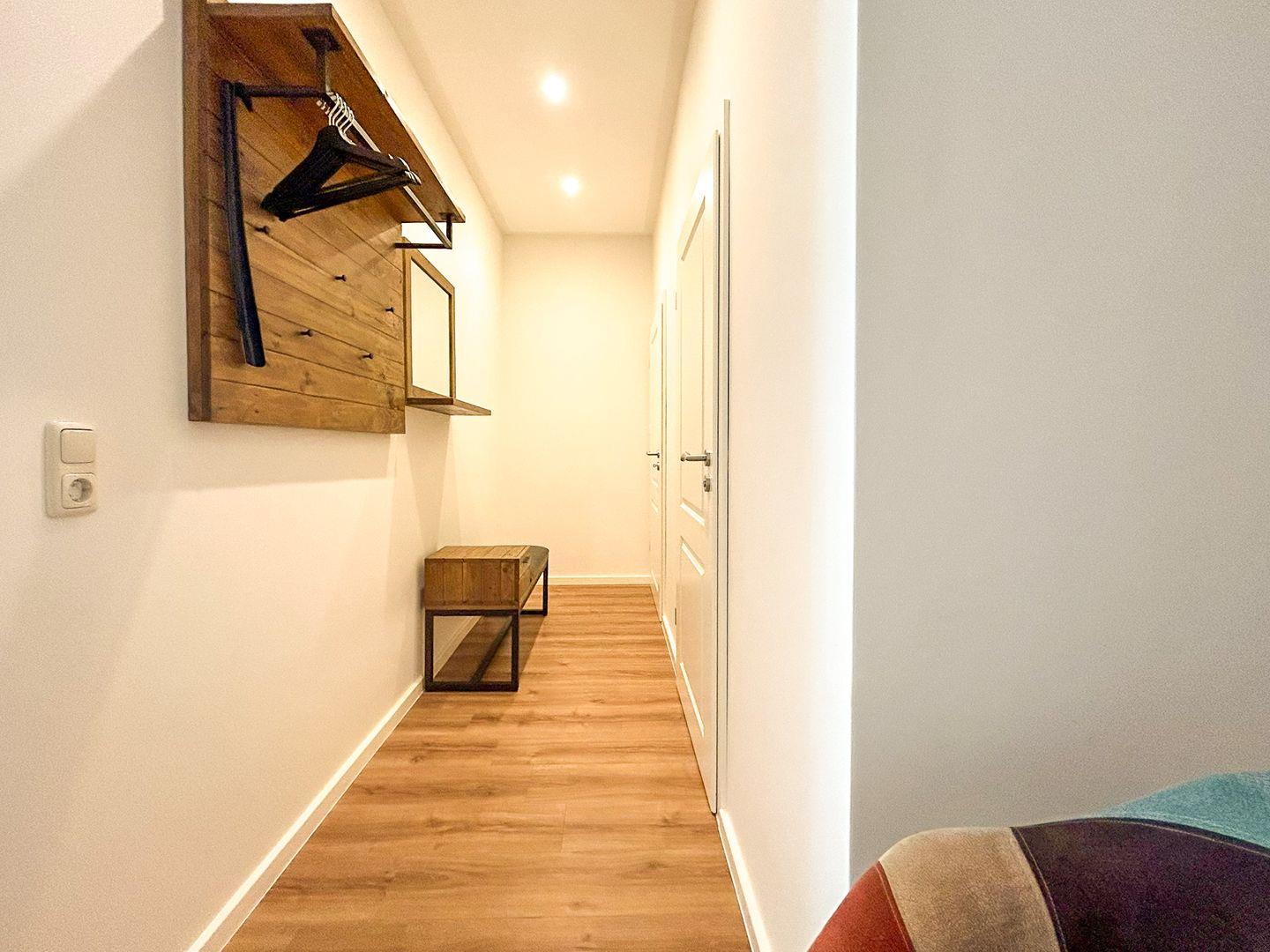 In der Flurnische befindet sich die Garderobe mit Platz zum Ablegen eurer Jacken und Taschen. Die gesamte untere Etage ist mit einer Fußbodenheizung versehen, die in den kalten Monaten eine wohlige Wärme bietet.