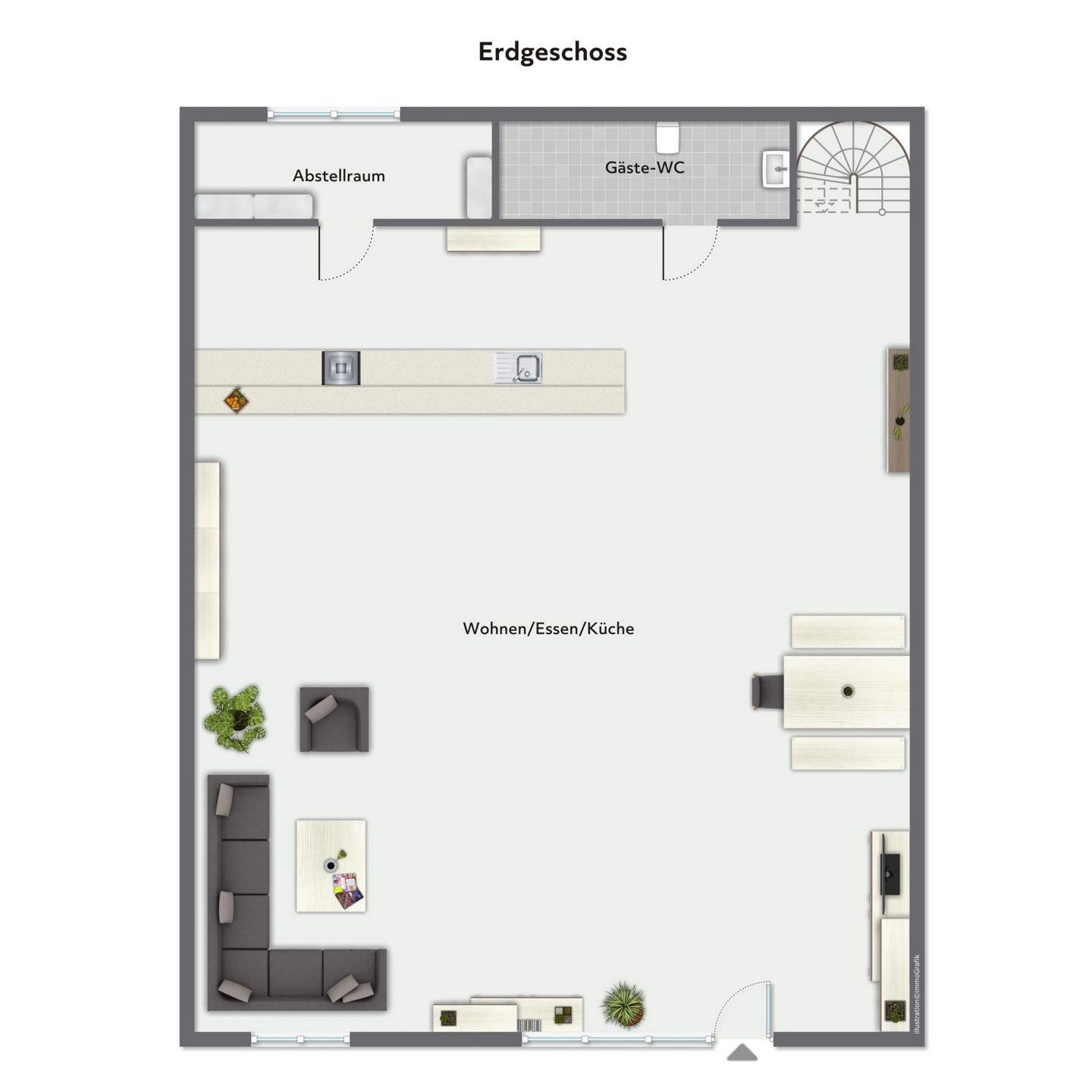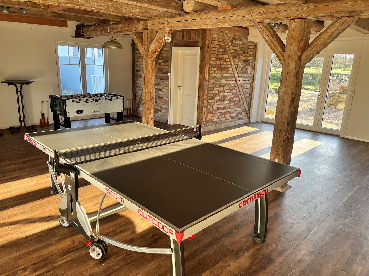 Da die einzelnen Etagen nicht räumlich voneinander getrennt sind, wurden für den Schutz der Kleinen Treppenschutzgitter angebracht. Die Wohnung verfügt über einen Holzkohlegrill. Eine gemeinschaftliche Waschmaschine und ein Wäschetrockner stehen im angrenzenden Wirtschaftsraum zur Verfügung.