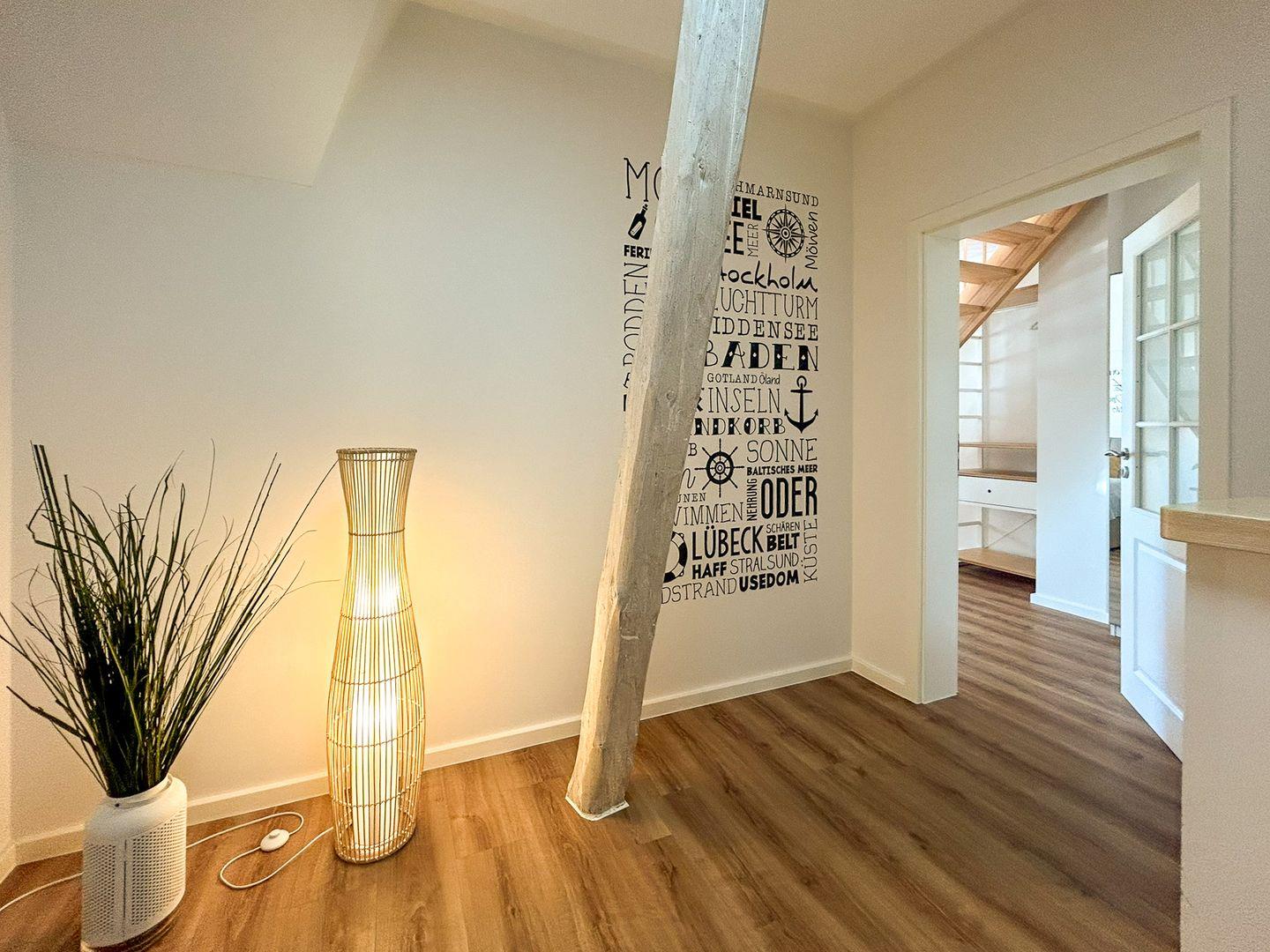 Du bewohnst die Wohnung auf drei Etagen, die im Hauptgebäude eines ehemaligen Bauernhofs integriert ist. Der Hof liegt in ruhiger Lage unweit von Naturstrand, Steilküste und Küstenradweg in Elmenhorst, außerhalb von Boltenhagen (ca. 10min Fahrzeit).