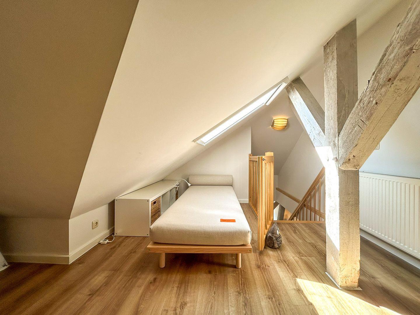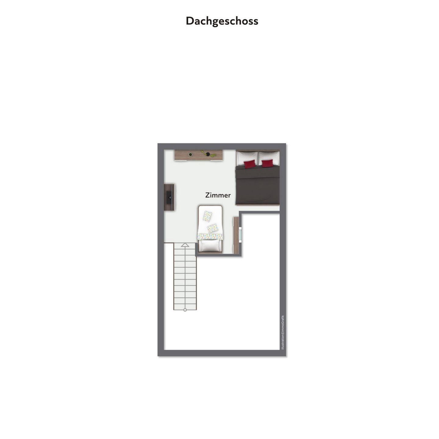Eine weitere offene Stiege führt ins zweite, mit Liebe zum Detail eingerichtete Schlafzimmer. Dieses ist ebenfalls mit einem Doppelbett (160 x 200 cm) unter der Dachschräge eingerichtet. Zudem verfügt das Zimmer über eine weitere einzelne Schlafgelegenheit (80 x 200 cm) und ausreichend Stauraum. Selbstverständlich ist auch hier für etwas Kurzweil ein TV zu finden.