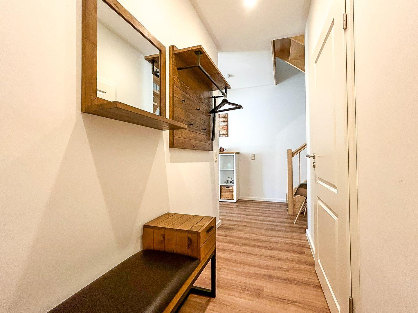 In der Flurnische ist weiterhin die Garderobe mit ausreichend Platz zum Ablegen deiner Jacken und Taschen untergebracht. Die gesamte untere Etage ist mit einer Fußbodenheizung versehen, die in den kalten Monaten eine wohlige Wärme bietet.