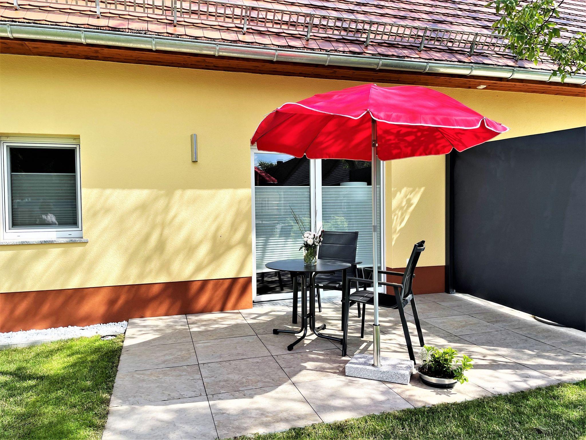 Der möblierte Innenhof sowie der Grillplatz im Garten stehen unseren Gästen zur Verfügung.