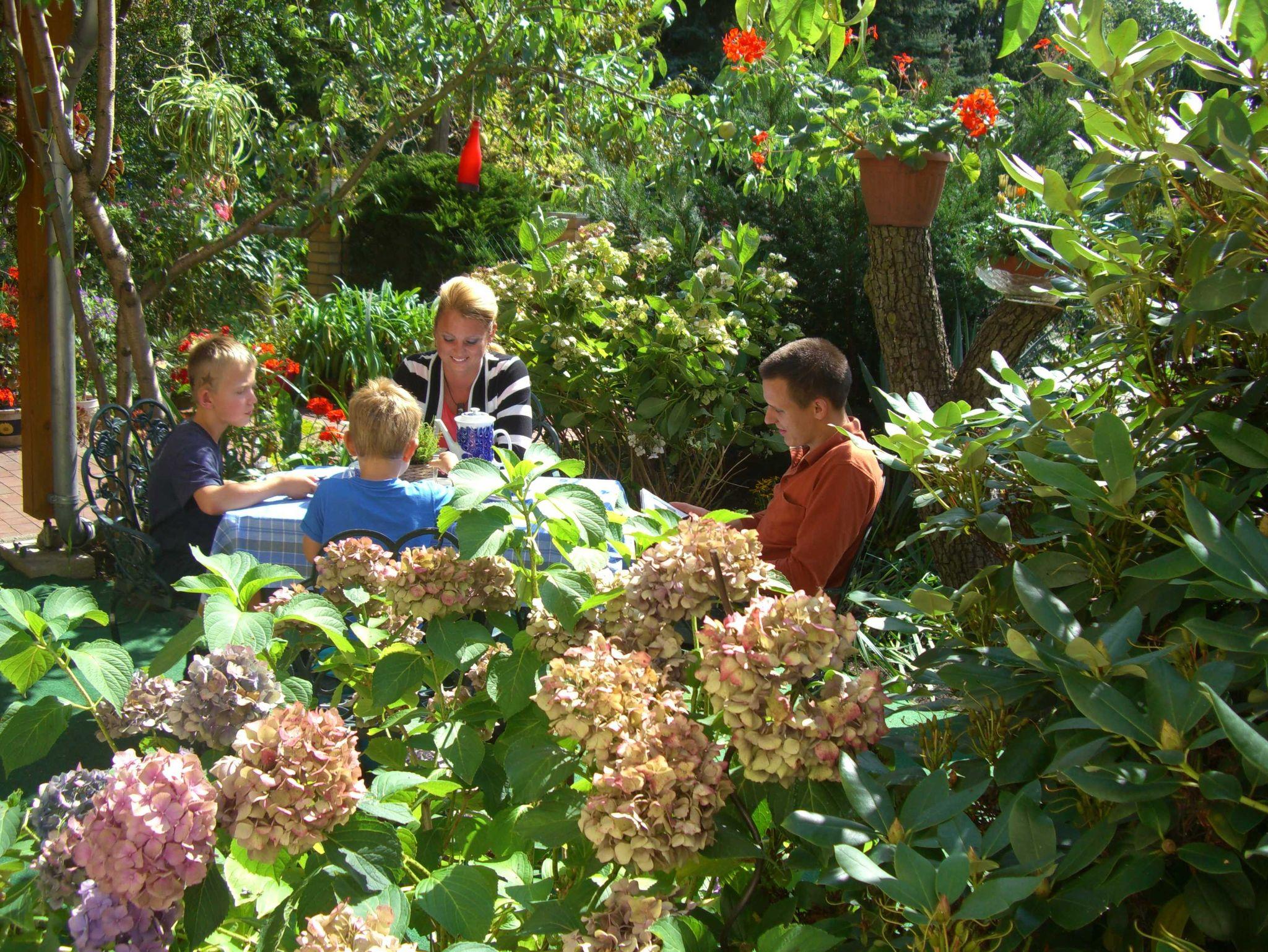 Sitz- und Grillmöglichkeiten sind im Garten vorhanden.