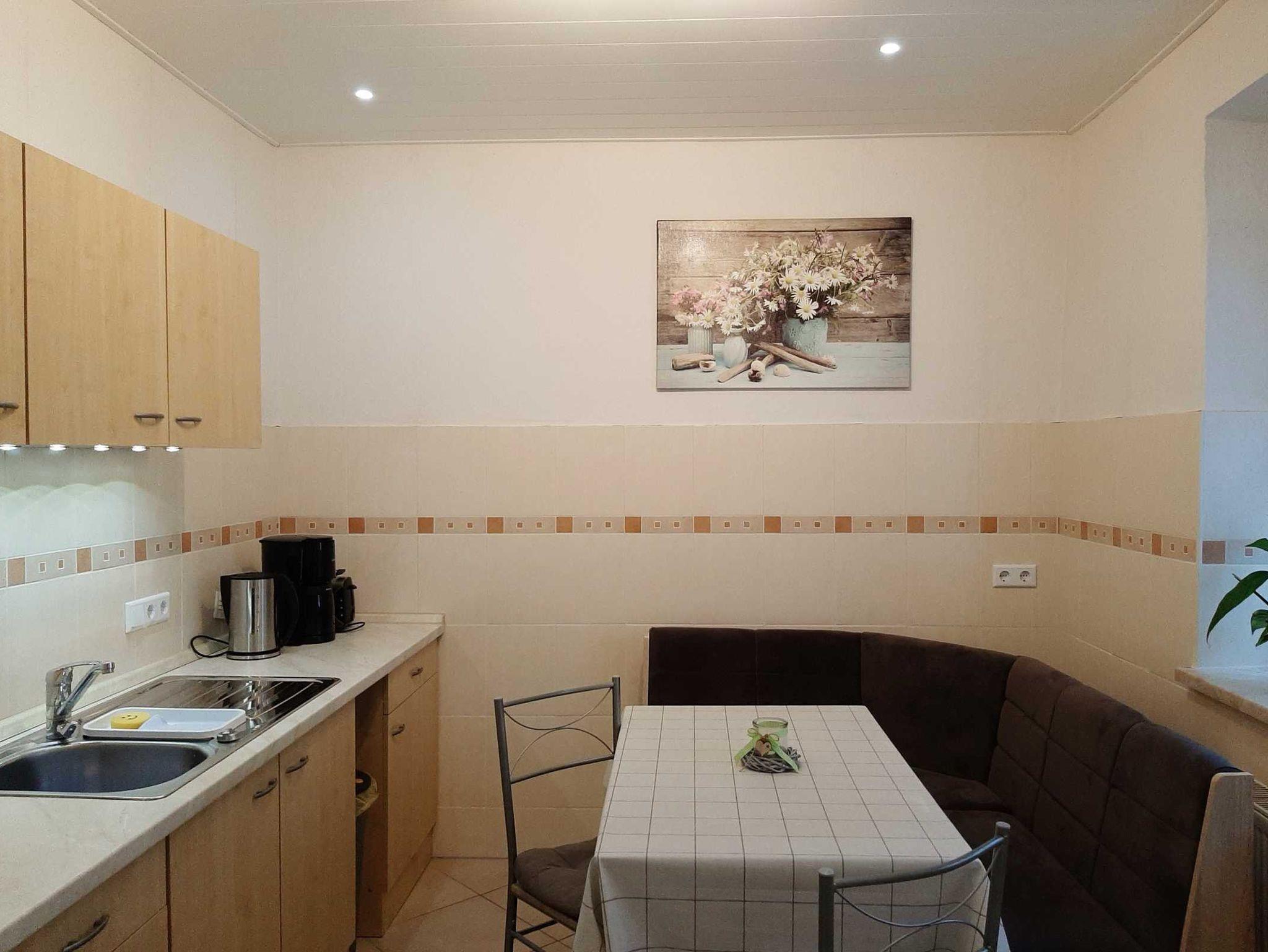 Unsere Küche ist komplett ausgestattet (Kaffeemaschine, Wasserkocher, Toaster, Geschirr, Besteck, usw.) Bettwäsche und Handtücher werden durch uns bereitgestellt.